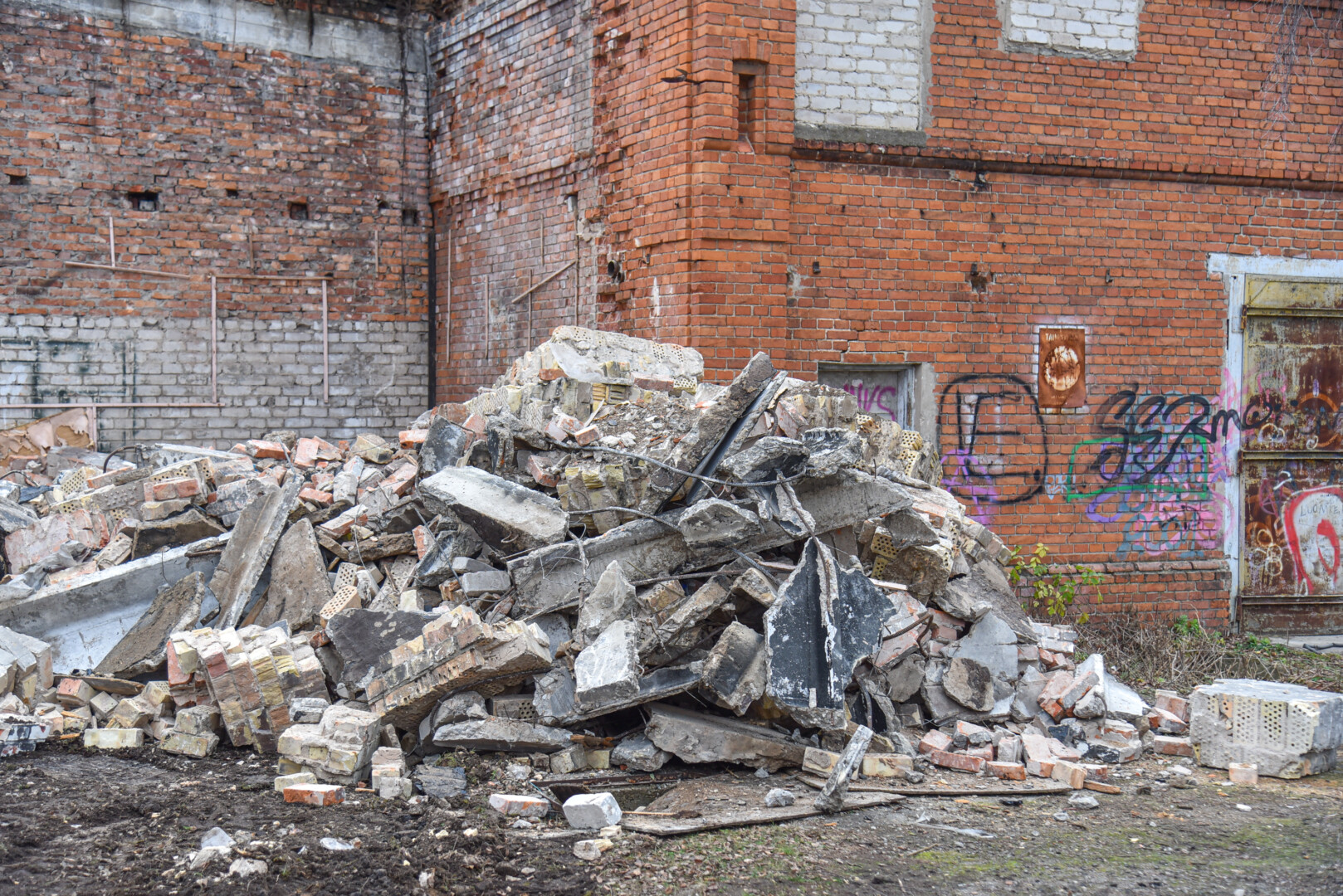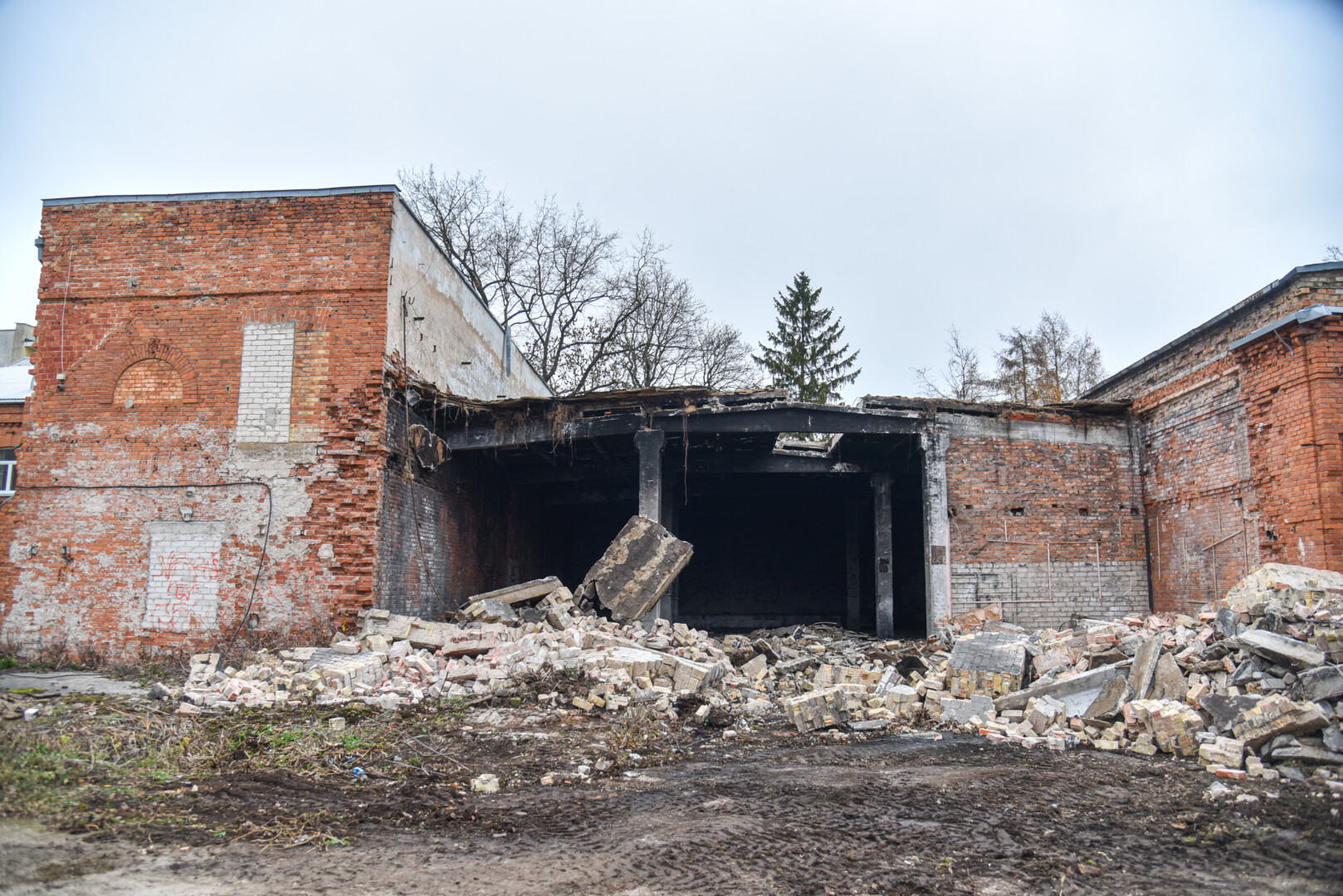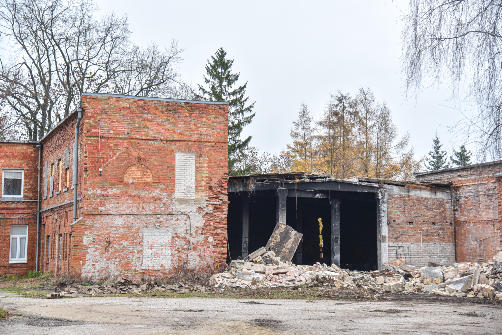 Šiuo metu konservų fabriko kieme jau zuja technika – griaunami beverčiai pastatai ir tvarkoma visa konservų fabriko teritorija.