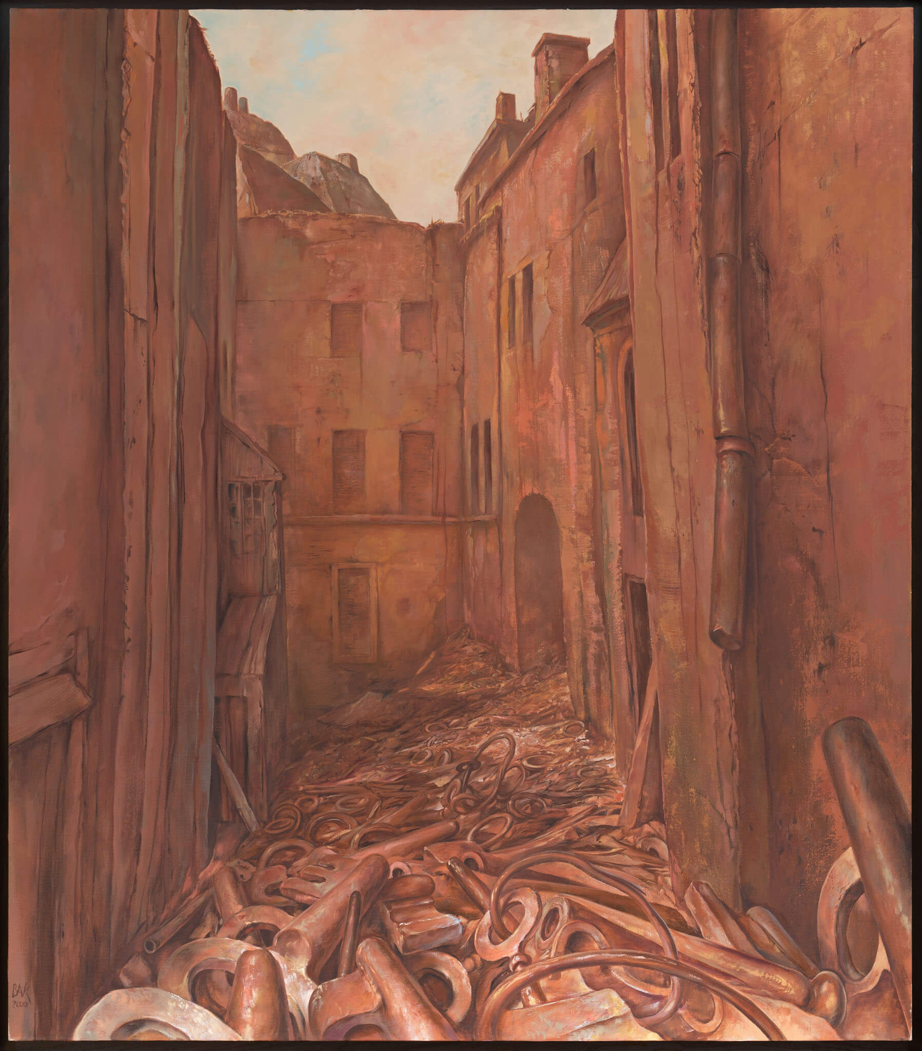 Paveiksle vaizduojami akmenys, kaminai, dūmų stulpai – aiškios metaforos, primenančios tragišką praeitį. Save S. Bakas prisimena vos nuo trejų metų; vaikiškas išdaigas, šeimos kasdienybę, besąlygišką senelių meilę ir kitus saldžius vaikystės prisiminimus vėliau keitė karo grimasos. Pirmąkart į Vilnių po daugiau nei pusšimčio metų grįžęs S. Bakas visiškai nesuprato, ką kalba aplinkiniai, bet miesto gatvės jam ypač priminė senąsias. Ryškią savo atmintį dailininkas vadina laime: ji leido jam aprašyti daugybę žmonių istorijų ir taip išsaugoti jų atminimą.