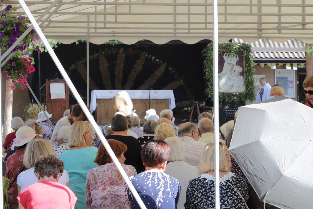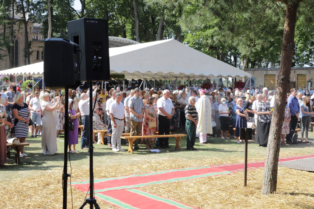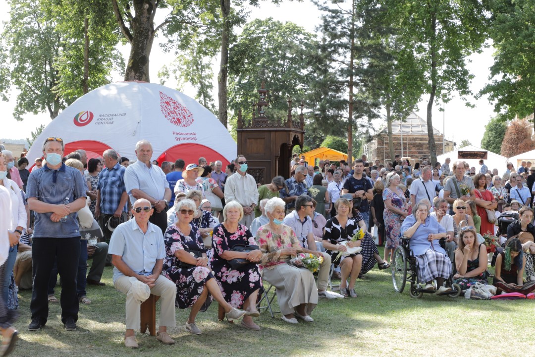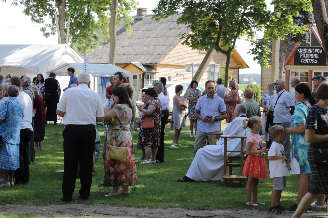 Žolinės šeštadienį į Krekenavą tradiciškai traukė minios žmonių. Nors šiemetiniai atlaidai dėl bazilikos remonto ir koronaviruso pandemijos kitokie – vyksta lauke, tačiau tikinčiųjų negąsdino nei kaitri saulė, nei virusas.
