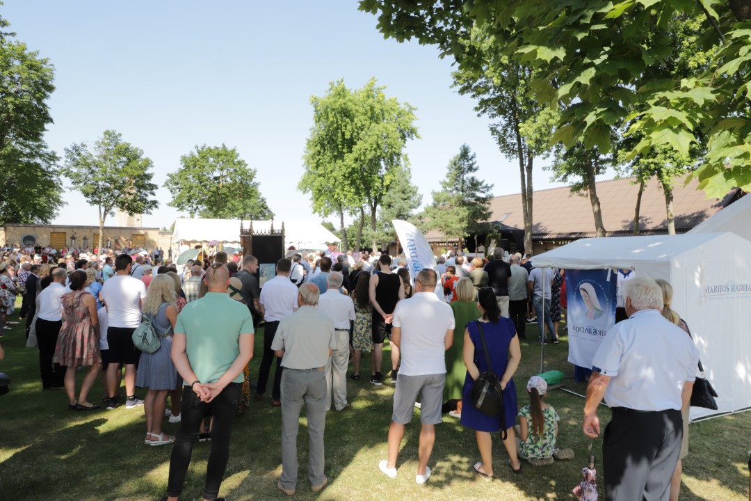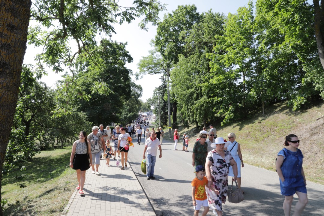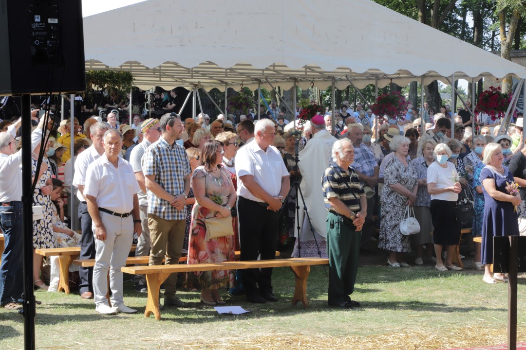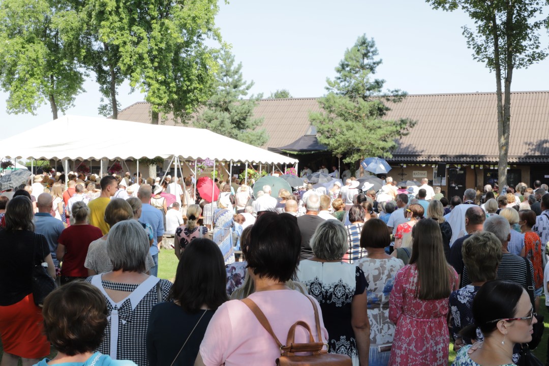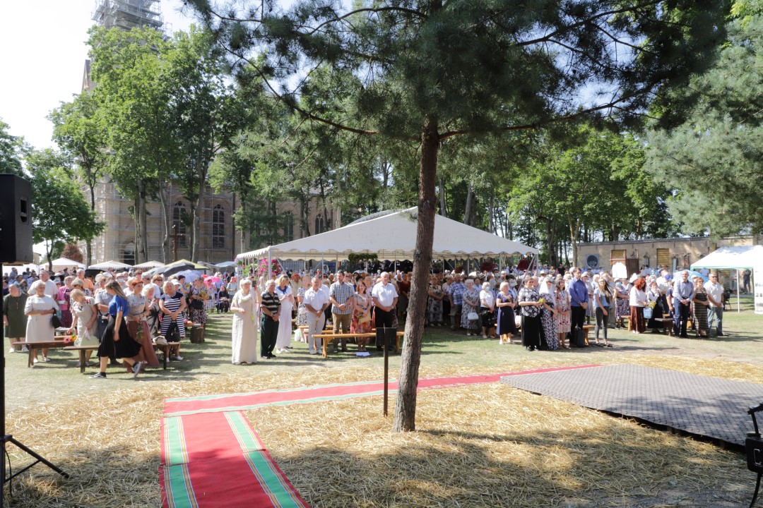 Žolinės šeštadienį į Krekenavą tradiciškai traukė minios žmonių. Nors šiemetiniai atlaidai dėl bazilikos remonto ir koronaviruso pandemijos kitokie – vyksta lauke, tačiau tikinčiųjų negąsdino nei kaitri saulė, nei virusas.