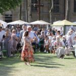 Atidaryta ir kondicionuojama parapijos salė, kad žmonės galėtų kiek atsikvėpti nuo karščio.