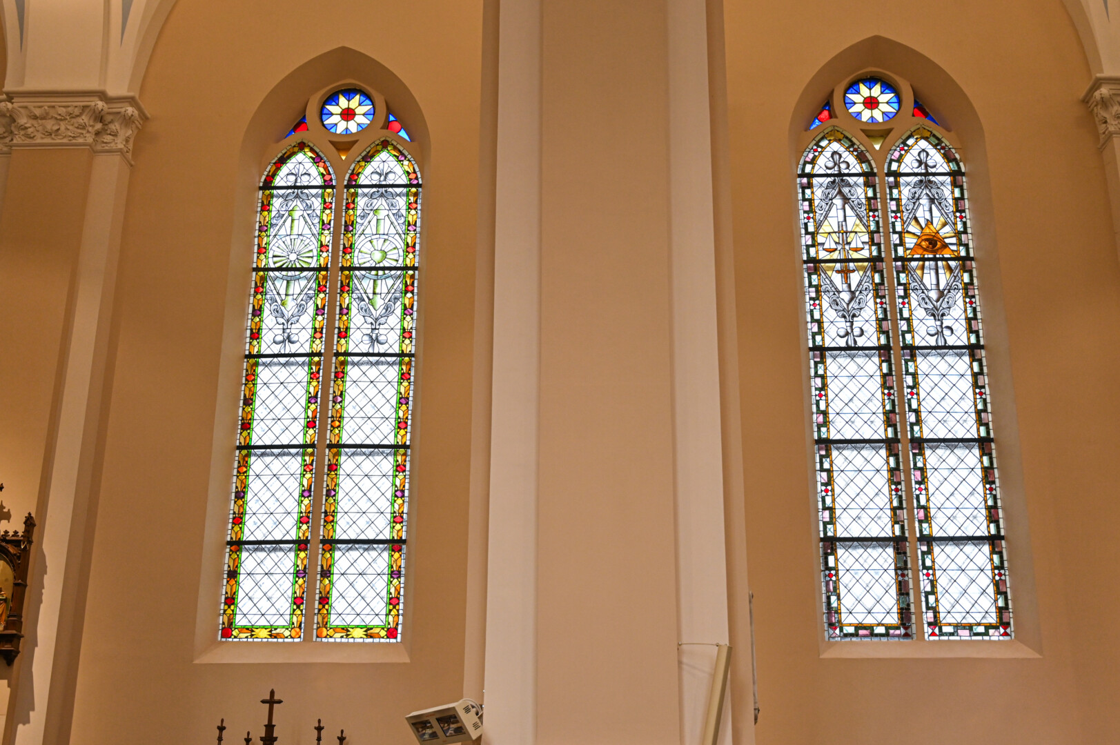 „Po remontų kiek pakeistos ir pačios vitražų spalvos, ir tai, kas juose vaizduojama. Iš spalvotų stikliukų sudėliotas Popiežius Pijus XII viename langų liko. Į vyskupą K. Paltaroką vaizduojantį vitražą įdėjome naują detalę – šio ganytojo parengtą tikybos pradžiamokslį – katekizmą“, – pasakojo K. Jankūnas.