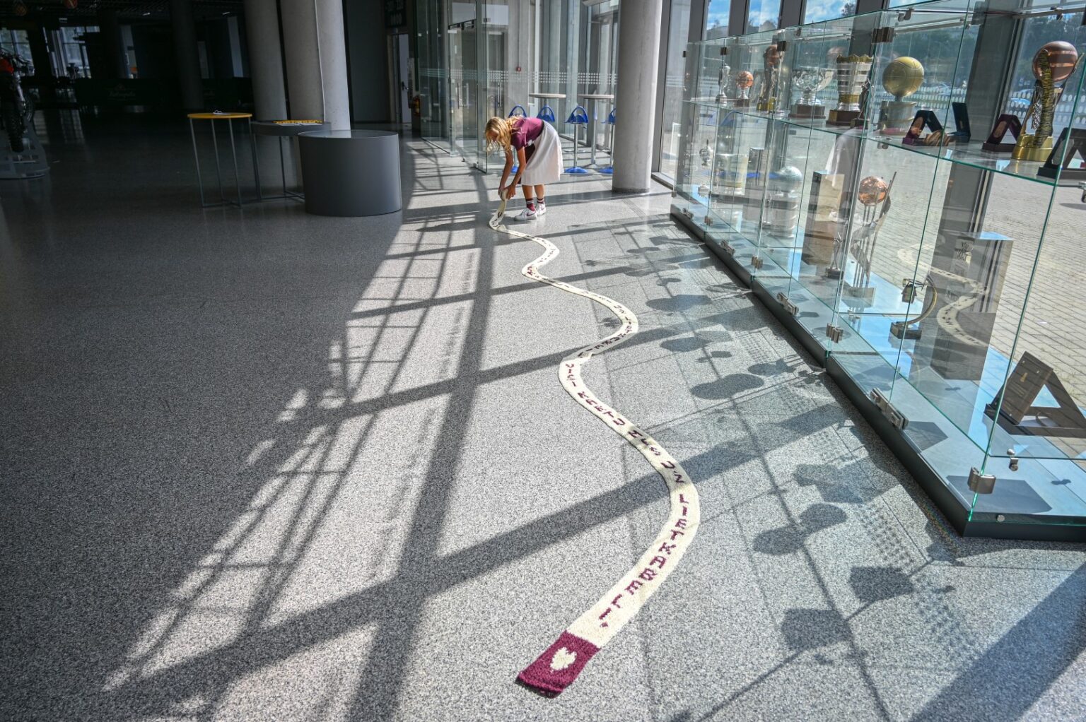 „Buvau linkusi prie tos minties, kad tiesiog apjuosime areną ar jos vidų, bet mūsų vadovas užsispyrė: viskas bus oficialu, ir taškas – sieksime Lietuvos rekordo“, – juokiasi mezgėjų klubo vedlė, pati mezganti nuo vaikystės.