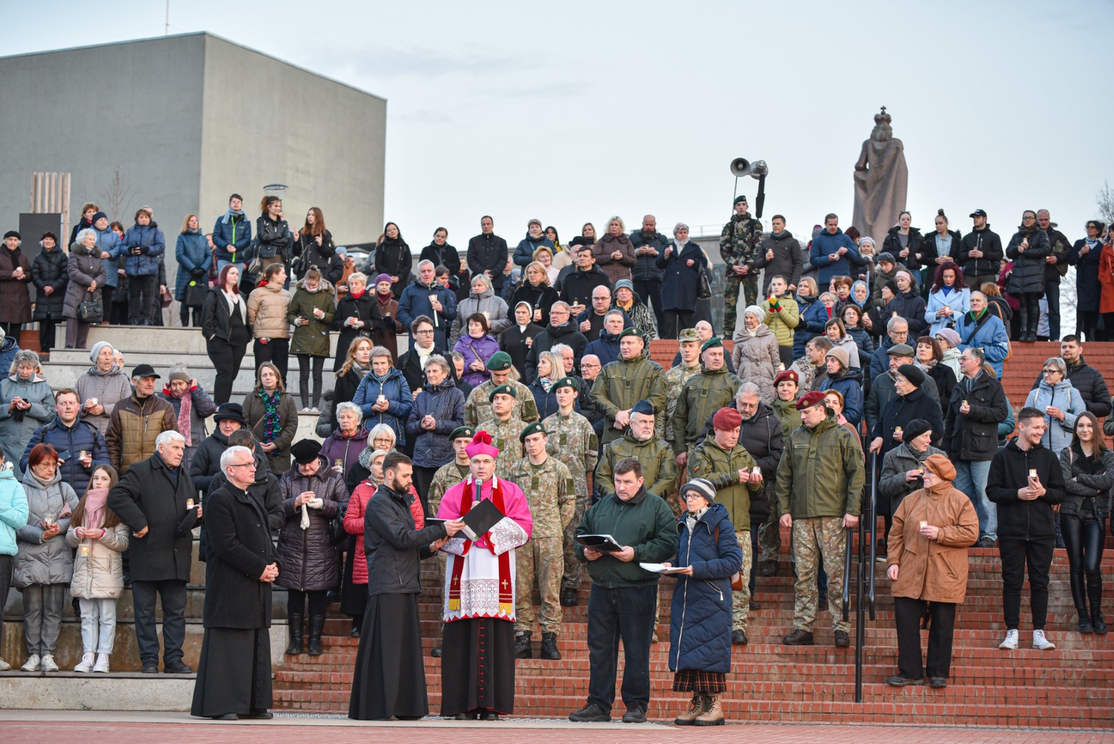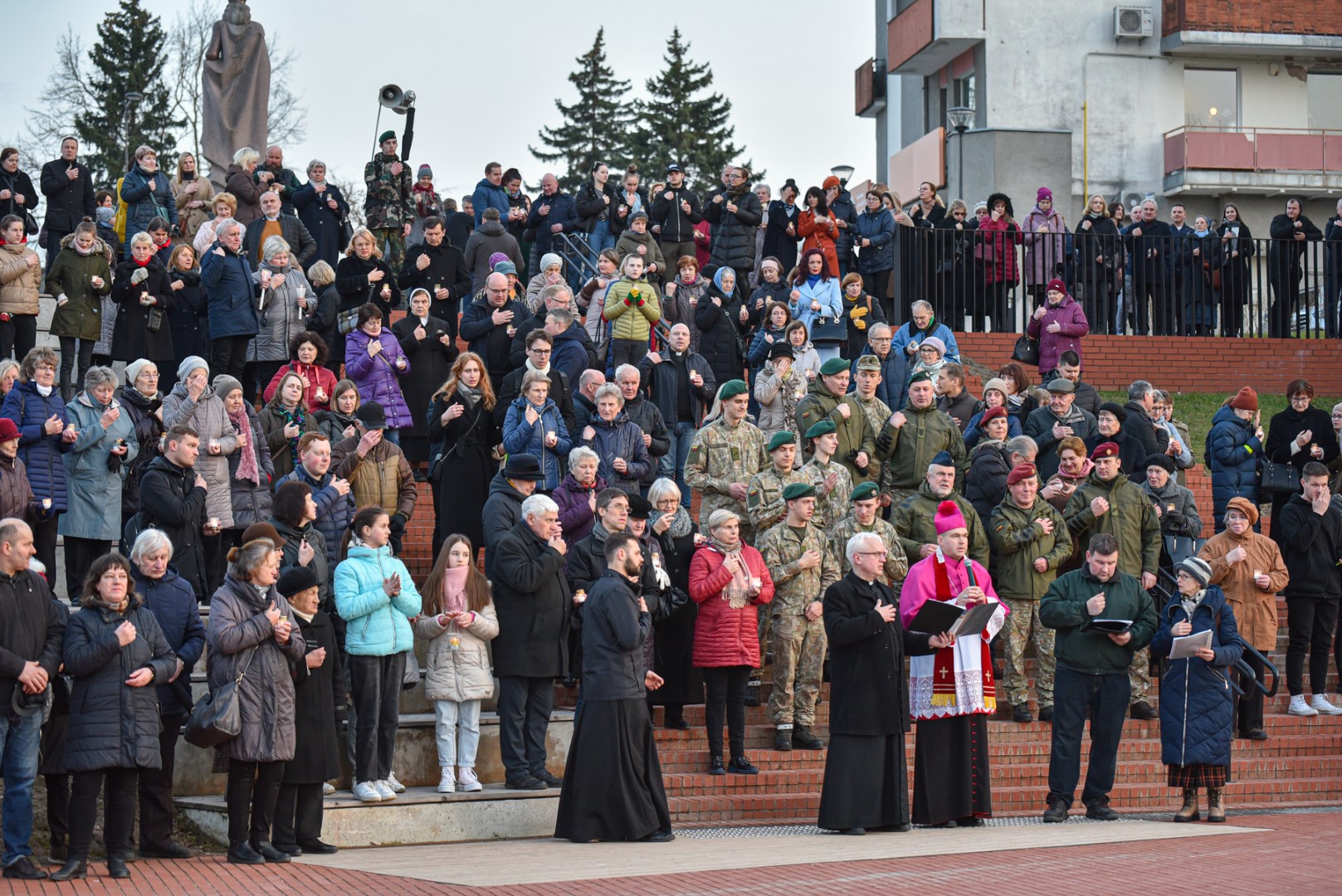 Tikintiesiems sustojus ties Kryžiaus kelio stotimis, apmąstymus skaitė Juozo Miltinio dramos teatro aktorius Albinas Kėleris.