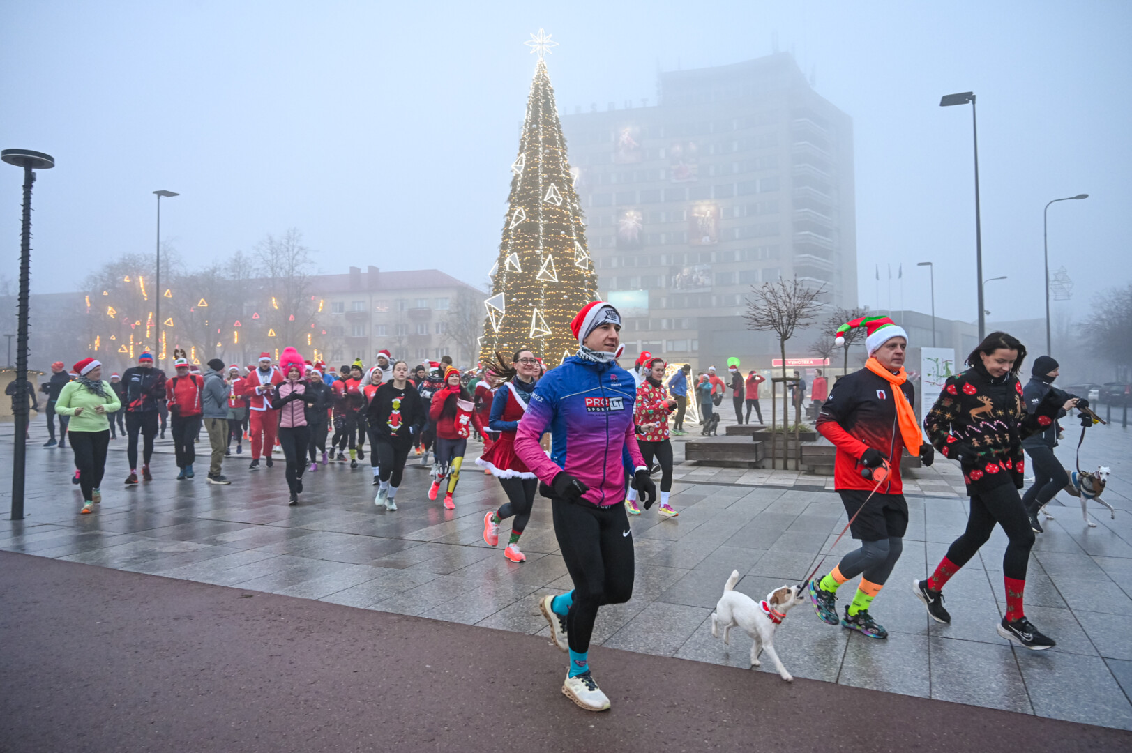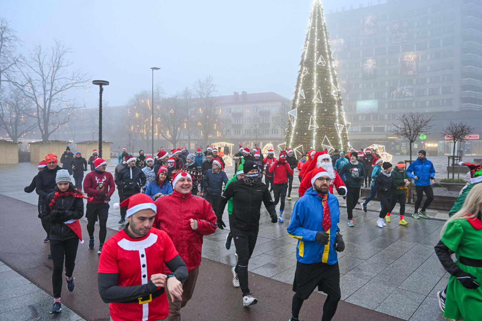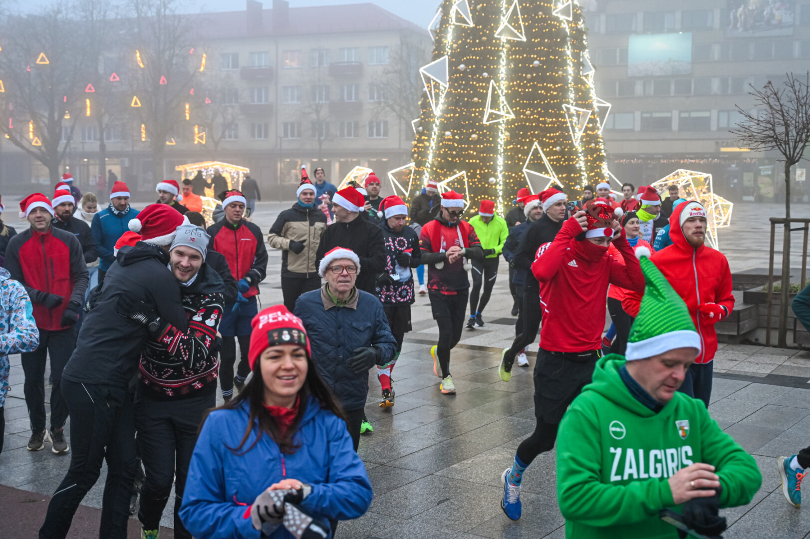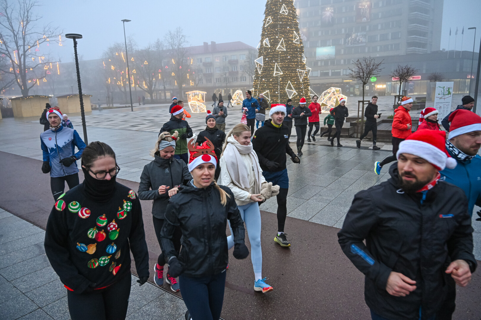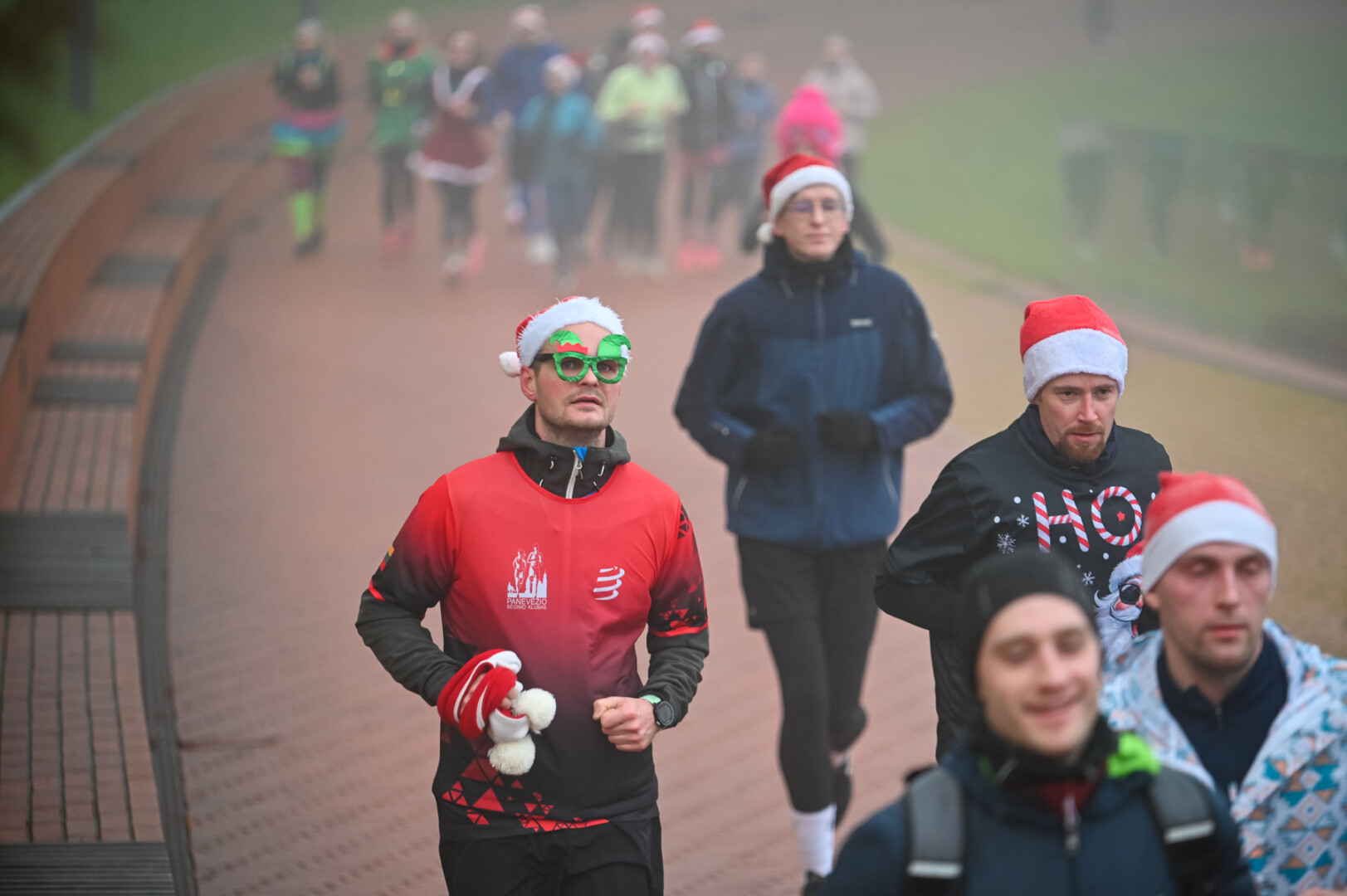 Ankstyvą Kūčių rytą rūke paskendusį Panevėžį pasveikino būrys bėgimo entuziastų.