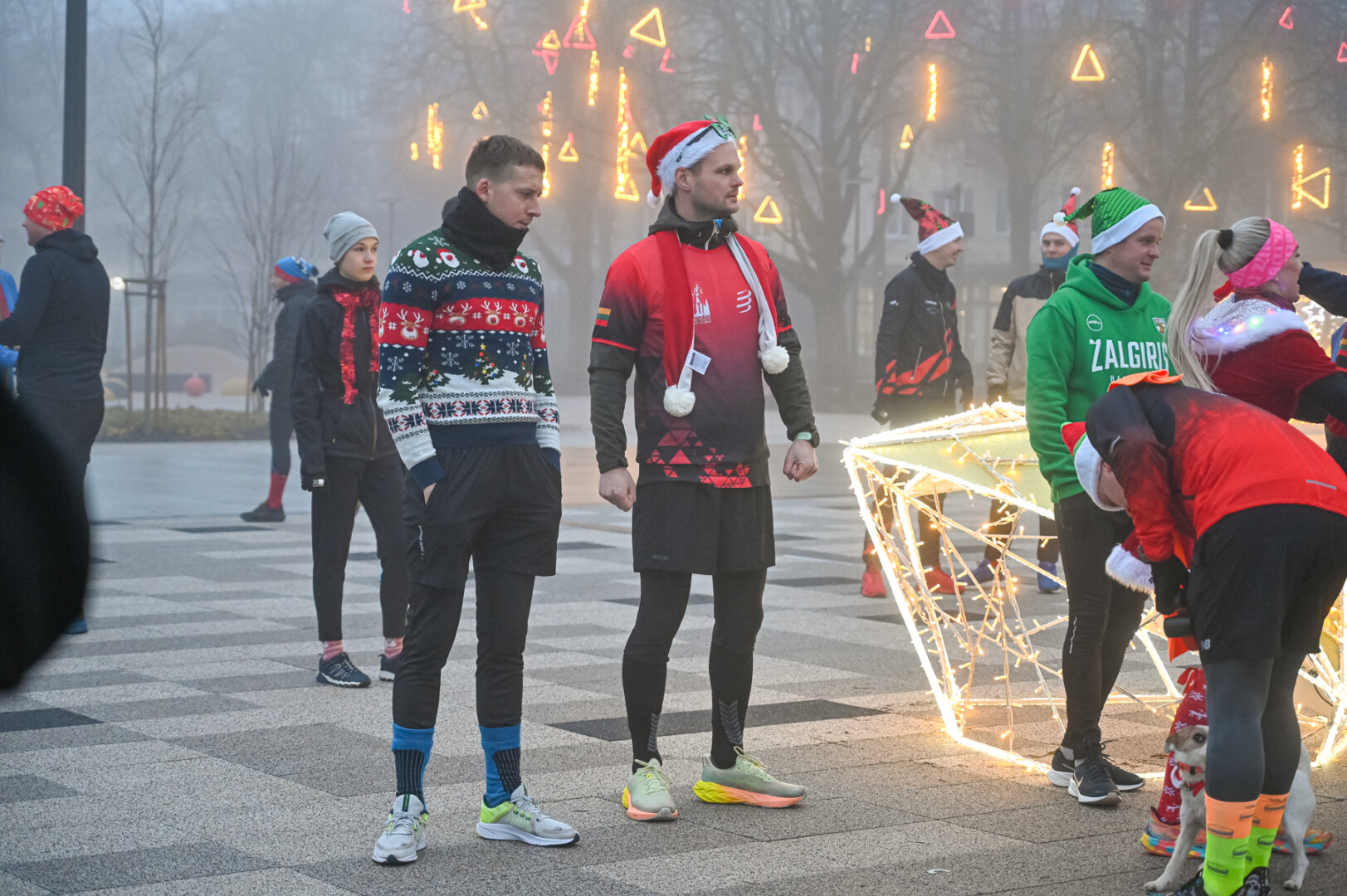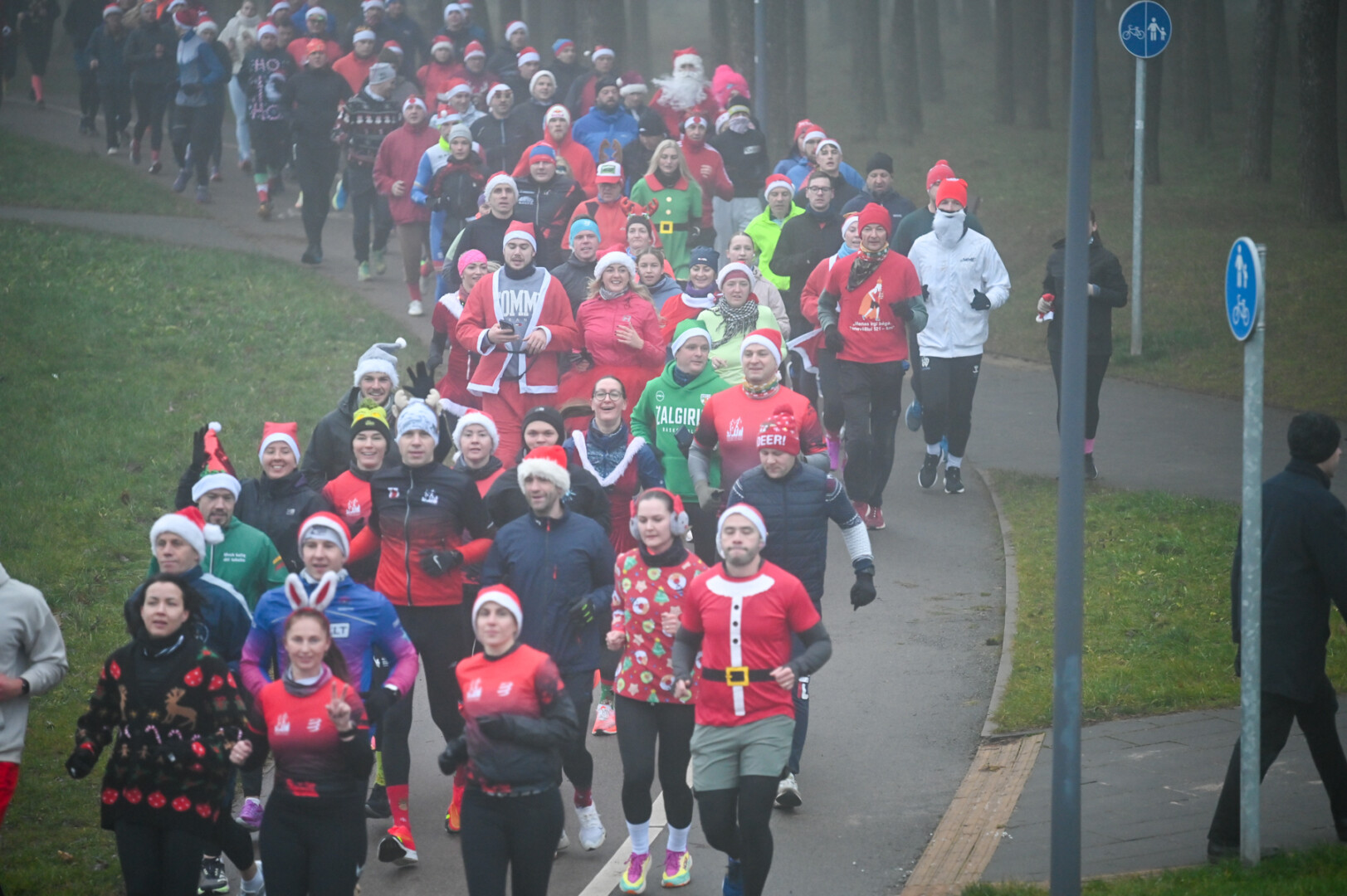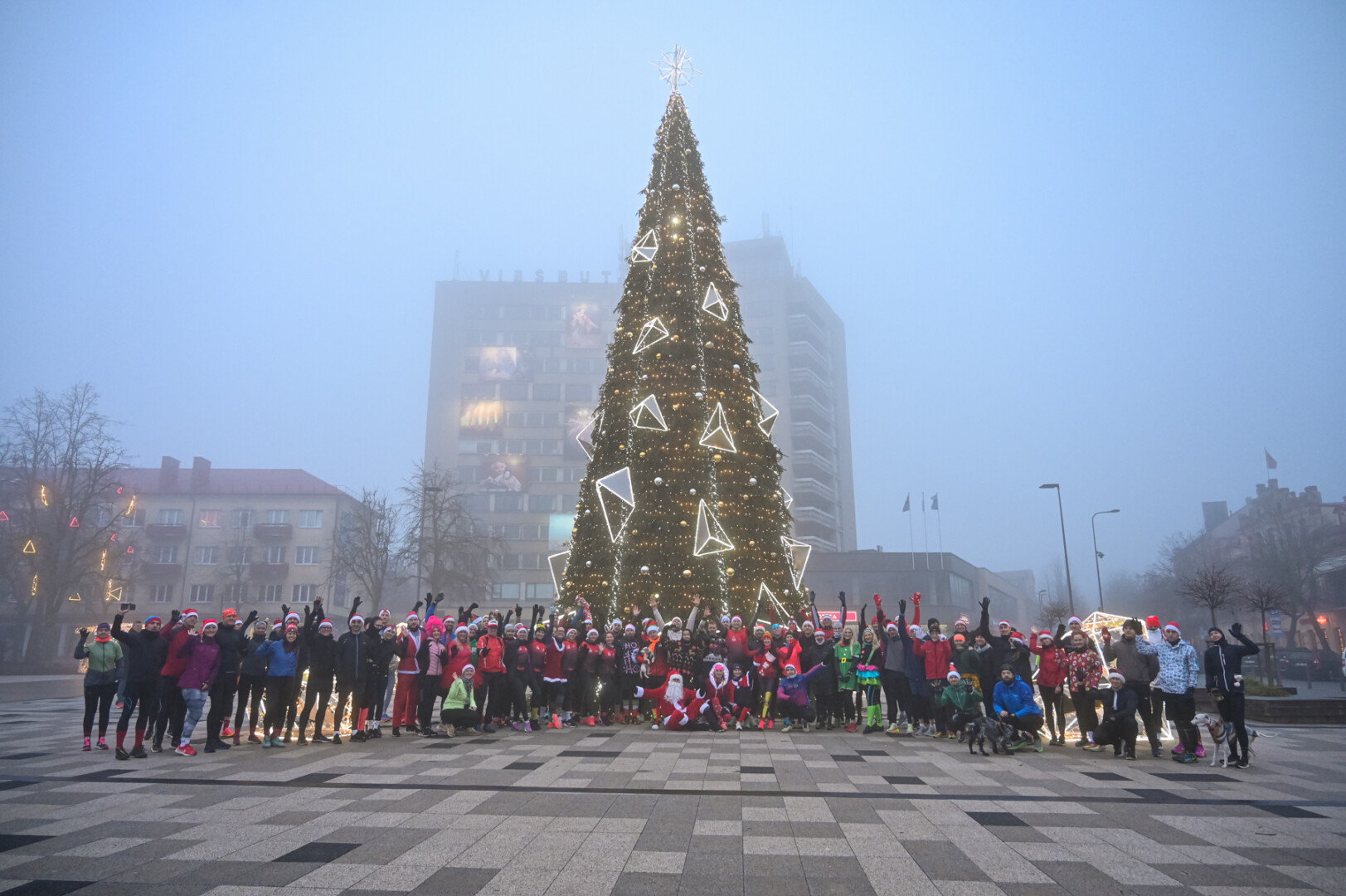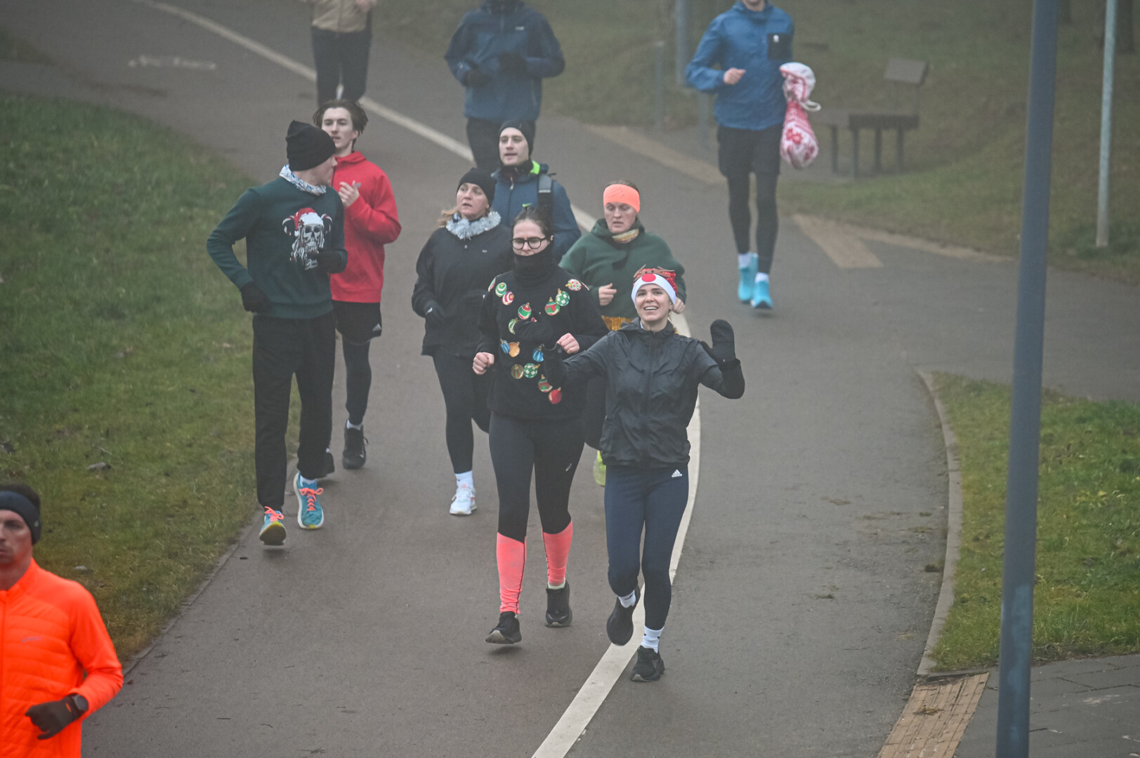 Ankstyvą Kūčių rytą rūke paskendusį Panevėžį pasveikino būrys bėgimo entuziastų.