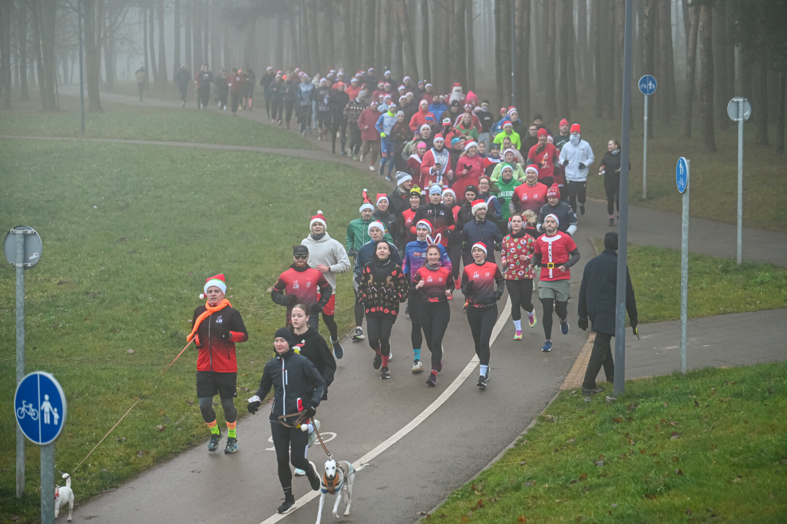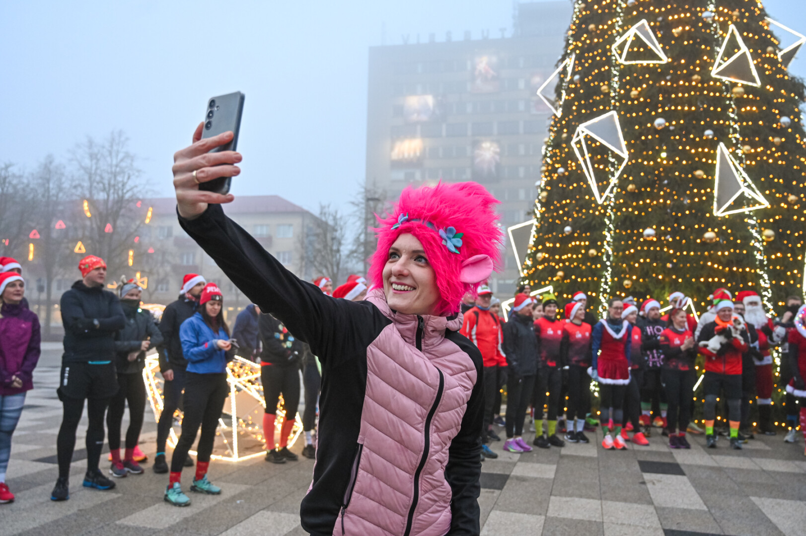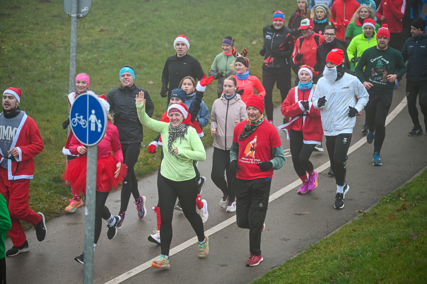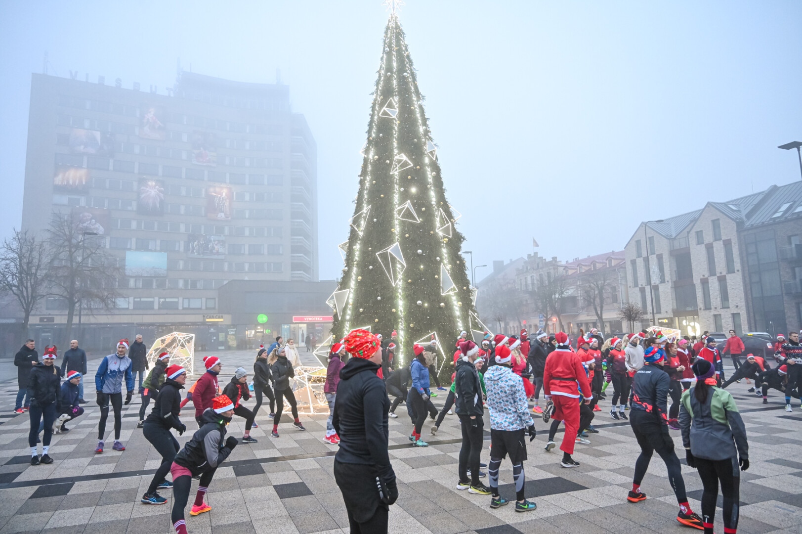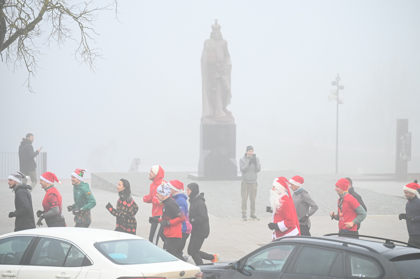 Ankstyvą Kūčių rytą rūke paskendusį Panevėžį pasveikino būrys bėgimo entuziastų.