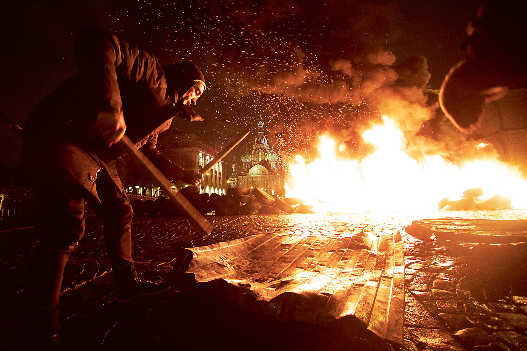 Tikėdamasis išvengti dar vieno „Pussy Riot“ lygio skandalo, Kremlius iš pradžių su P. Pavlenskiu elgėsi atsargiai ir po kiekvienos akcijos jį paleisdavo. Tačiau po „Laisvės“, kuri buvo pilna revoliucinės simbolikos, valdžia nebegalėjo tik kreivai žiūrėti į menininką. Sankt Peterburge P. Pavlenskis su nedidele bendraminčių grupele atėjo ant Mažojo Arklidžių tilto prie Atpirkėjo Krauju cerkvės, kur kadaise revoliucionieriai nužudė carą Aleksandrą II. Čia ėmė deginti padangas, mojuoti Ukrainos vėliavomis ir mušti savadarbius būgnus.
