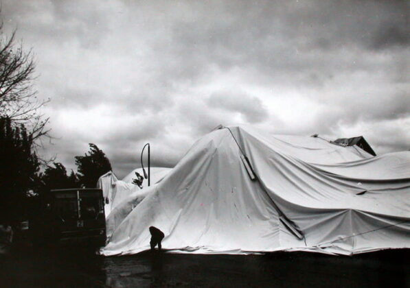 „Tuo metu dirbau fotoateljė prie vadinamojo Kauno gastronomo. Tik išlipęs iš autobuso pamačiau, kad kažkas didelis boluoja. Žmonės kalbėjo, jog dėl stipraus vėjo ir sumažėjusio slėgio manieže jis plyšo pietinėje pusėje, o pakėlęs vėjas kaip kokį maišą užmetė ant važiuojamosios Rotomskio gatvės dalies ir nuosavų namų“, – yra pasakojęs A. Pakarklis.