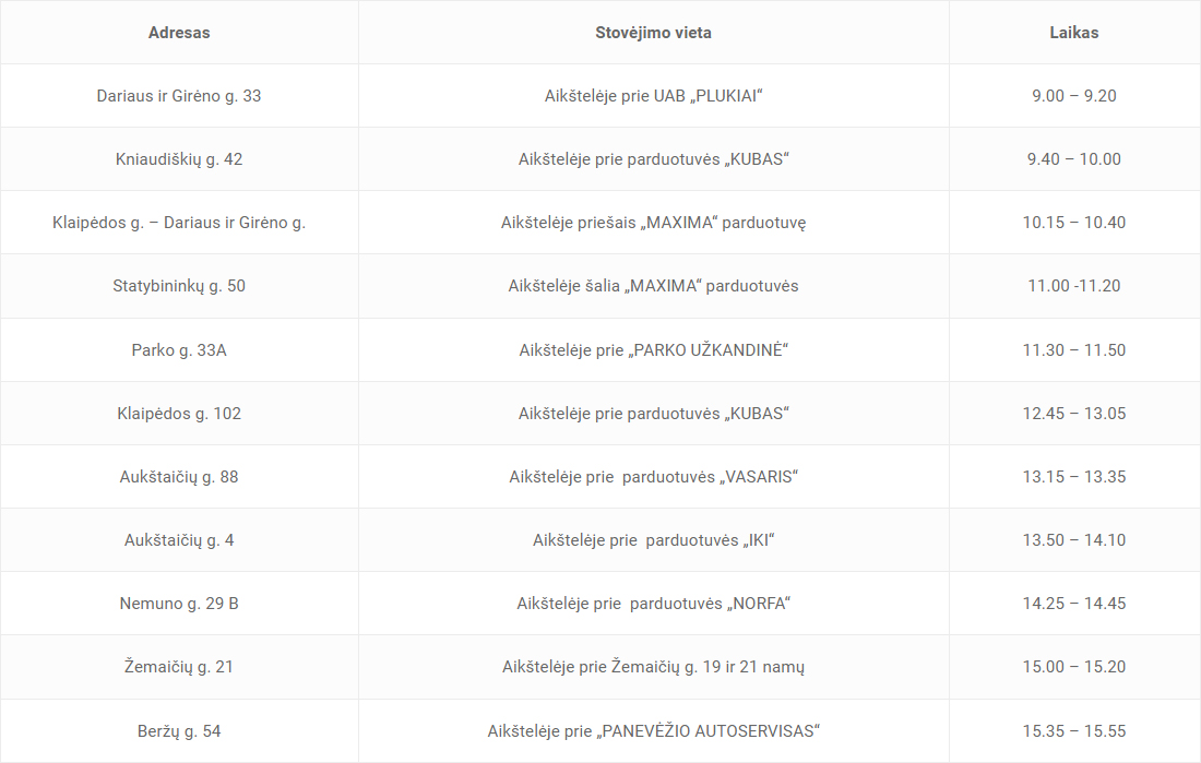 Atliekos priimamos tik iš fizinių asmenų ir tik lentelėje nurodytu laiku surinkimo vietoje perduodant jas UAB „Žalvaris“ vairuotojui. Palikti atliekas surinkimo vietoje griežtai draudžiama.