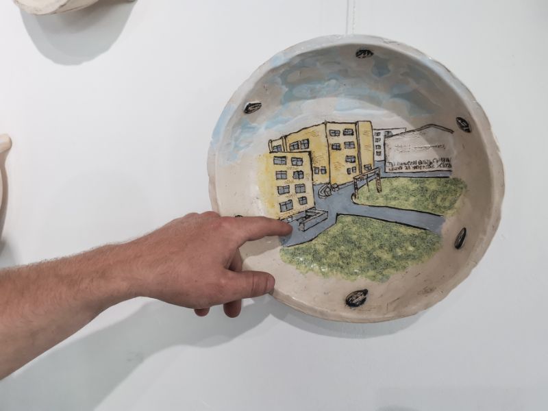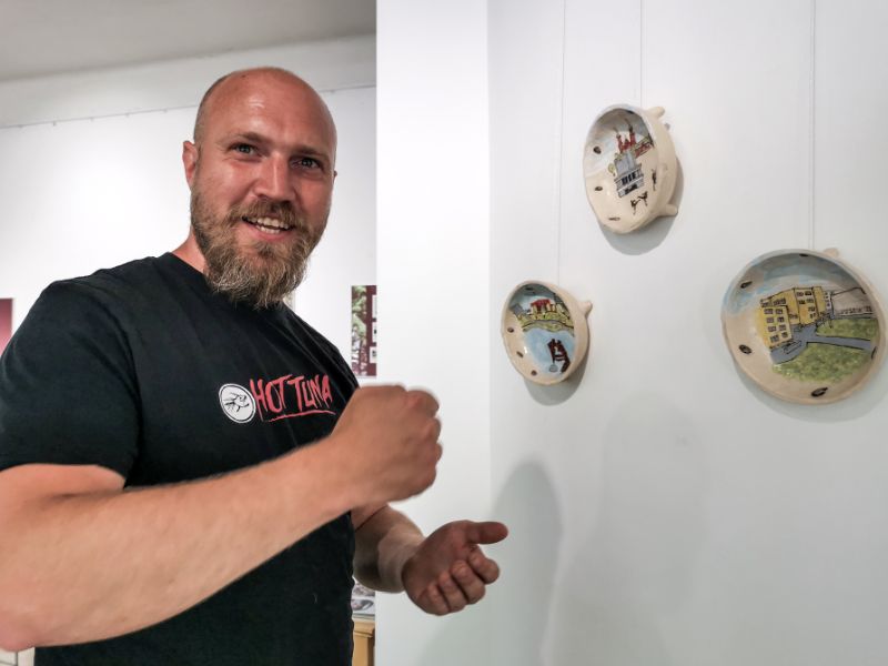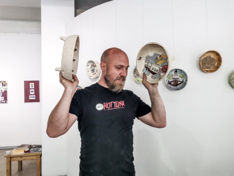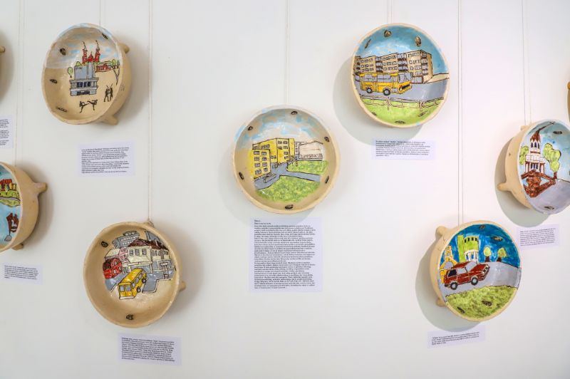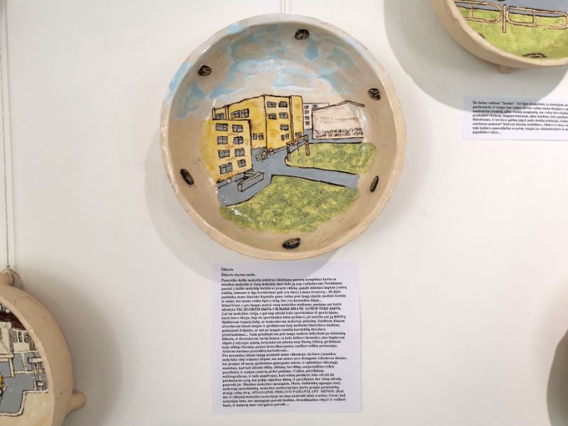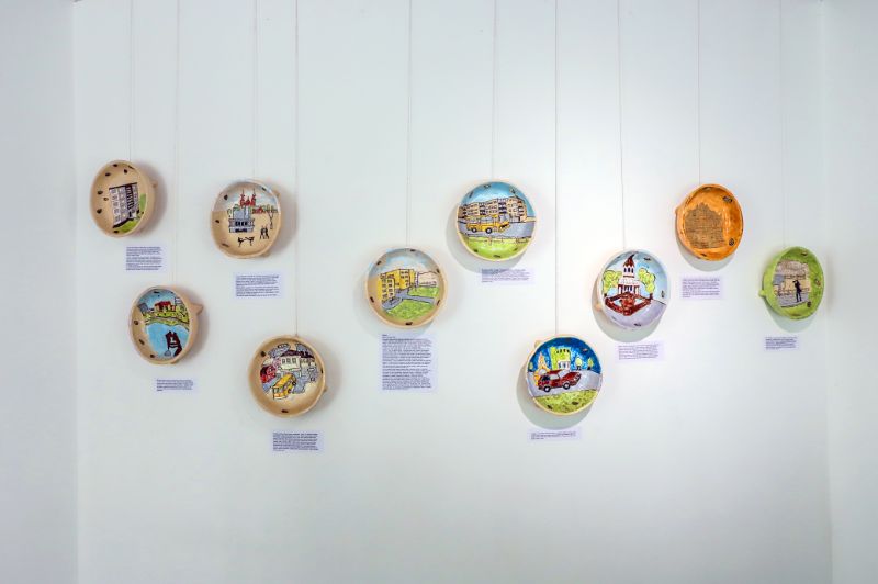 Kad kūrybai turi įtakos įvairios gyvenimo, o ypač vaikystės, patirtys, patvirtina ir Giedrius Mazūras. Savąsias istorijas jis pasakoja piešiniais ant sienos iškabintuose moliniuose dubenėliuose ir gausiais tekstais šalia jų. Juose be vargo atpažinsime savotiškais Panevėžio simboliais tapusias vietas ar įvykius.