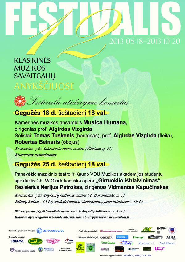 Dalyvauja: kamerinės muzikos ansamblis “Musica humana”. Dirigentas prof. Algirdas Vizgirda.