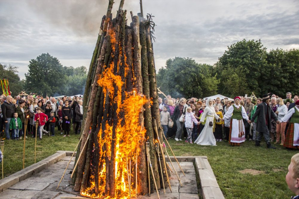 Pievoje bus mėtomi vainikėliai, vyks saulutės sodinimo, žynio ir ugnies ceremonijos. Nuo 20.30 val. scenoje pasirodys balsingieji Violeta Riaubiškytė ir Vilius Tarasovas. Kaip visąlaik bus plukdomi vainikėliai. Ištvermingiausieji nuo 22 val. kojas miklins naktišokiuose su DJ Jovani.