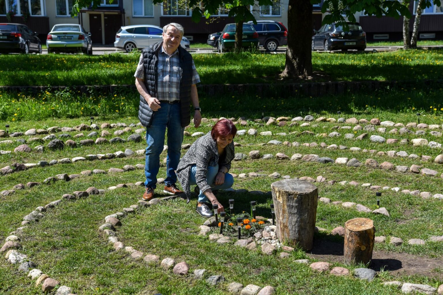 Panevėžyje, kieme tarp daugiabučių, ribojamų Beržų ir J. Basanavičiaus gatvių, ekonomistė Birutė Mejerova prieš metus įrengė, anot jos, energetinį labirintą.