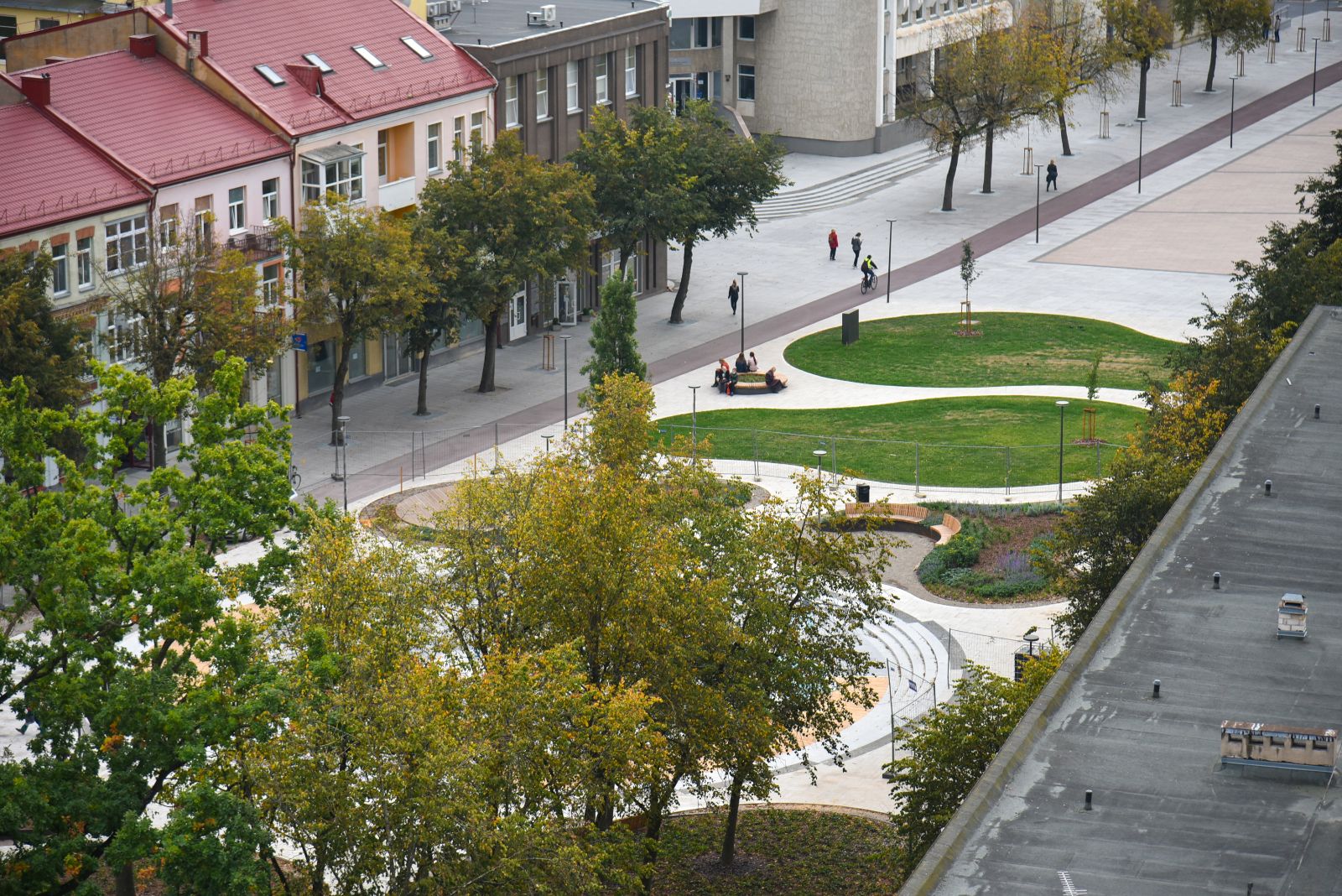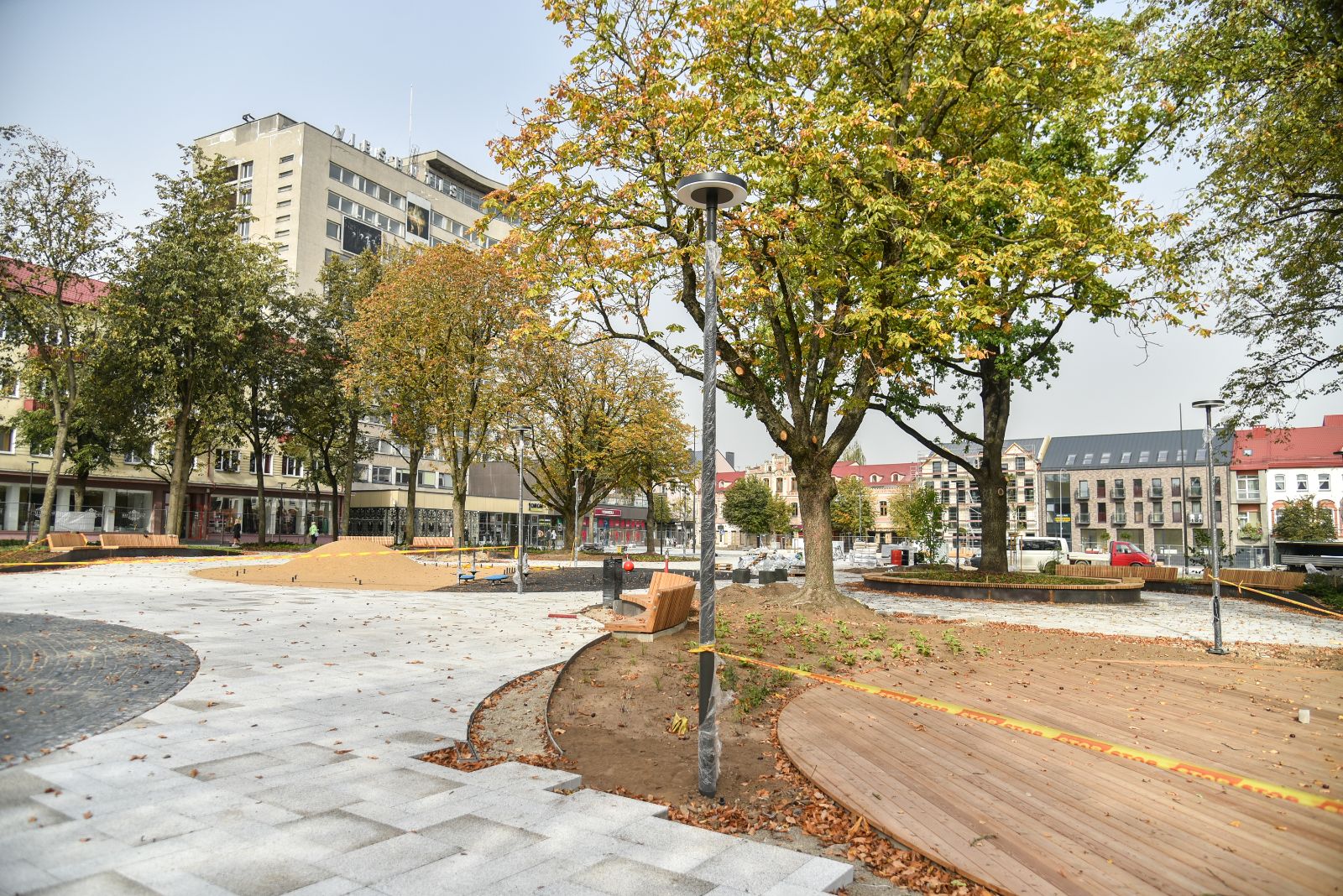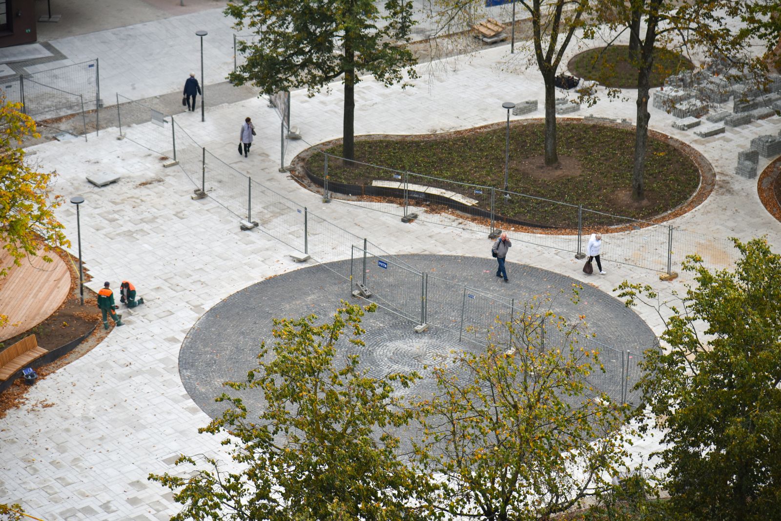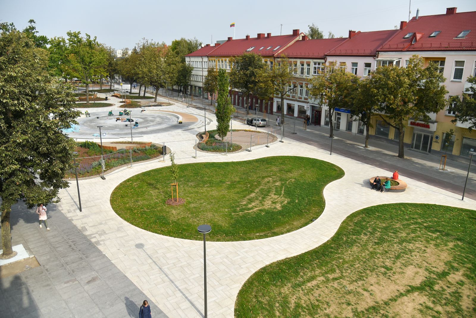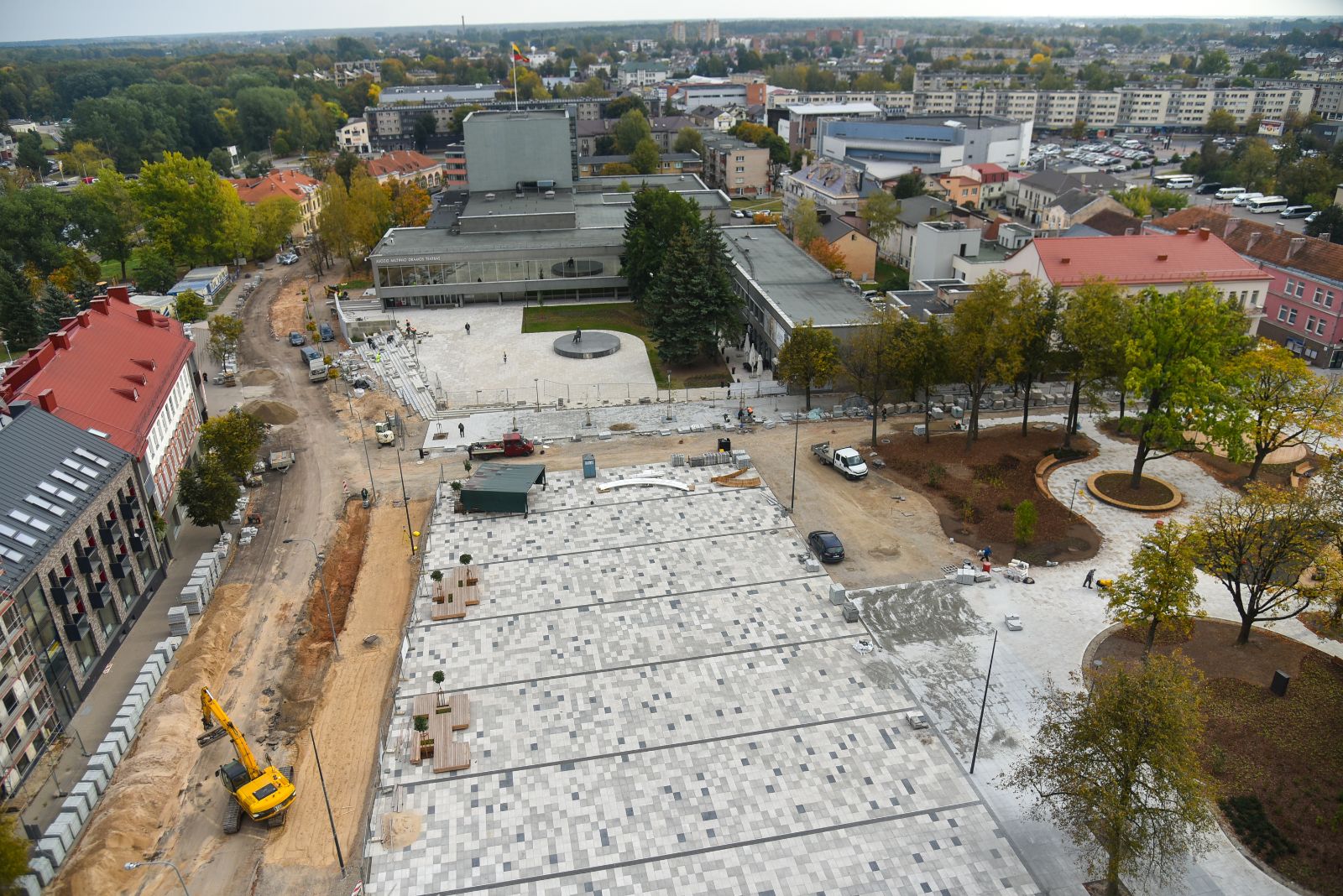 Panevėžio centras vis dar aptvertas statybininkų tvoromis, tačiau jau ryškėja vaizdas, kokia po rekonstrukcijos atsivers Laisvės aikštė.