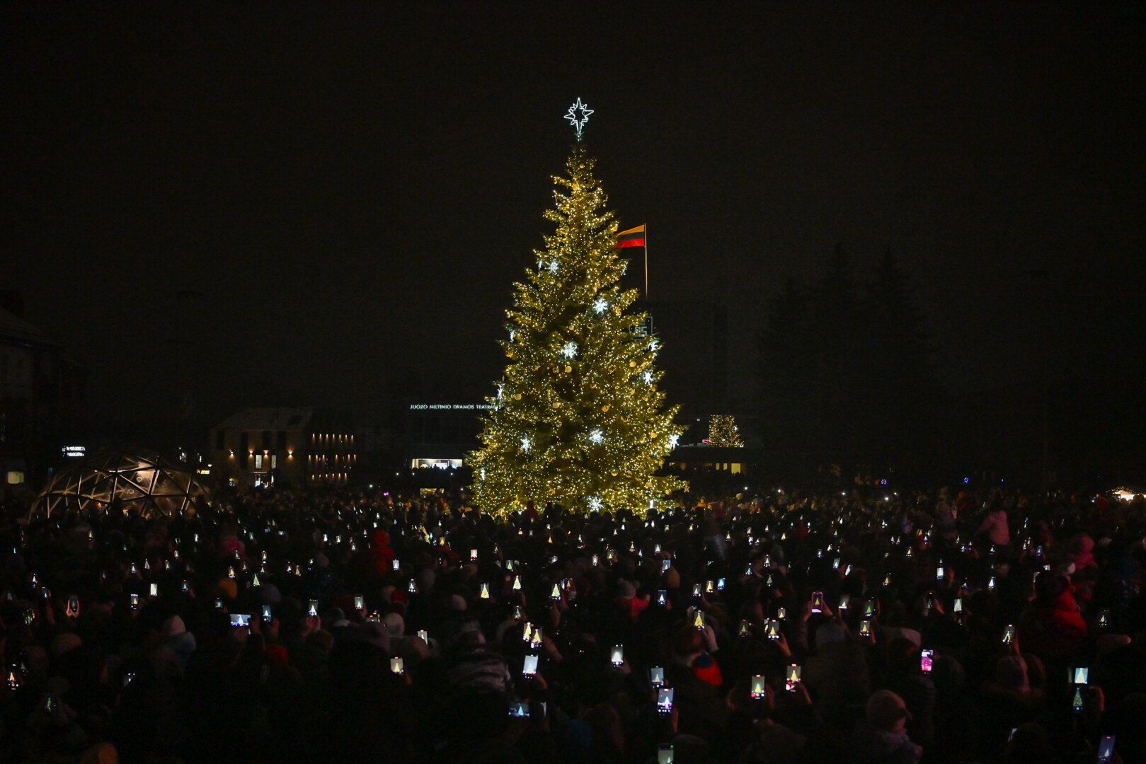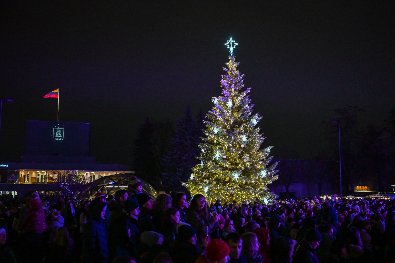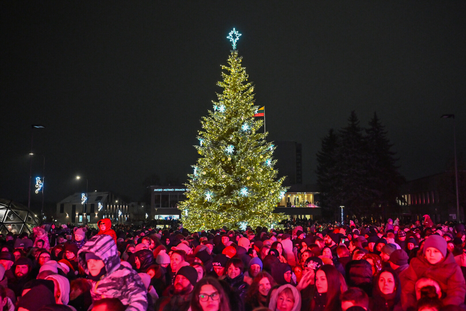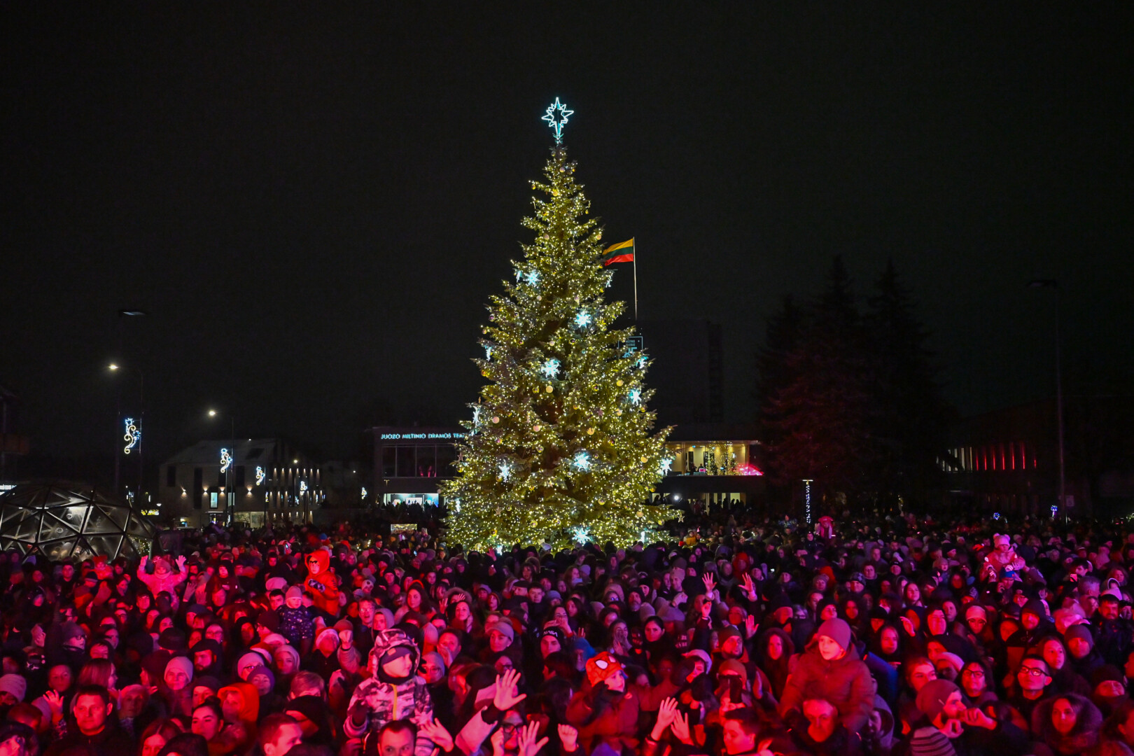 Iki pat sausio vidurio mieste tamsą sklaidys ypatingo jaukumo suteikiančios kalėdinės puošmenos, o visą mėnesį prie įspūdingai atrodančios, papuoštos natūralios eglės tęsis šventinės dūzgės.