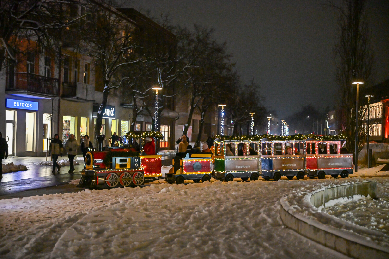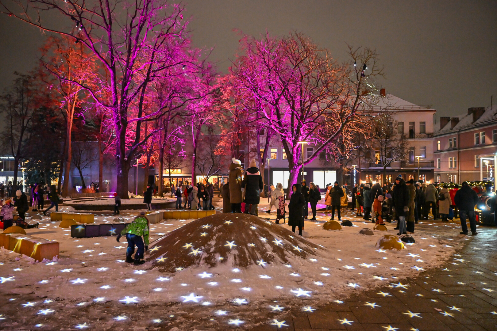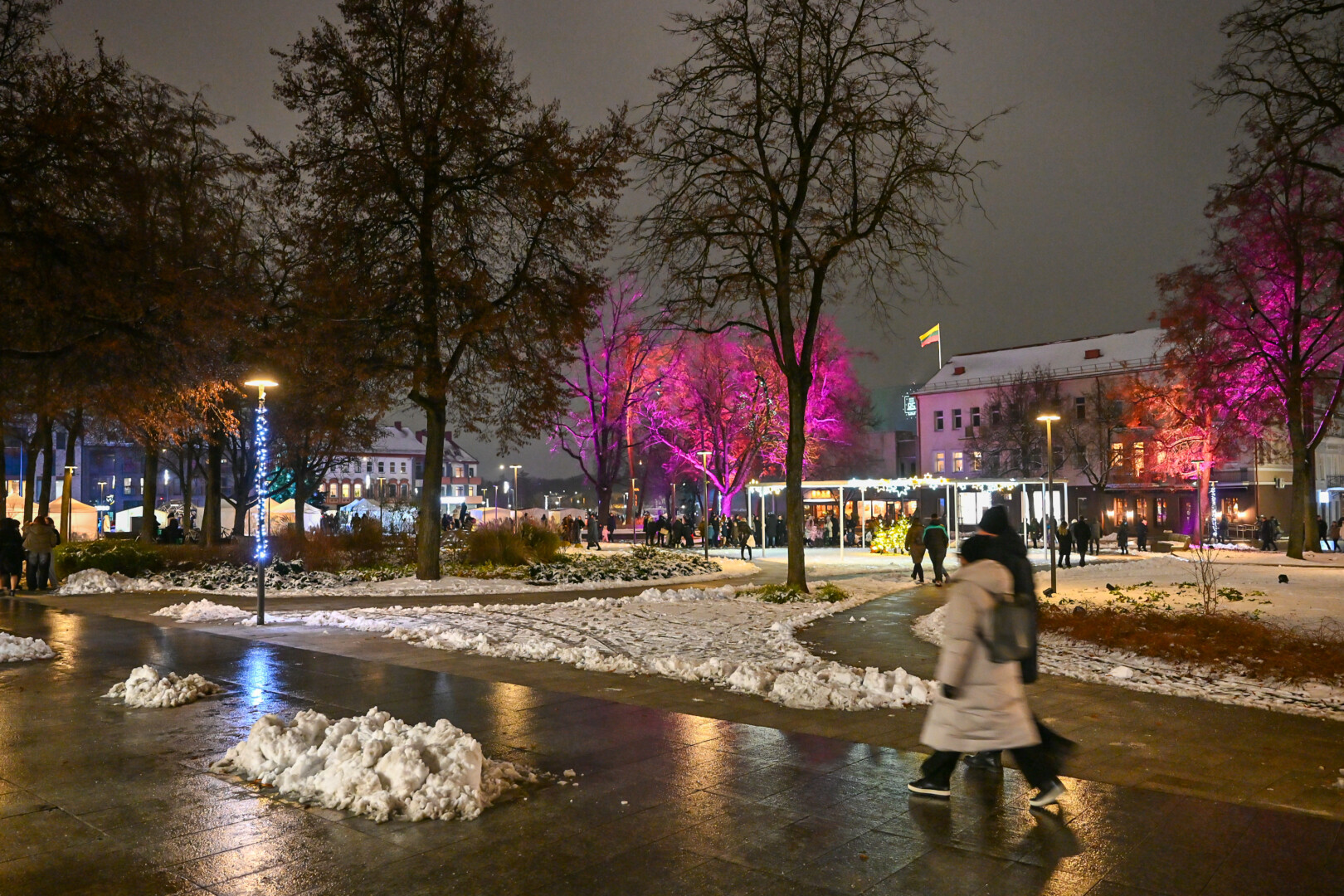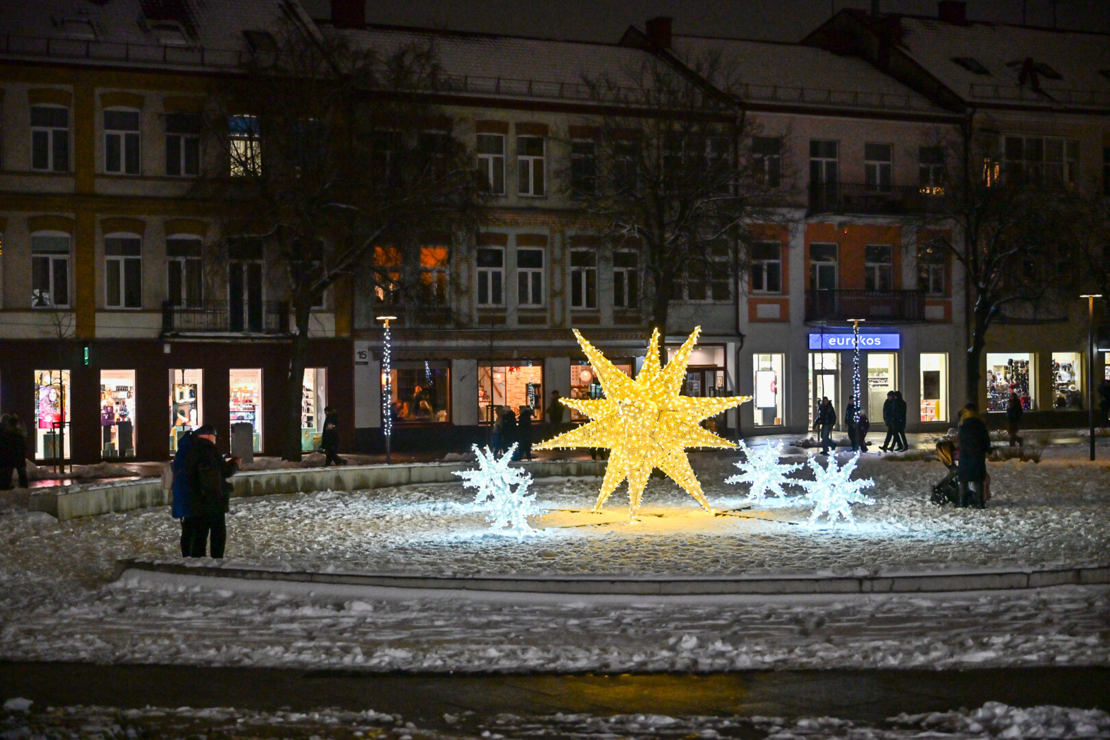 Iki pat sausio vidurio mieste tamsą sklaidys ypatingo jaukumo suteikiančios kalėdinės puošmenos, o visą mėnesį prie įspūdingai atrodančios, papuoštos natūralios eglės tęsis šventinės dūzgės.