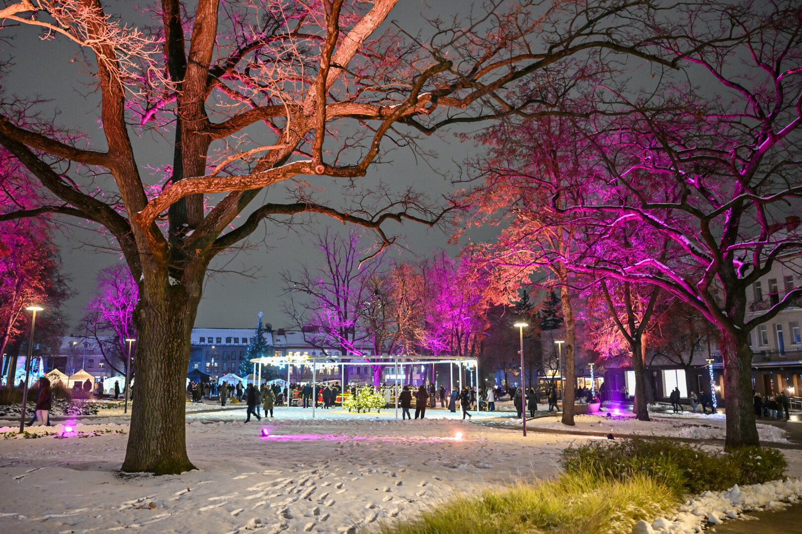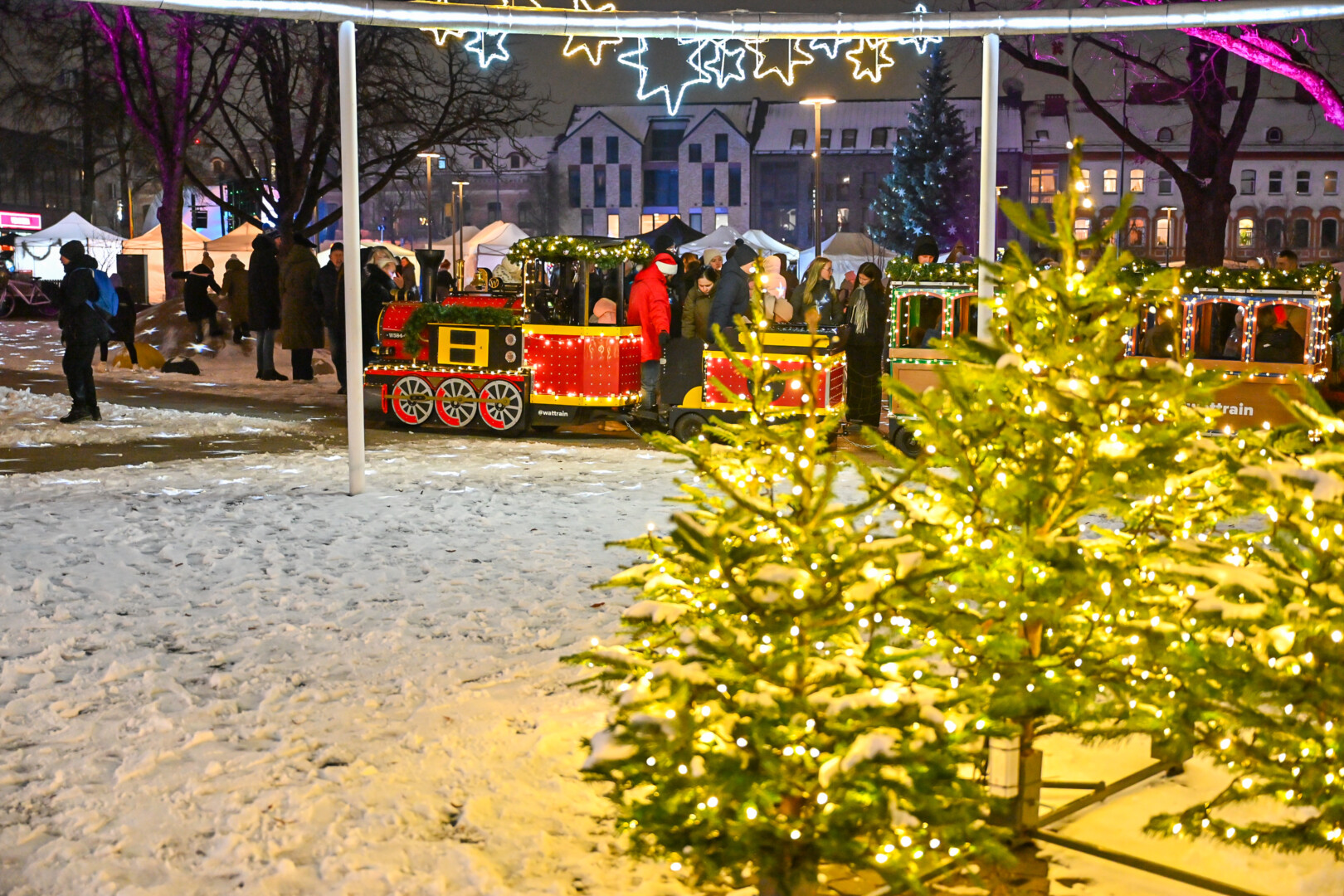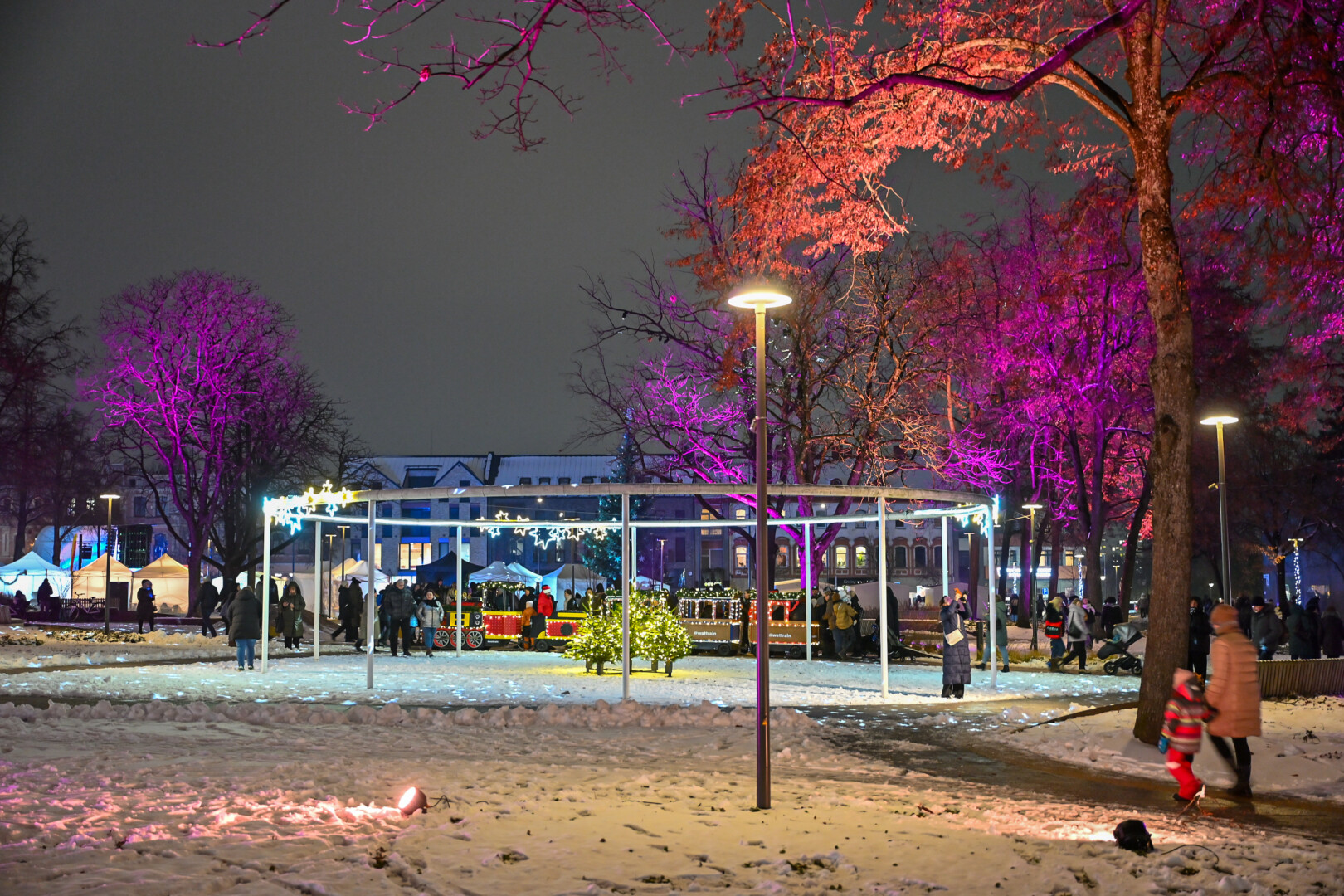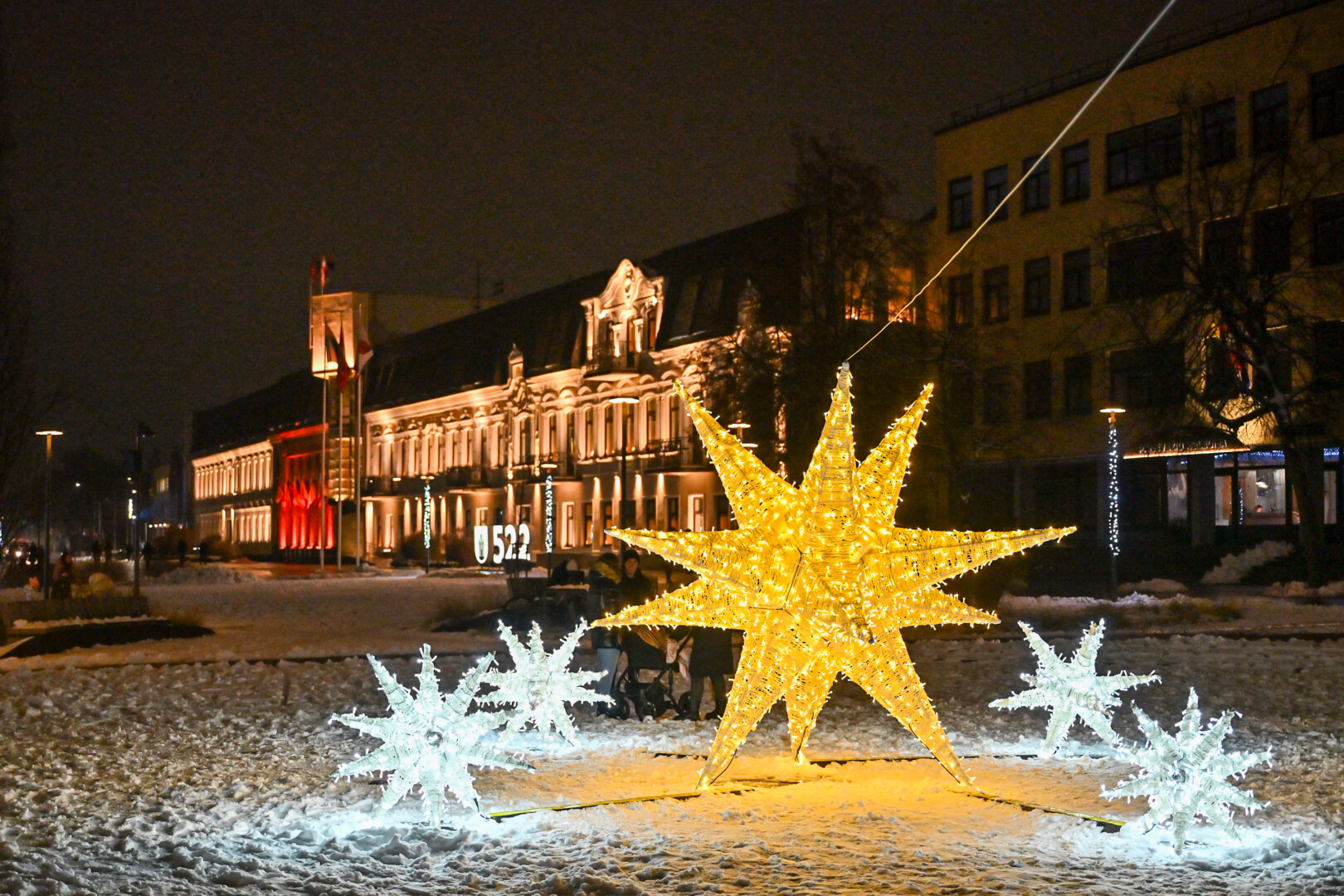 Iki pat sausio vidurio mieste tamsą sklaidys ypatingo jaukumo suteikiančios kalėdinės puošmenos, o visą mėnesį prie įspūdingai atrodančios, papuoštos natūralios eglės tęsis šventinės dūzgės.
