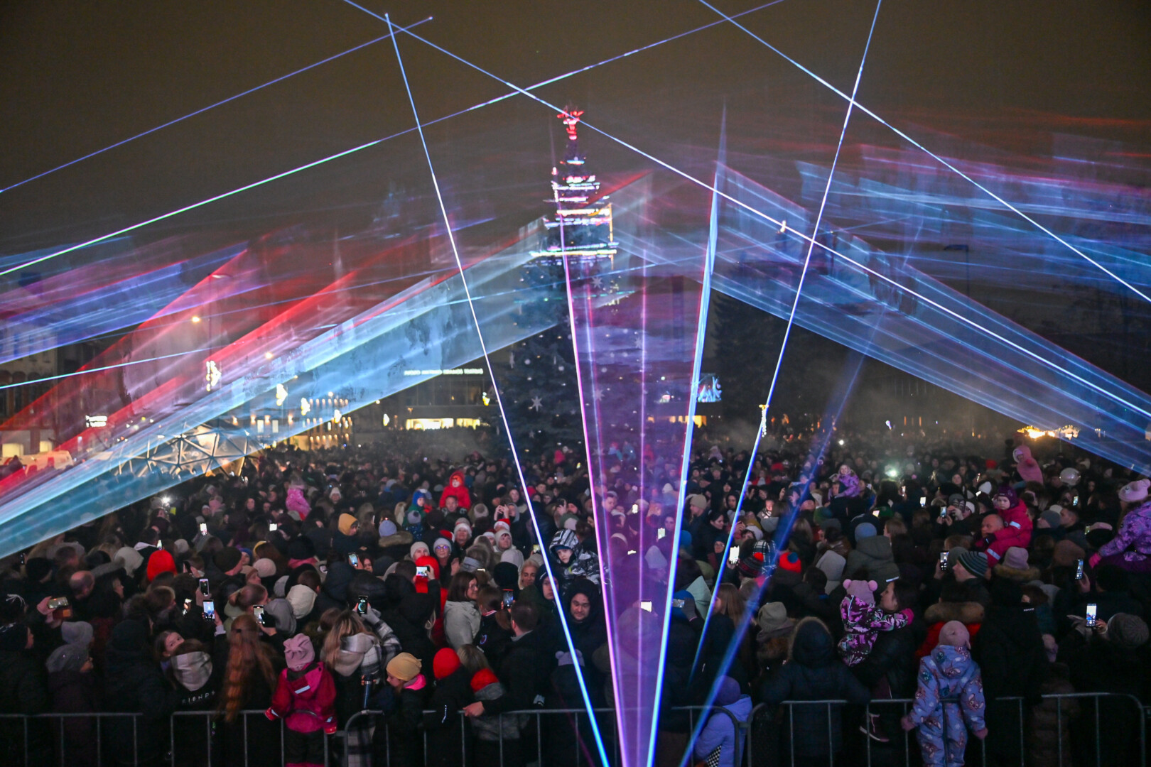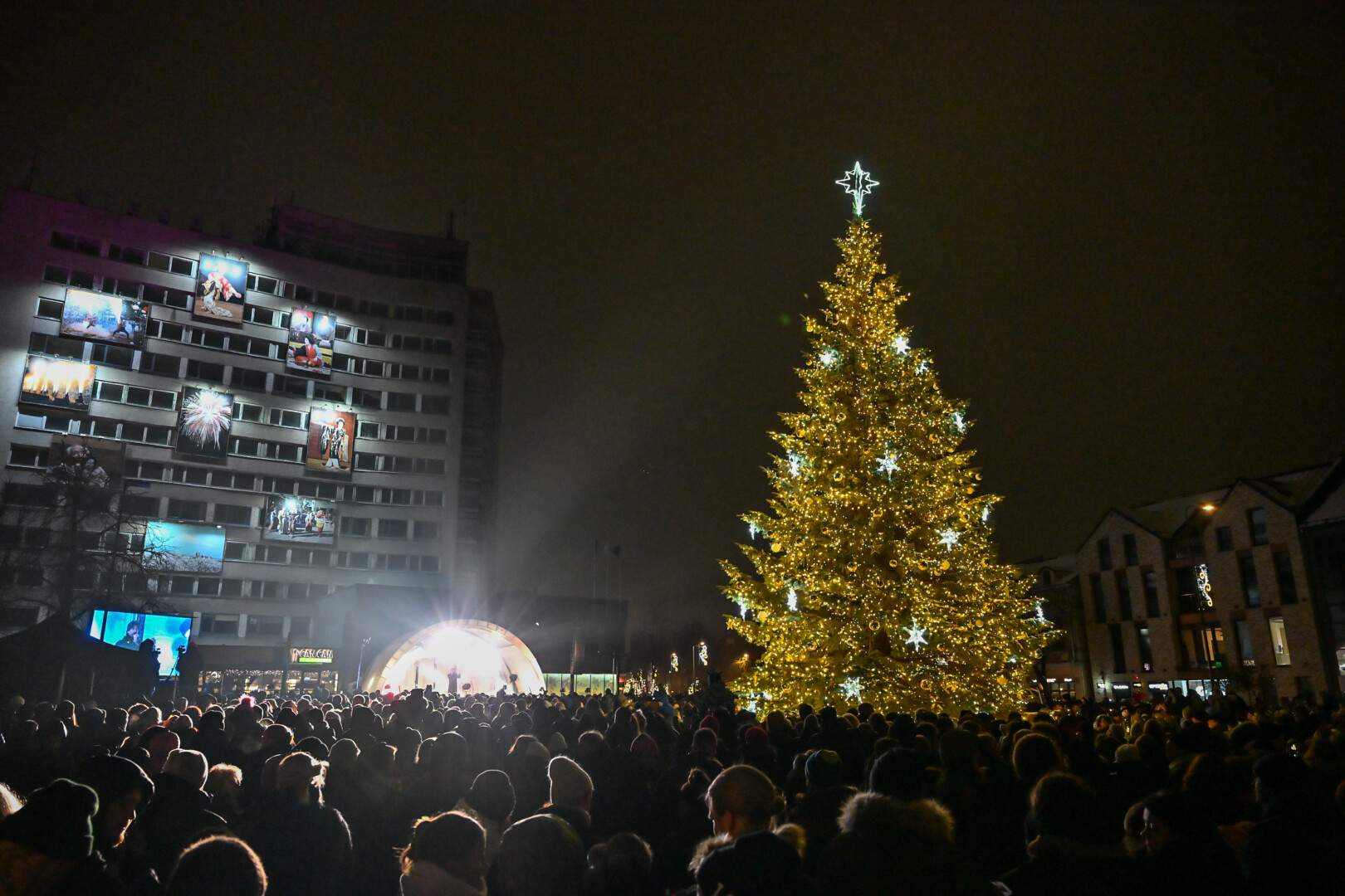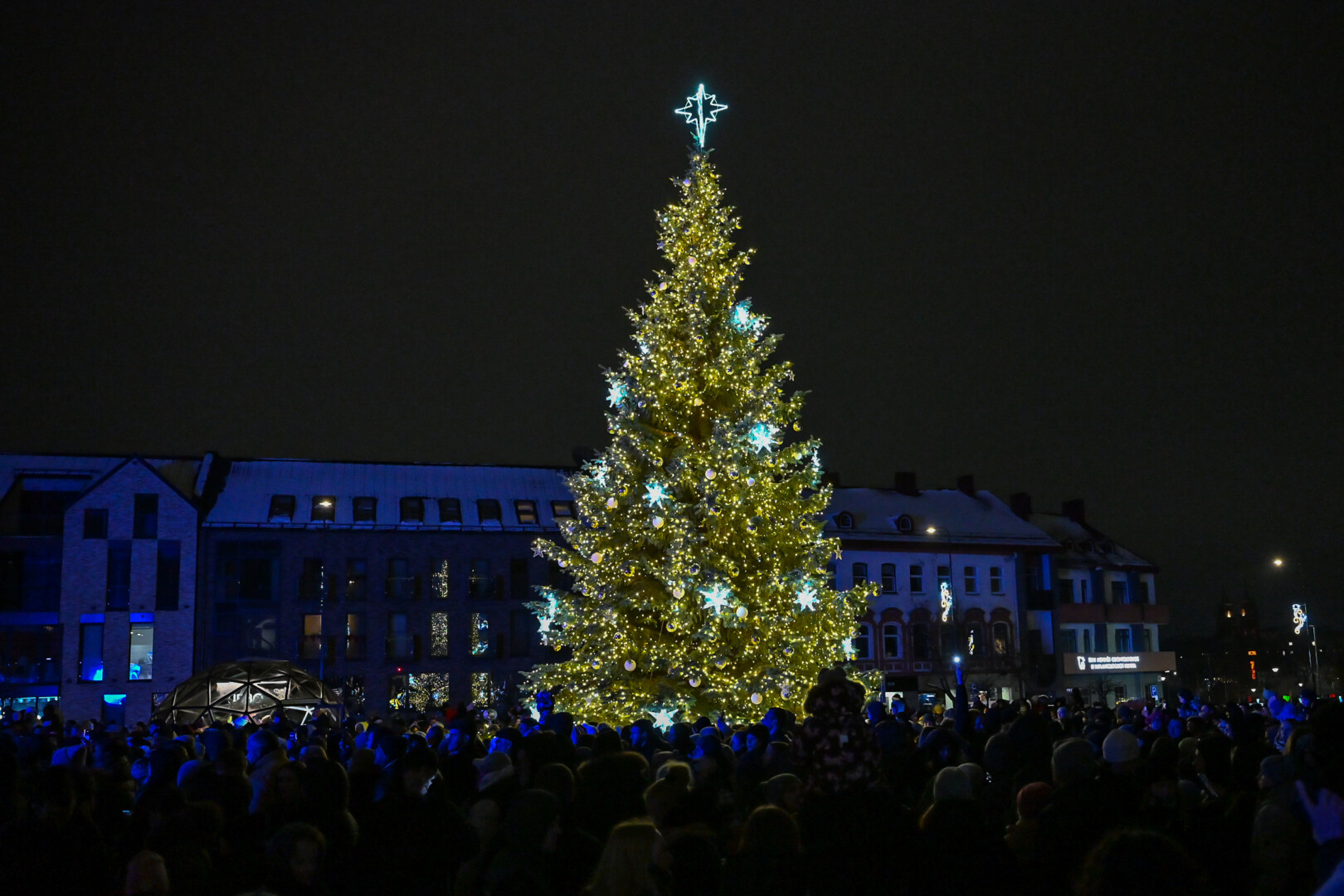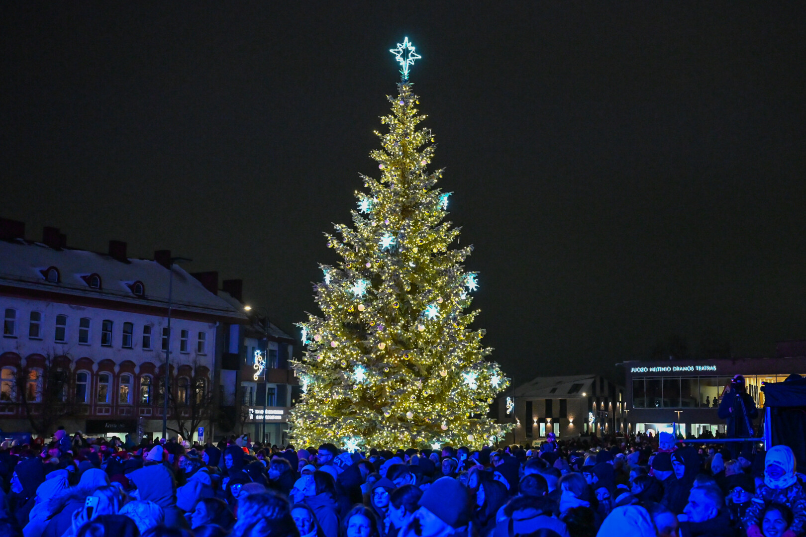 Panevėžio širdyje, Laisvės aikštėje, įžiebta kalėdinė eglė paskelbė šventinio laikotarpio pradžią.