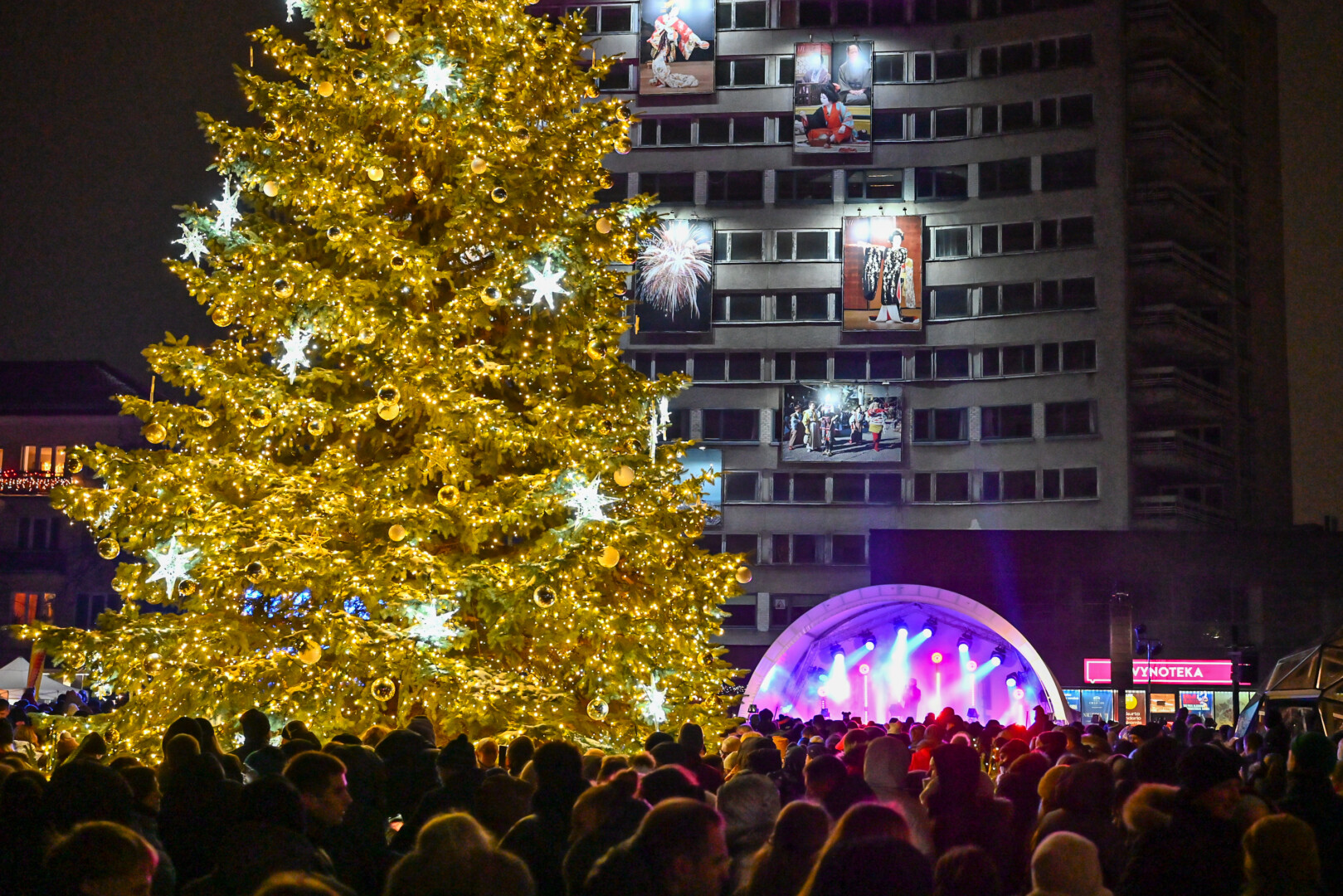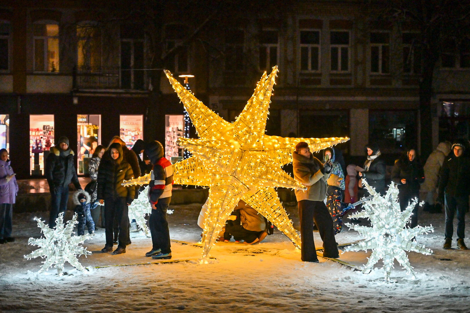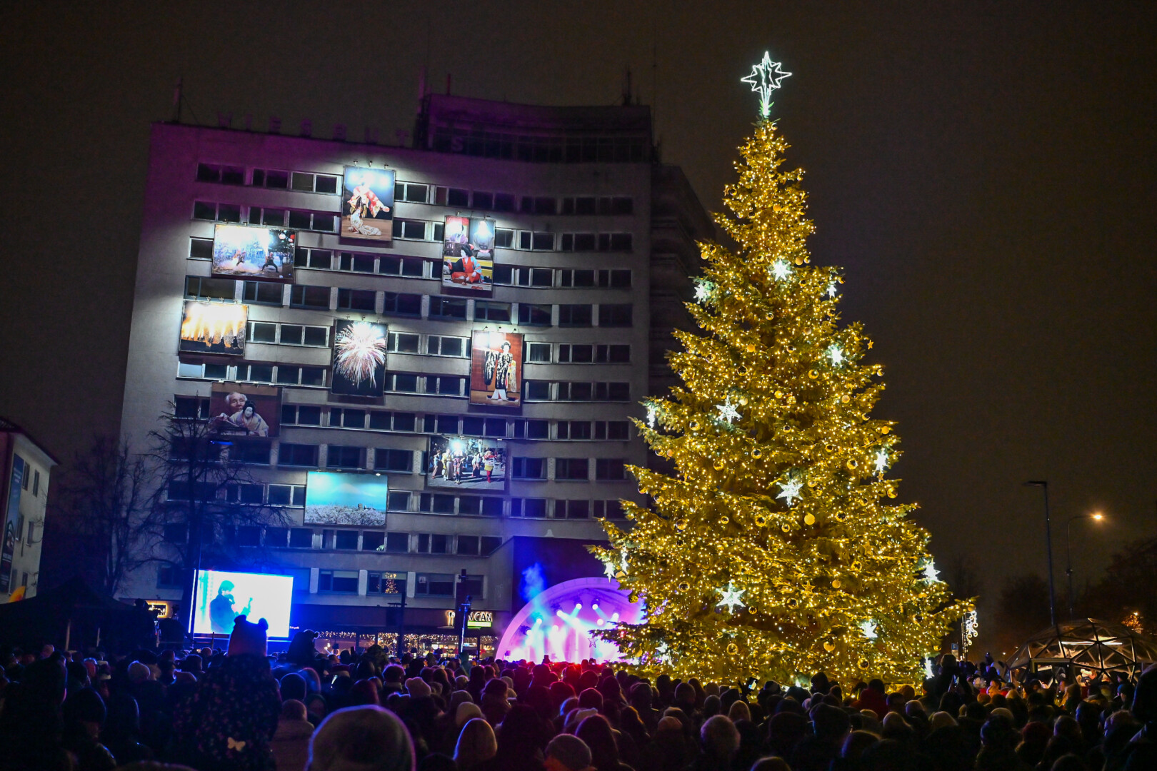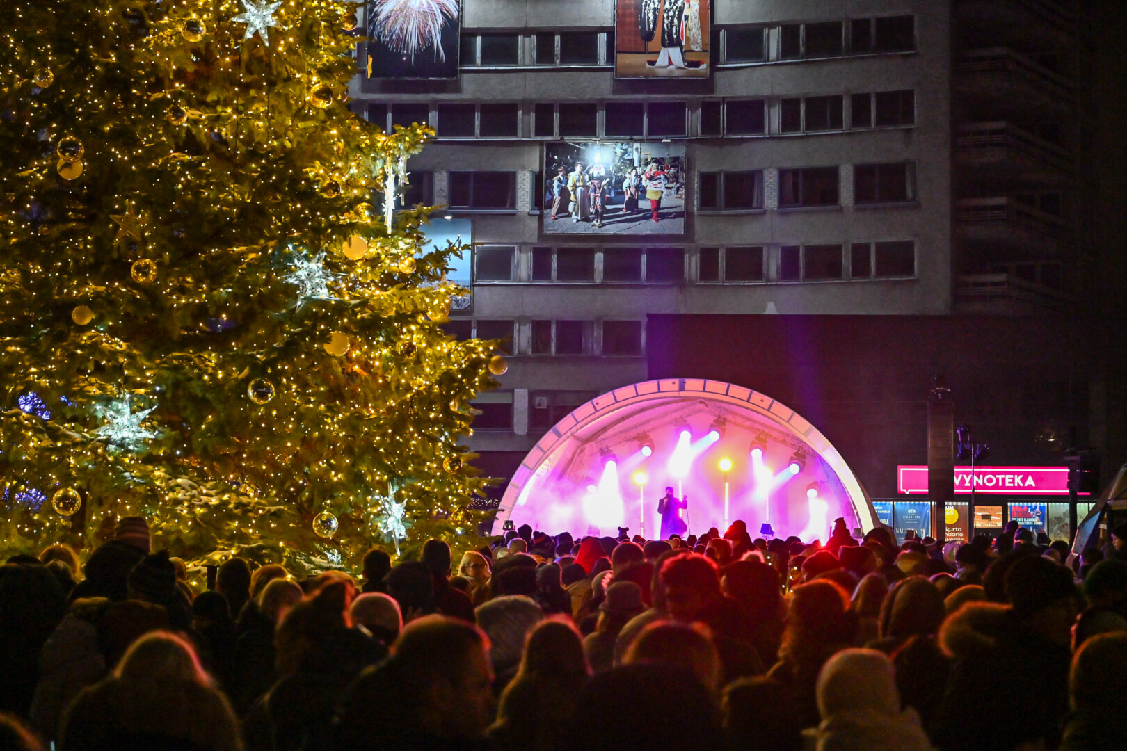 Panevėžio širdyje, Laisvės aikštėje, įžiebta kalėdinė eglė paskelbė šventinio laikotarpio pradžią.