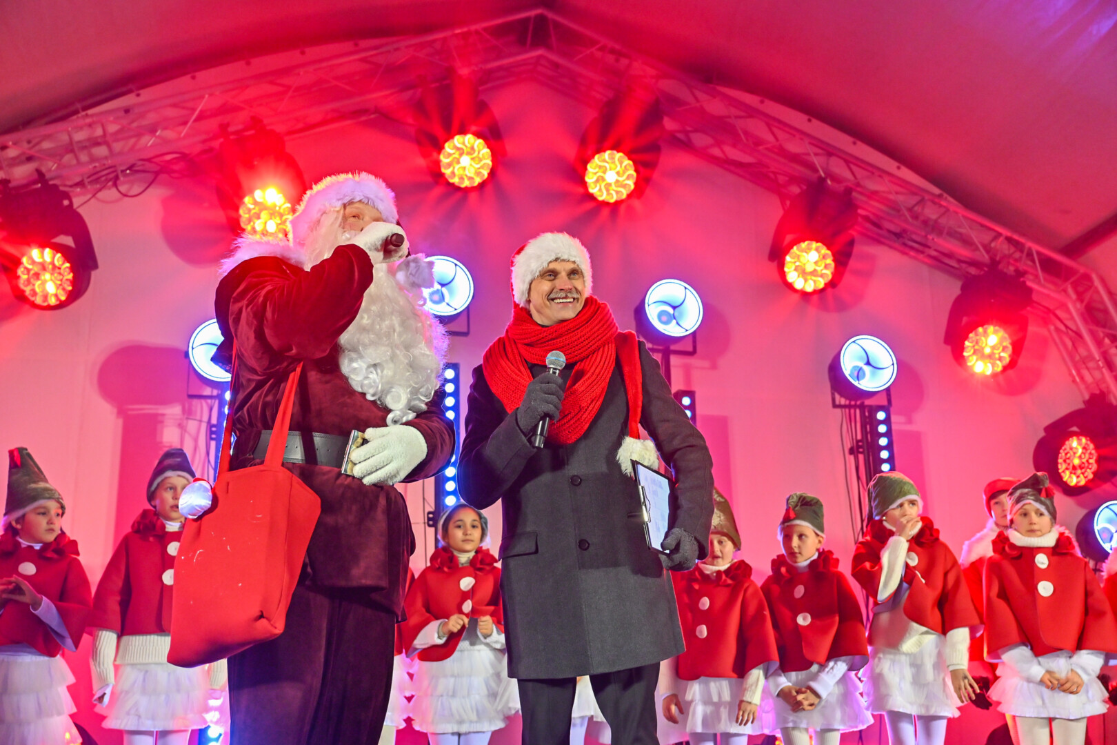 Penktadienio vakarą Laisvės aikštę užplūdo minia panevėžiečių, kalėdinių nykštukų ir visų – vaikų bei suaugusiųjų – laukiamiausias Kalėdų Senelis.