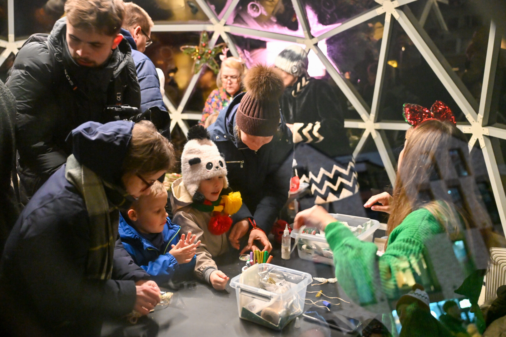 Stikliniame kupole įsikūrusiose kūrybinėse dirbtuvėlėse floristė Vida Čereškevičienė, edukatorė Gitana Banevičienė ir meno kūrėjai „KeNi Art“ mokė pasigaminti šventinių dekoracijų ir dovanėlių.