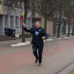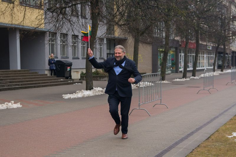 Rekordo siekiantį bėgimą pradėjo devintą valandą 400 metrų ratą pirmasis apibėgęs miesto meras Rytis Mykolas Račkauskas.