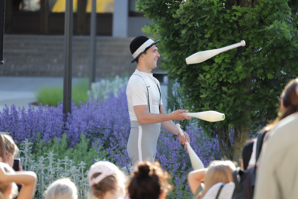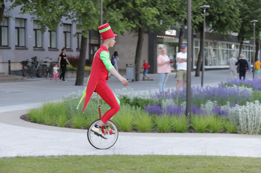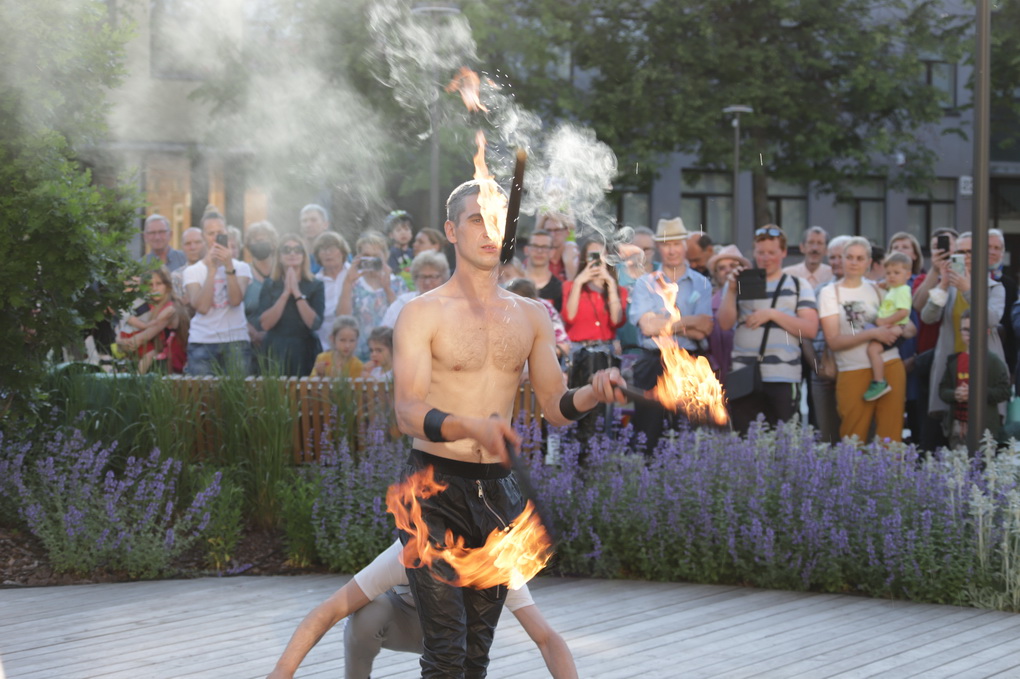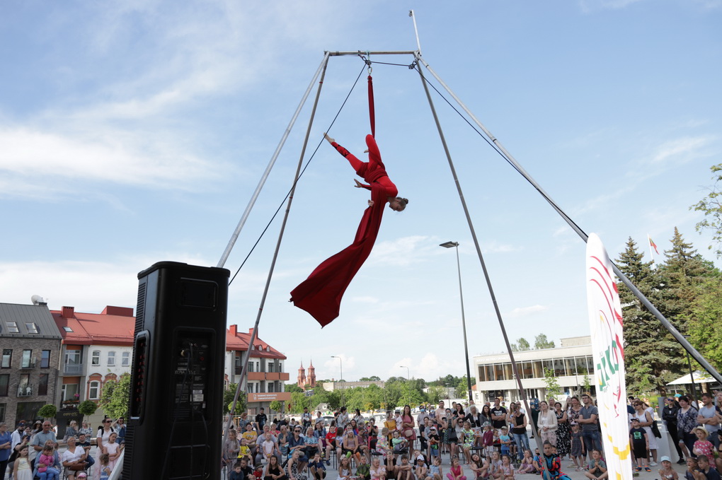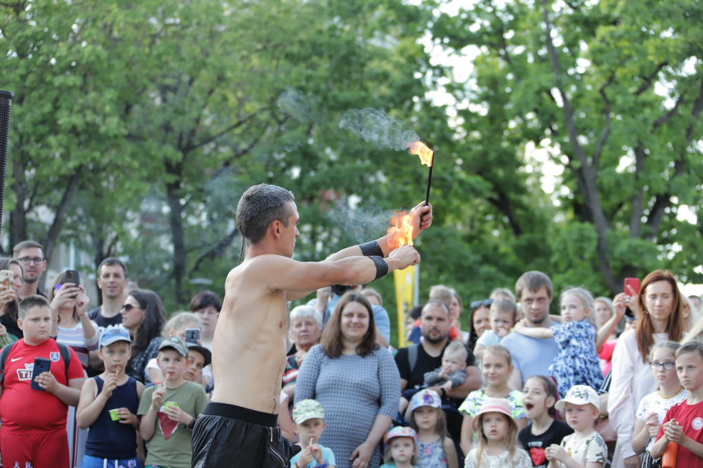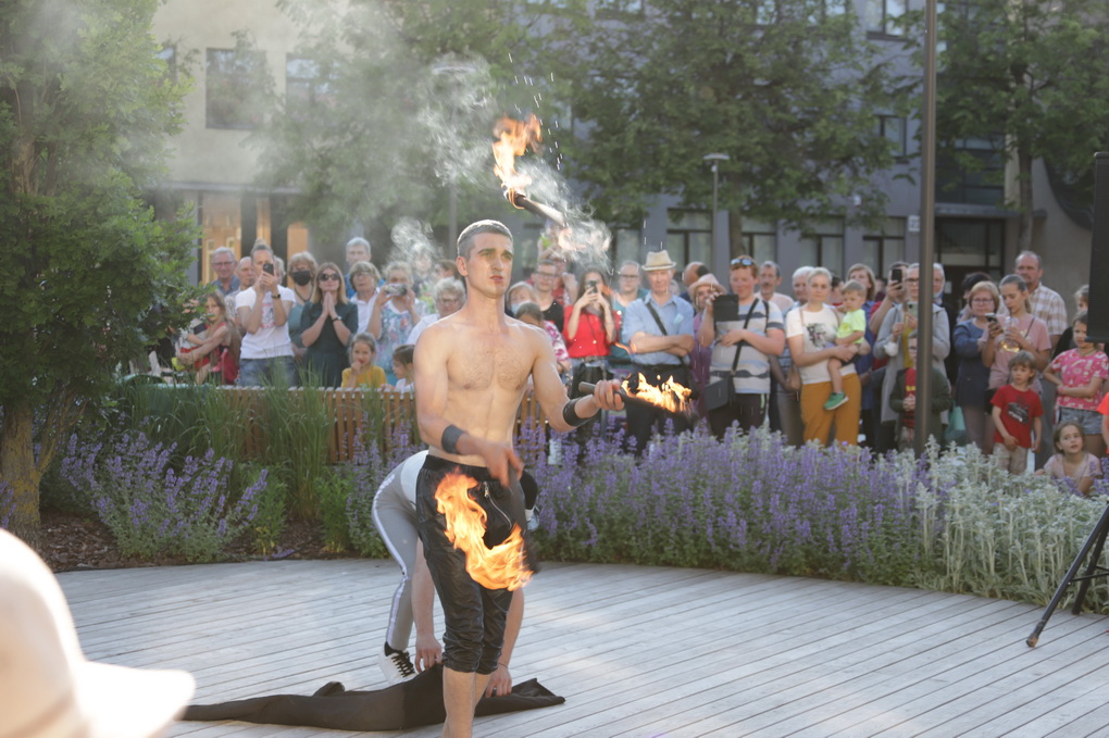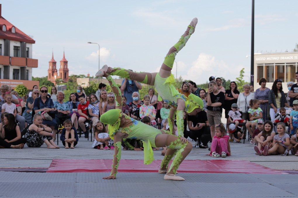 Vakare aikštėje skraidė muilo burbulai, triukus rodė Alytaus, Šakių gatvės cirko virtuozai, Kauno mimų teatro aktoriai. O Dailės galerijos kiemelyje būrys panevėžiečių mėgavosi ypatingais „Dūdų vasaros“ svečiais – Lietuvos kariuomenės orkestro programa.