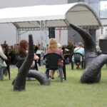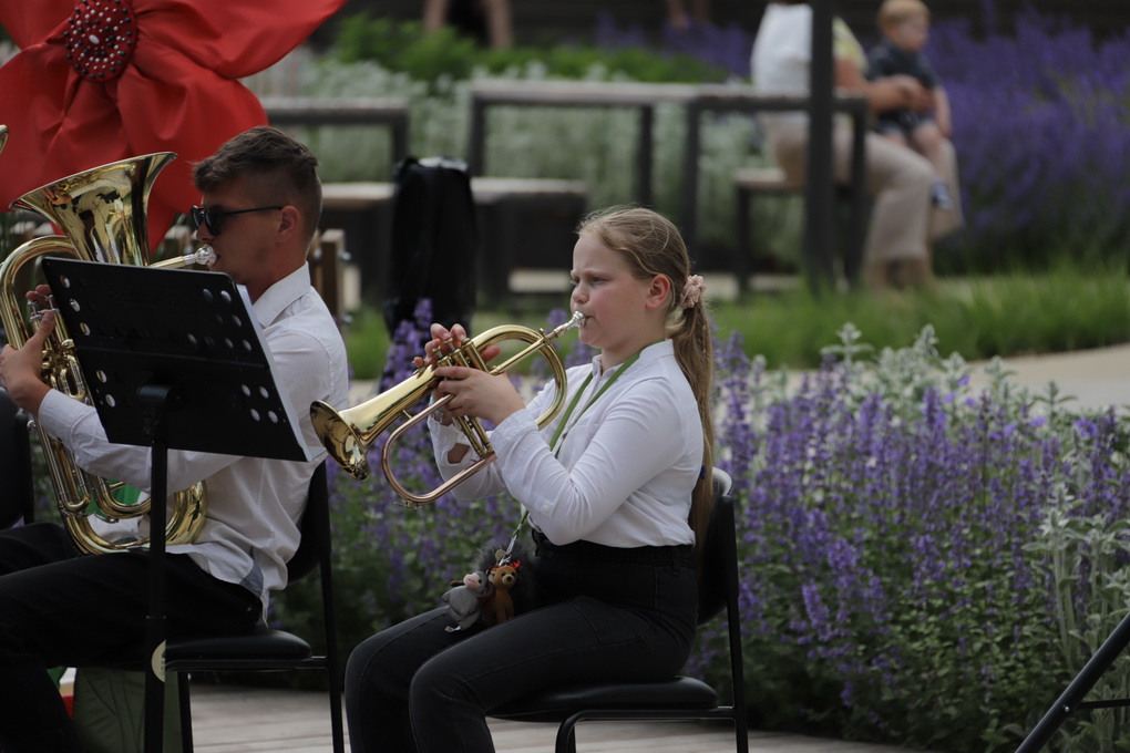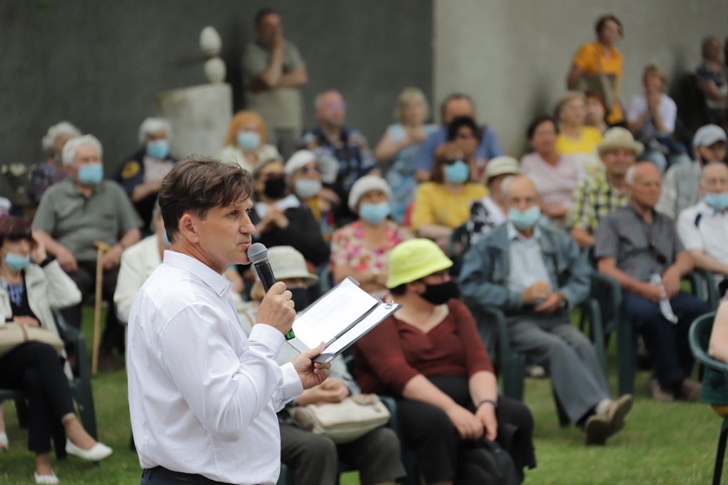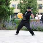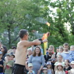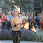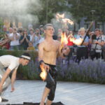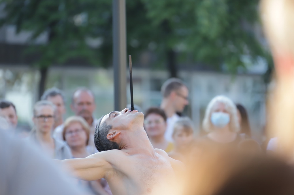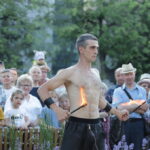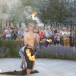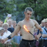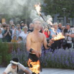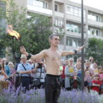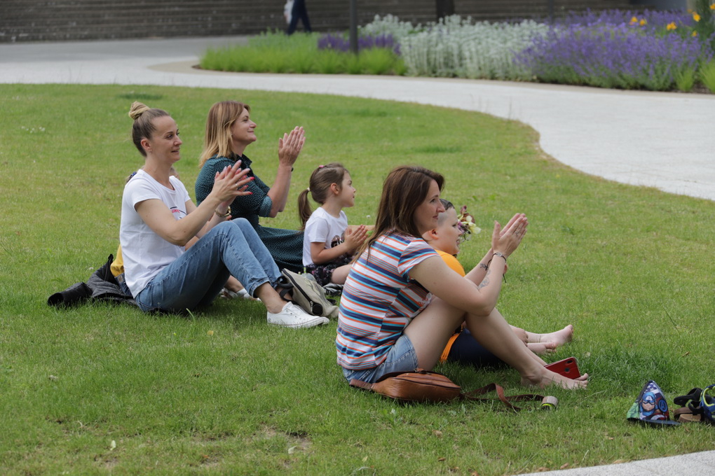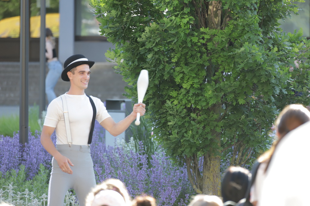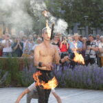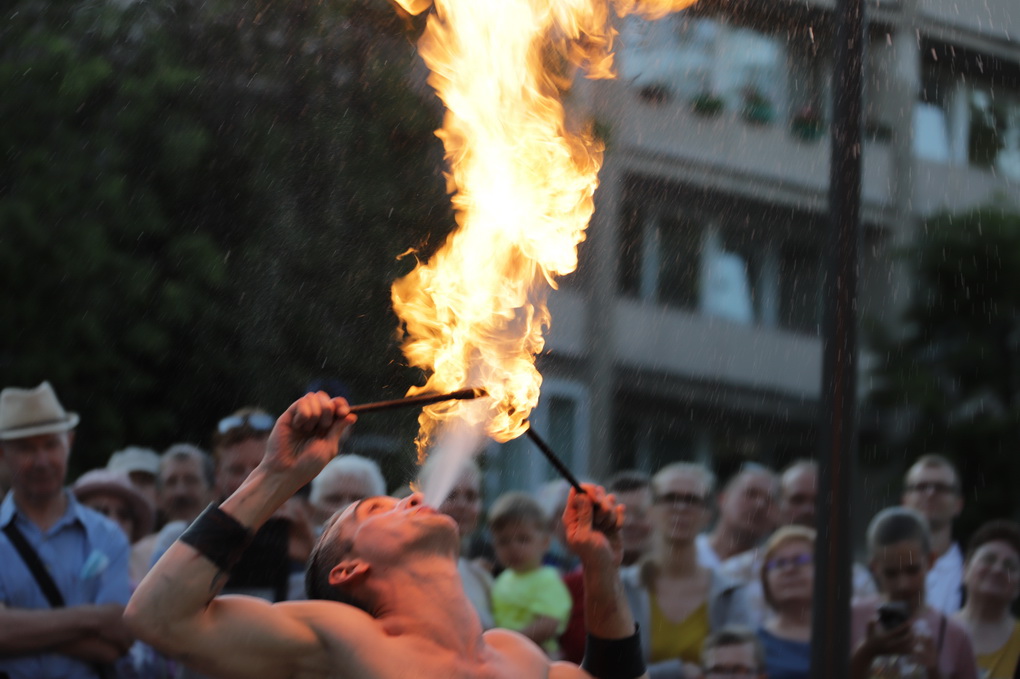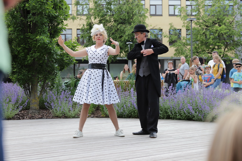 Vakare aikštėje skraidė muilo burbulai, triukus rodė Alytaus, Šakių gatvės cirko virtuozai, Kauno mimų teatro aktoriai. O Dailės galerijos kiemelyje būrys panevėžiečių mėgavosi ypatingais „Dūdų vasaros“ svečiais – Lietuvos kariuomenės orkestro programa.