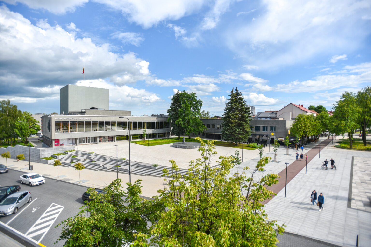 2007 metais minint režisieriaus Juozo Miltinio šimtąsias gimimo metines, priešais dramos teatrą atidengtas bronzinis paminklas „Mintis“, vaizduojantis ant kėdės sėdintį režisierių. Šio paminklo autorius – Regimantas Midvikis.