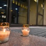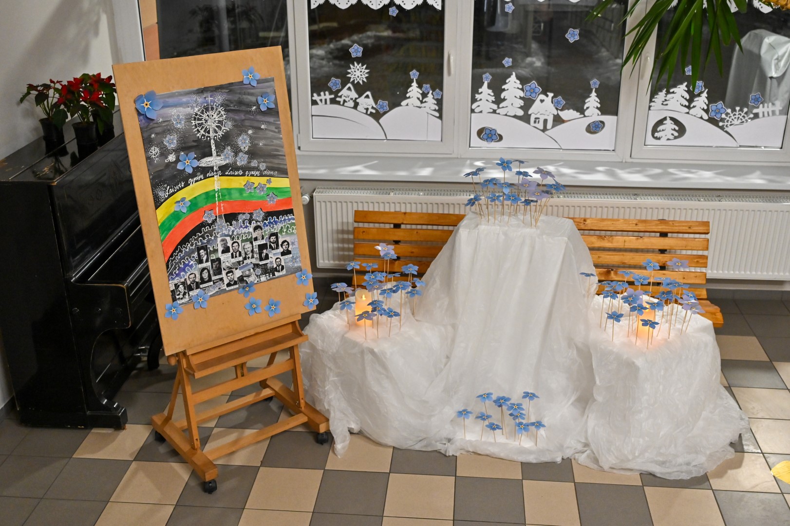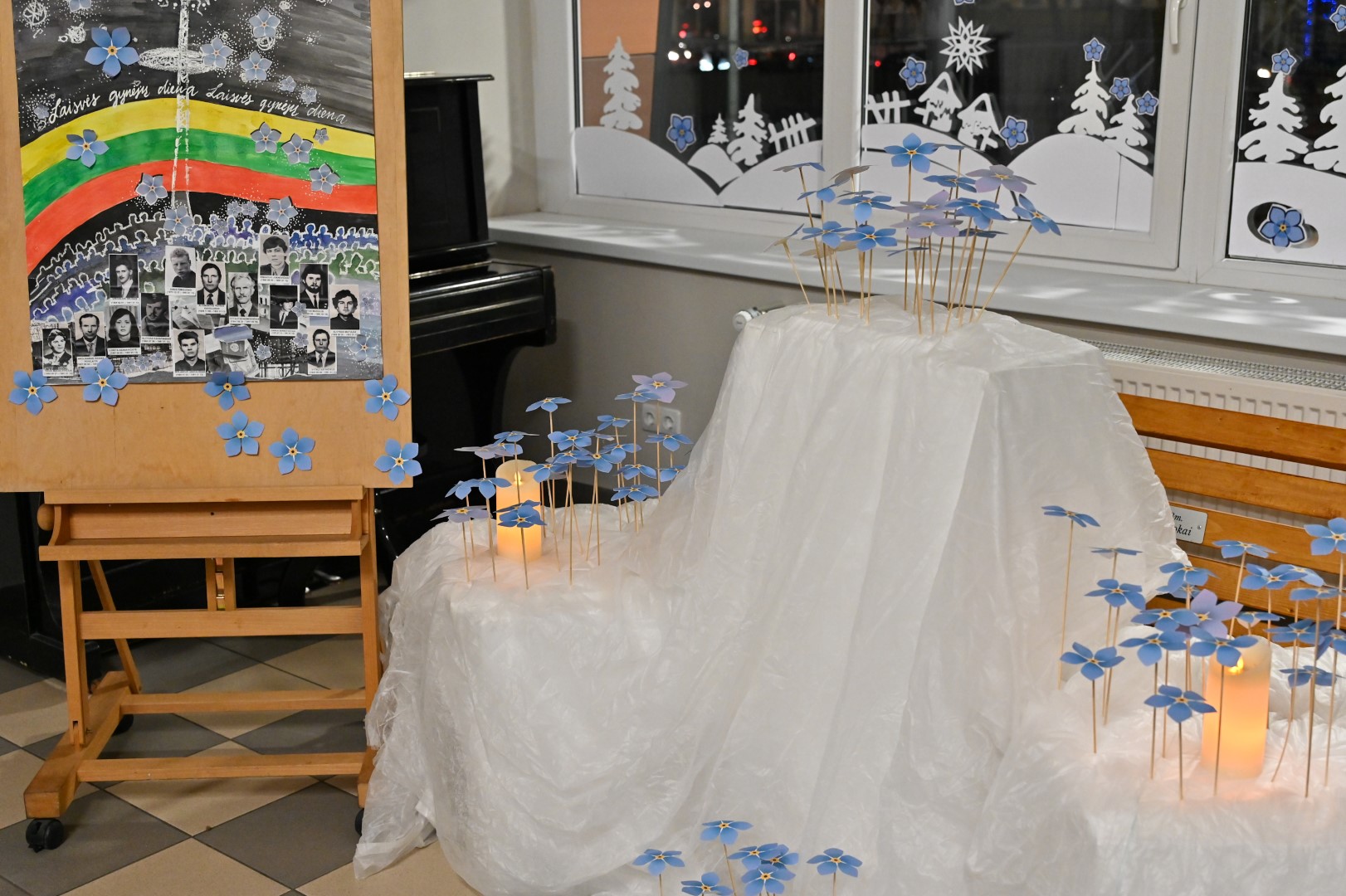 Dešimčiai minučių žvakučių ugnelės nušvietė tamsą mokyklų, įstaigų, įmonių, gyvenamųjų namų languose.