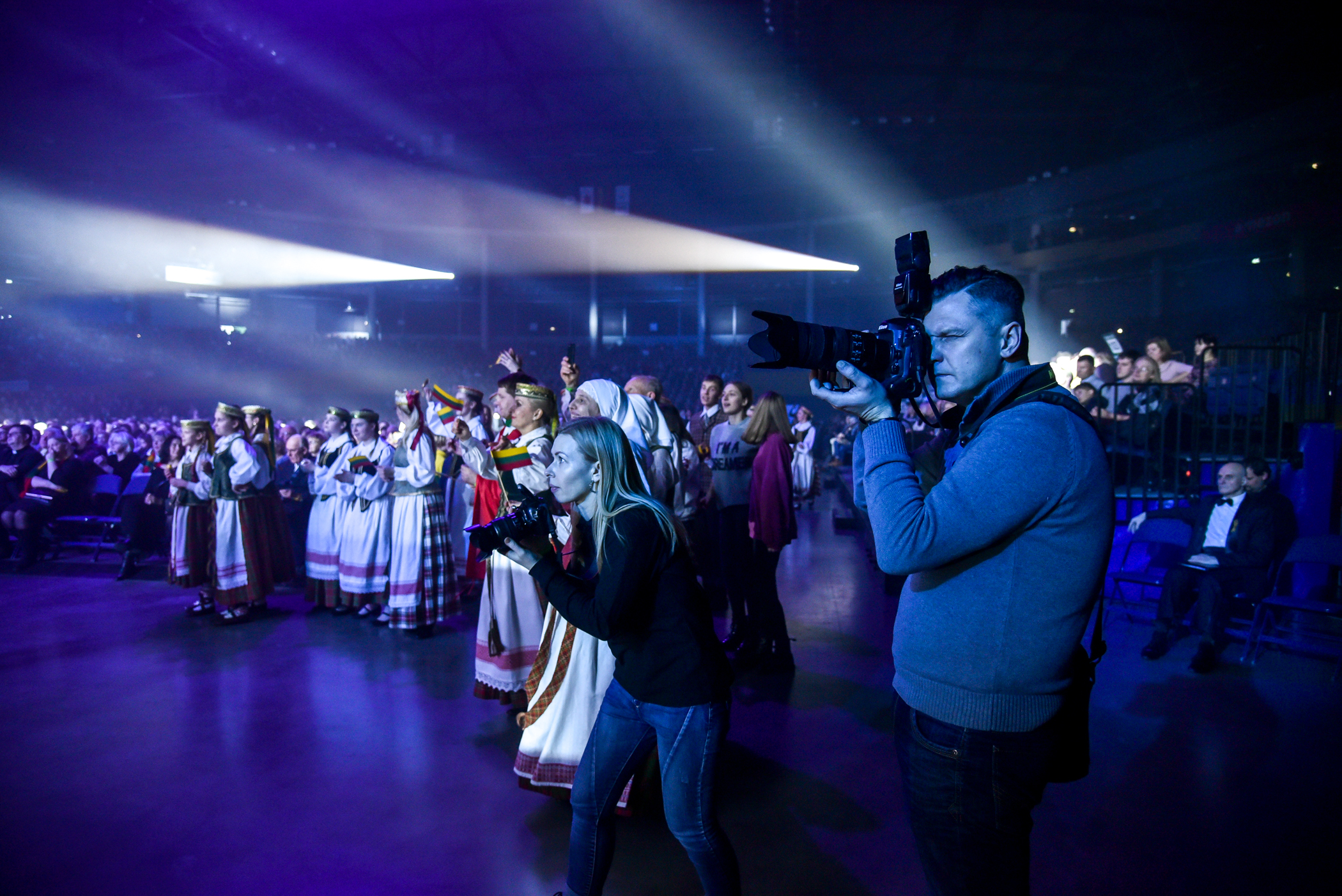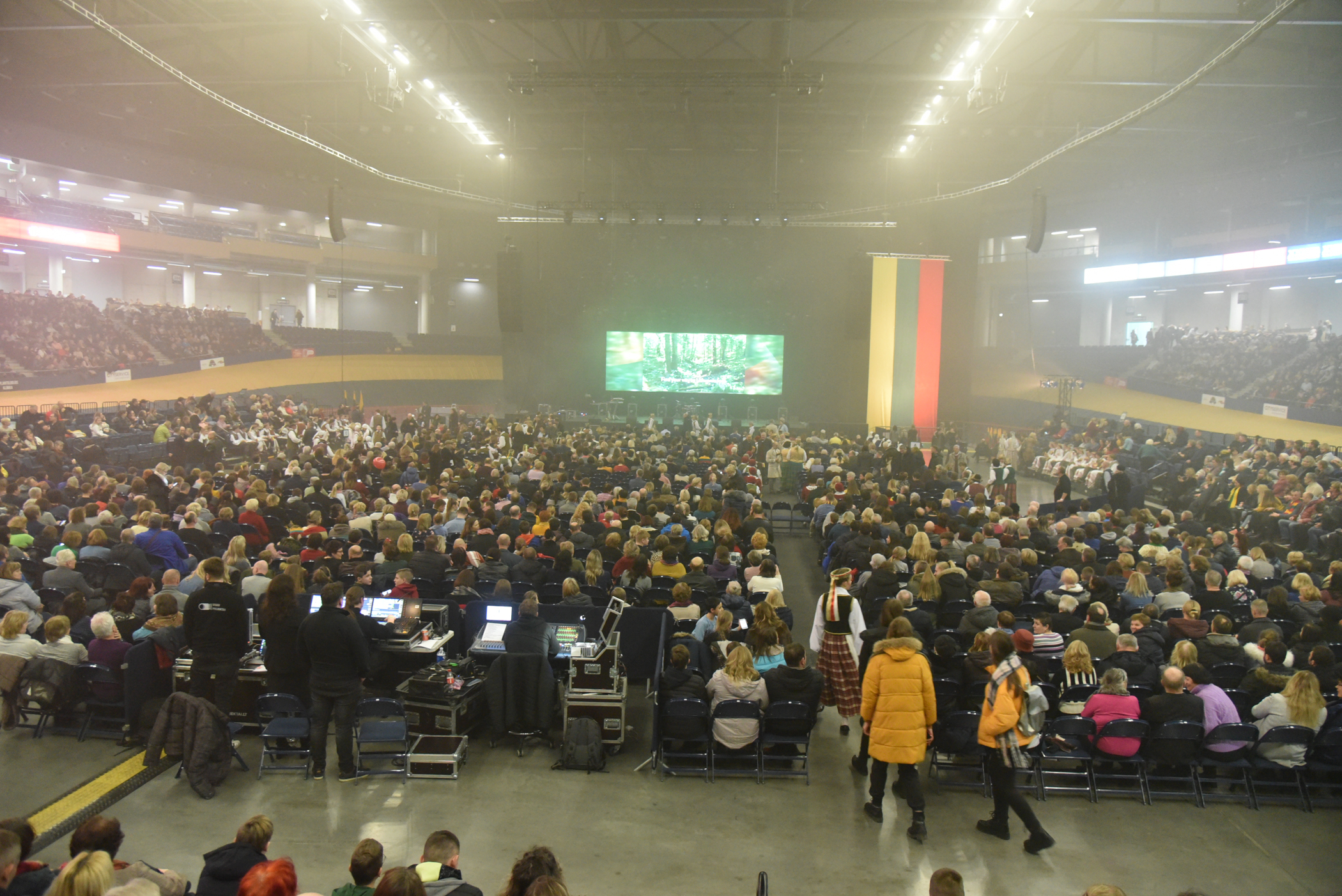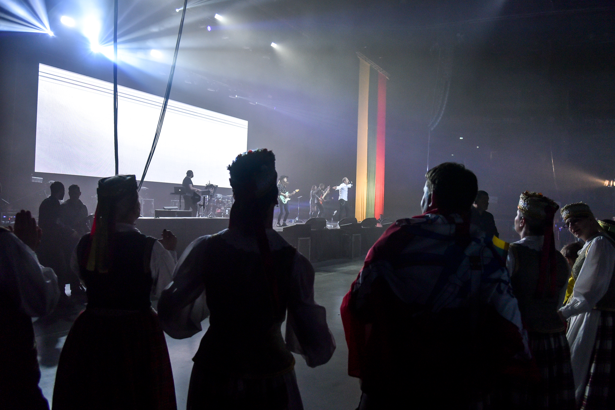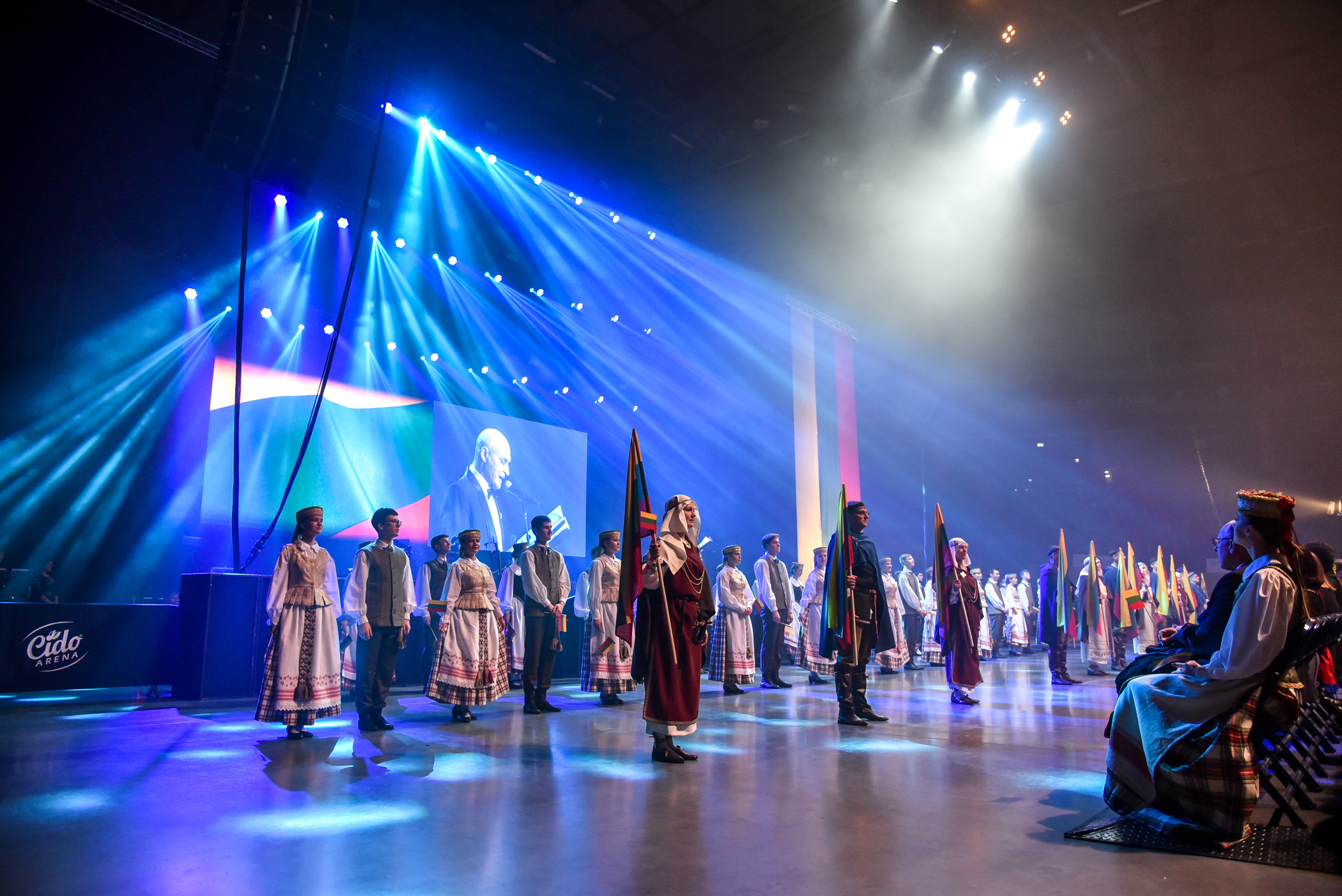 Didžiausia miesto arena talpina septynis tūkstančius žiūrovų, tad nekantriausieji prie “Cido” arenos durų būriavosi iki renginio pradžios likus daugiau nei valandai. Visus atvykusiuosius švęsti Laisvės pasitiko pučiamųjų orkestras “Garsas”. Čia laukė ir specialiai Vasario 16-ajai paruošta foto sienelė bei profesionalus fotografas – vėliau šias nuotraukas bus galima išvysti Panevėžio bendruomenių rūmų „Facebook“ paskyroje. Šventinę nuotaiką kūrė ir dalijamos trispalvės.