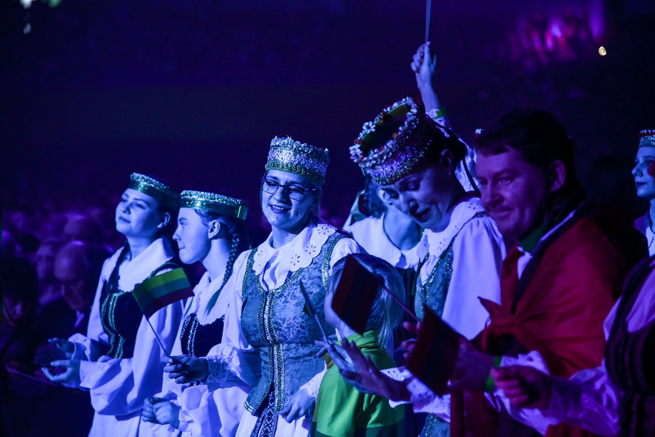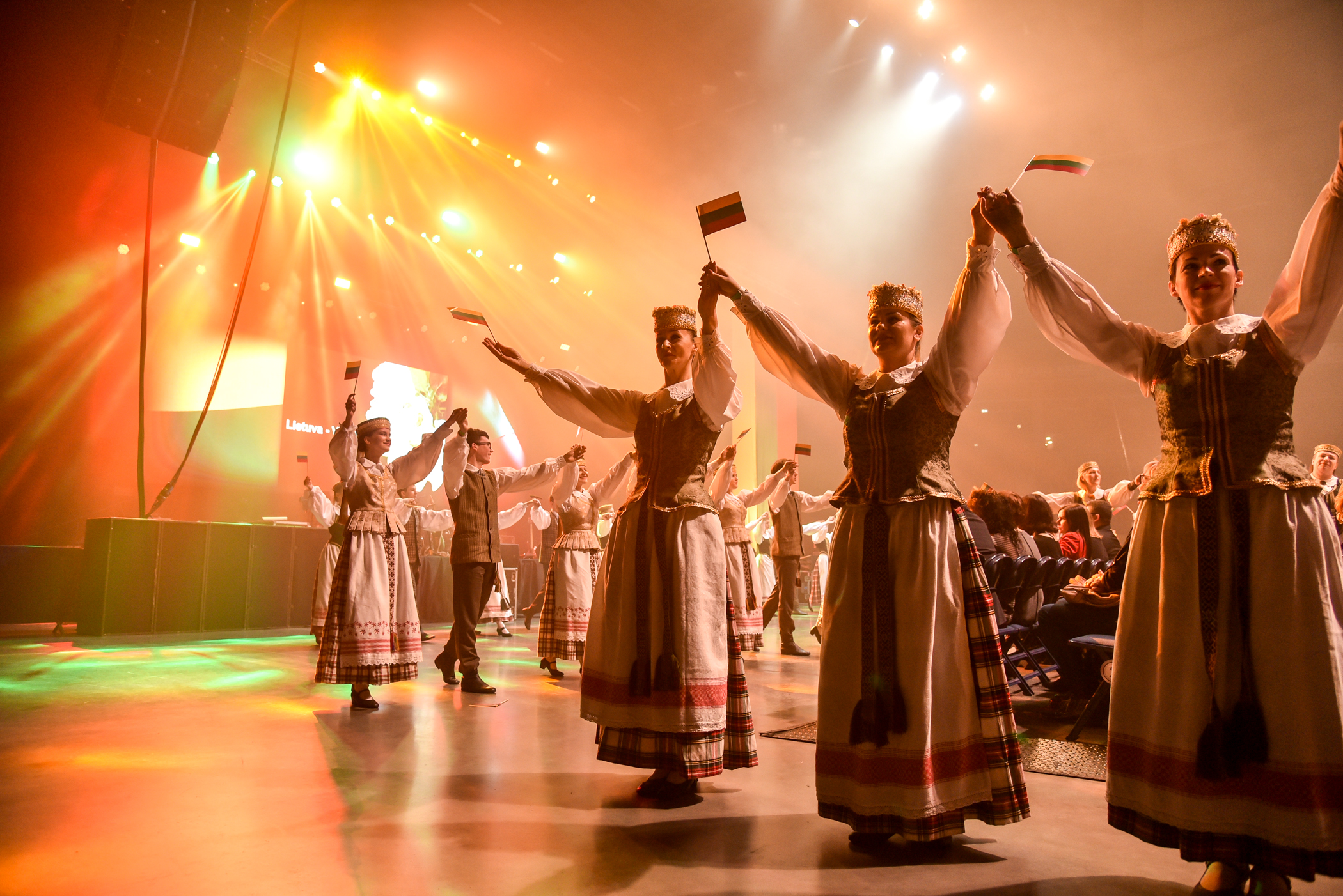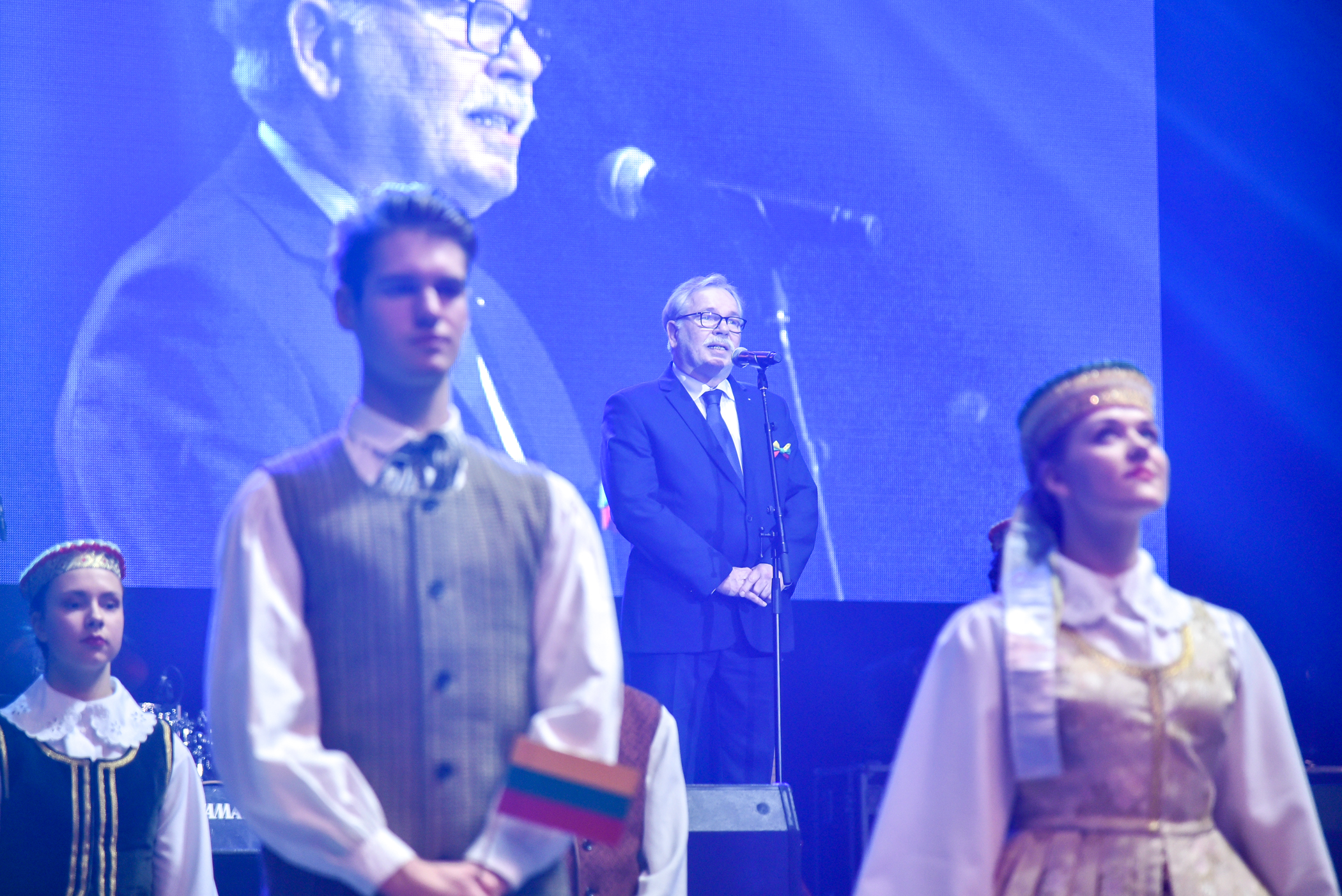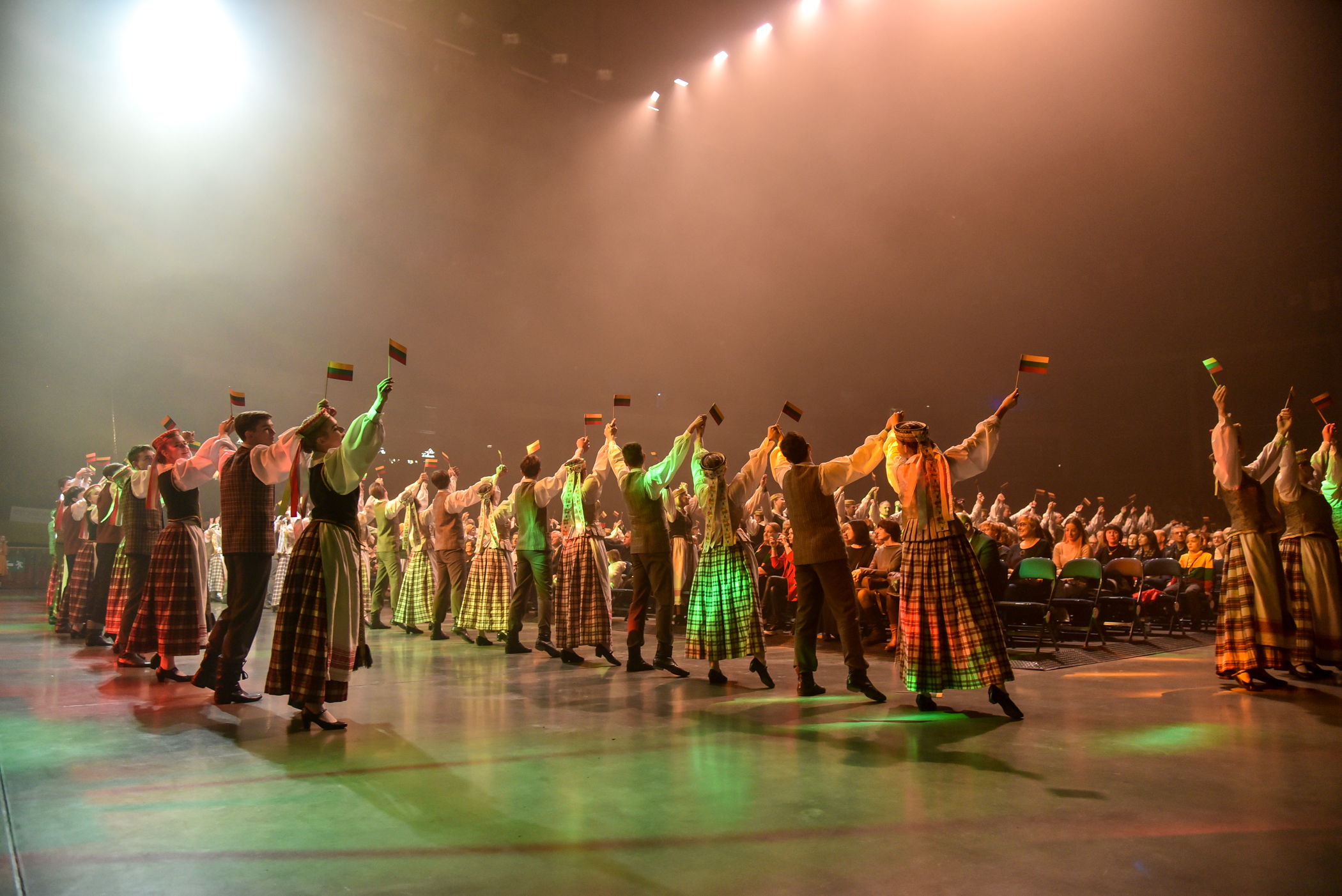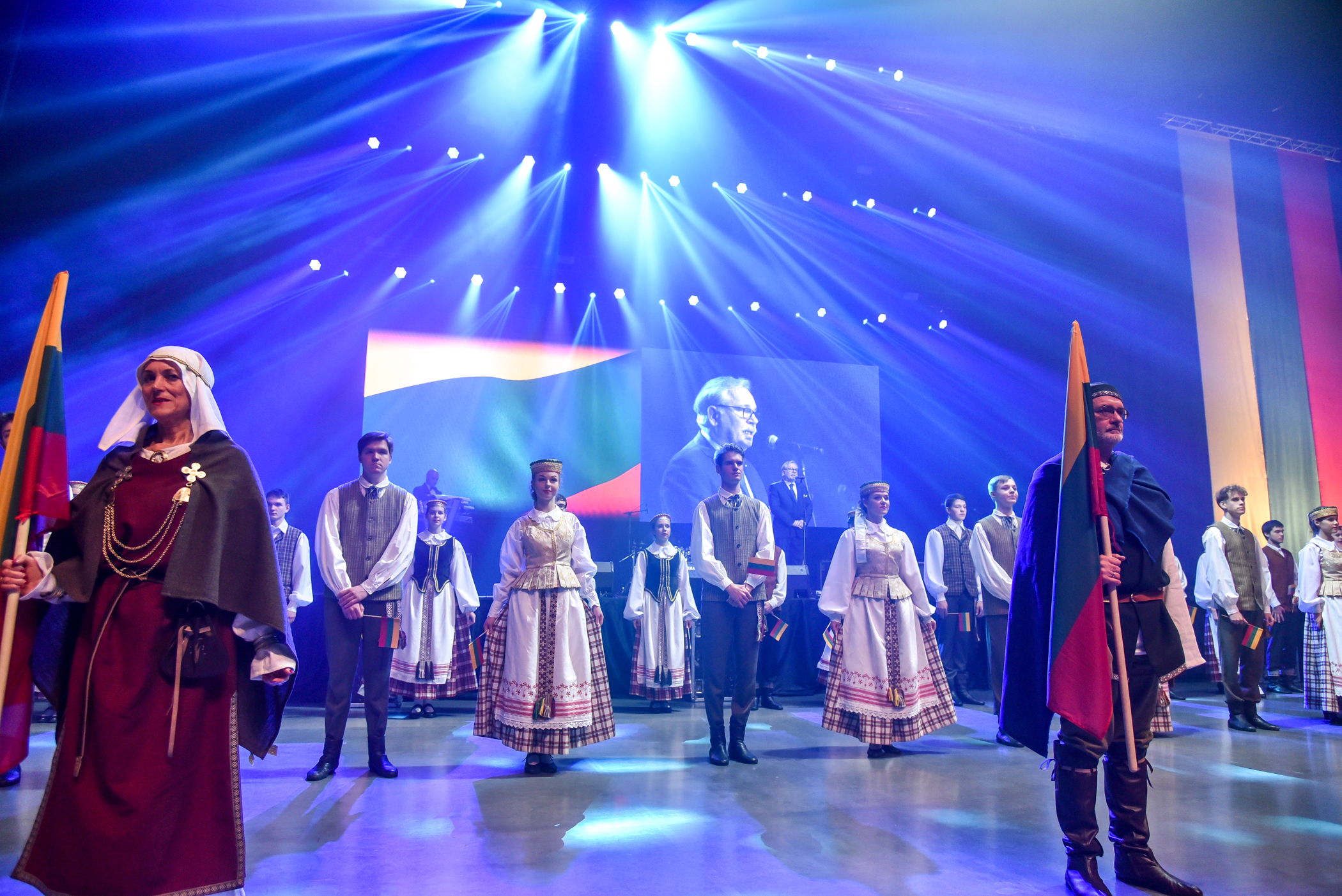 Po choreografinio etiudo pagal Gintarės Jautakaitės dainą “Viešpaties lelija”, kuriame dalyvavo tautiniais kostiumais pasipuošę apie du šimtai įvairių miesto meno mėgėjų kolektyvų narių – nuo jaunimo iki pačių vyriausiųjų ir renginio vedėjo aktoriaus Albino Kėlerio meninių etiudų visa salė iškilmingai sugiedojo Lietuvos himną.