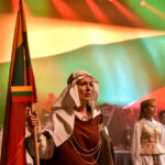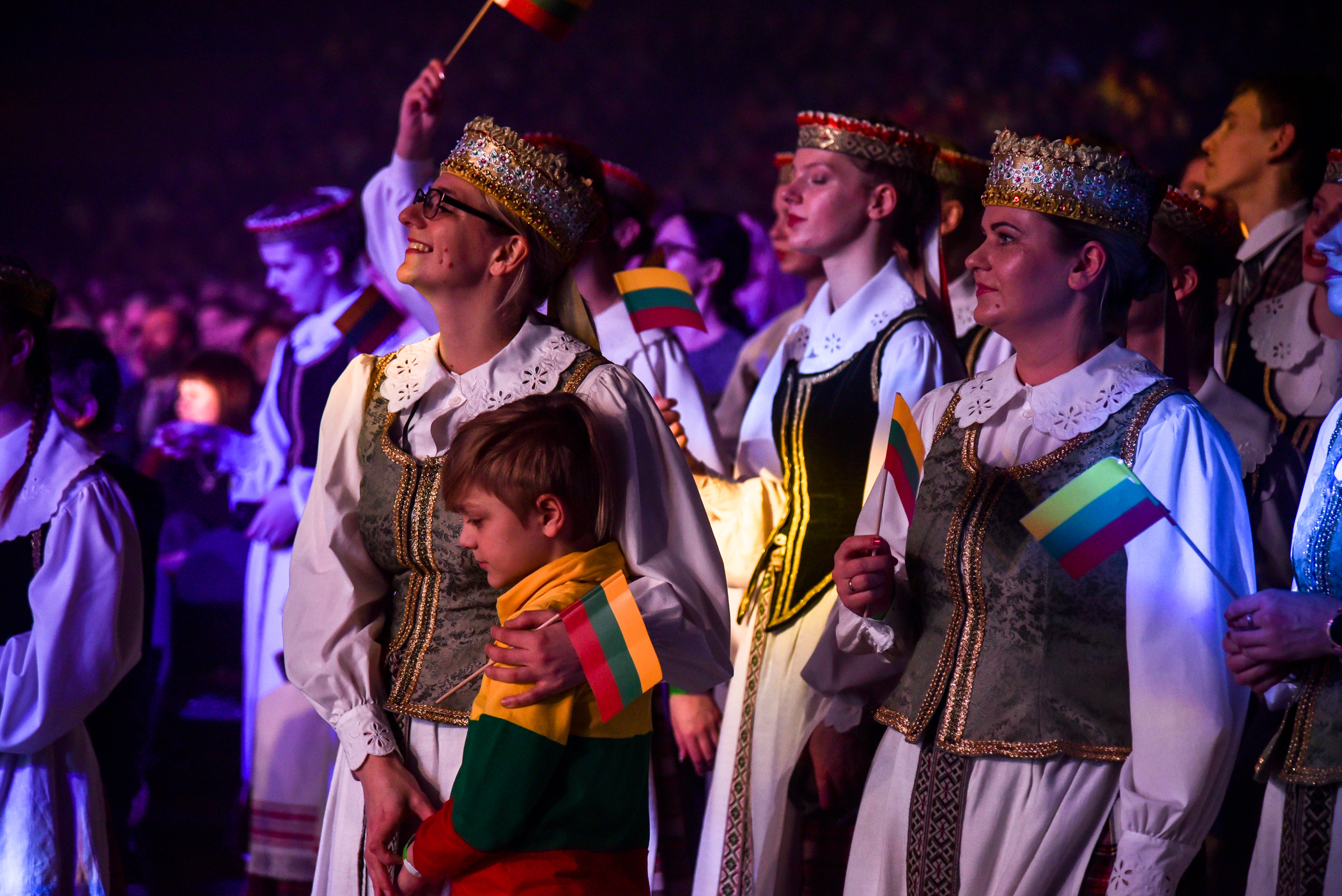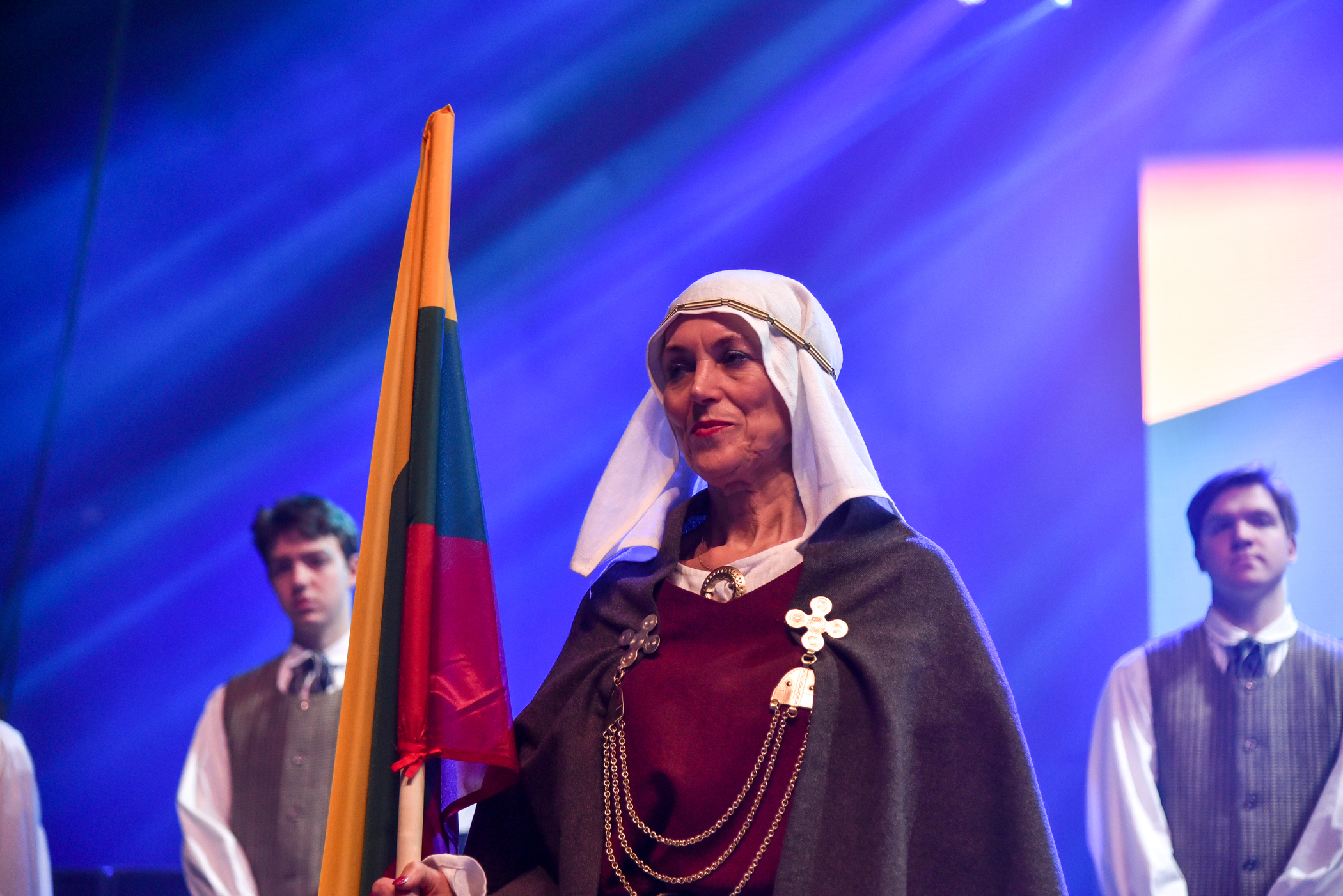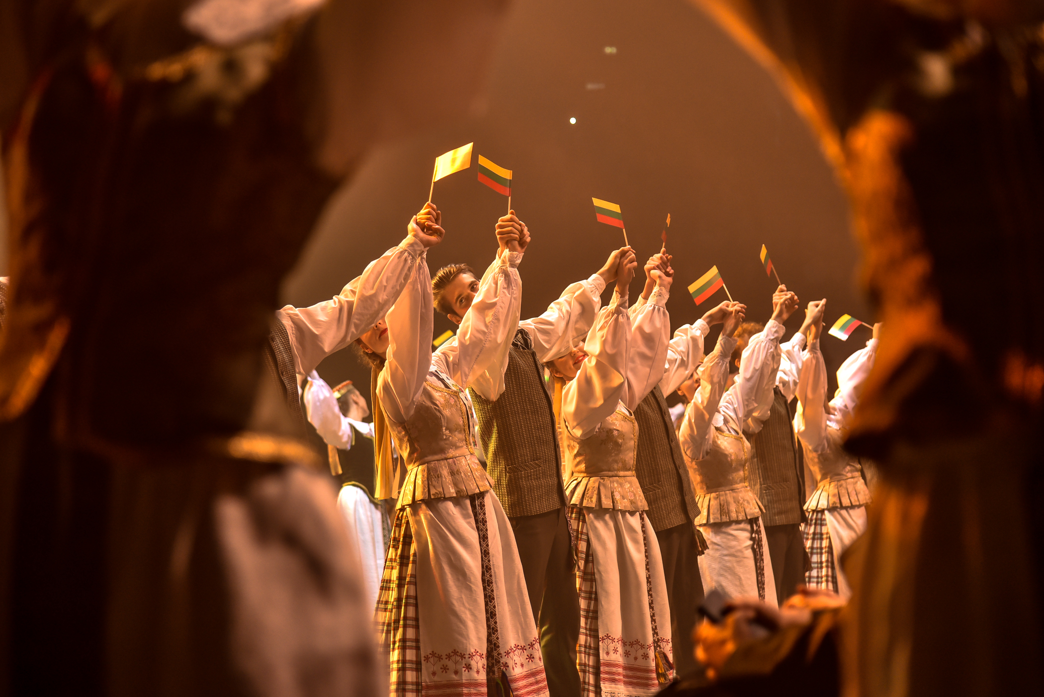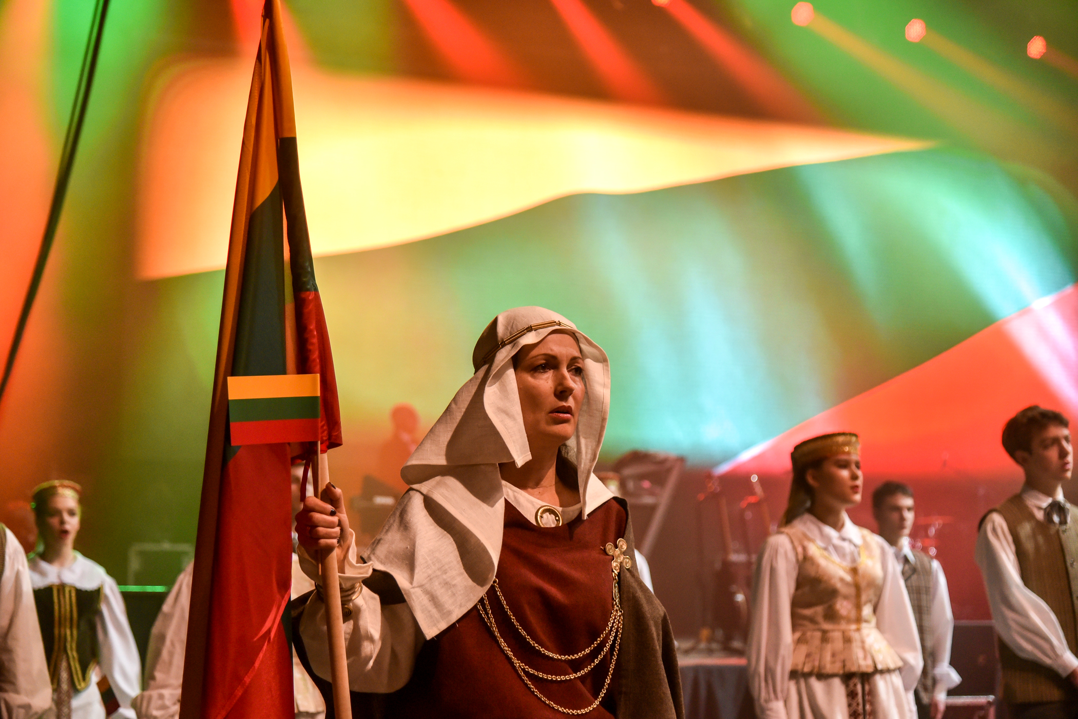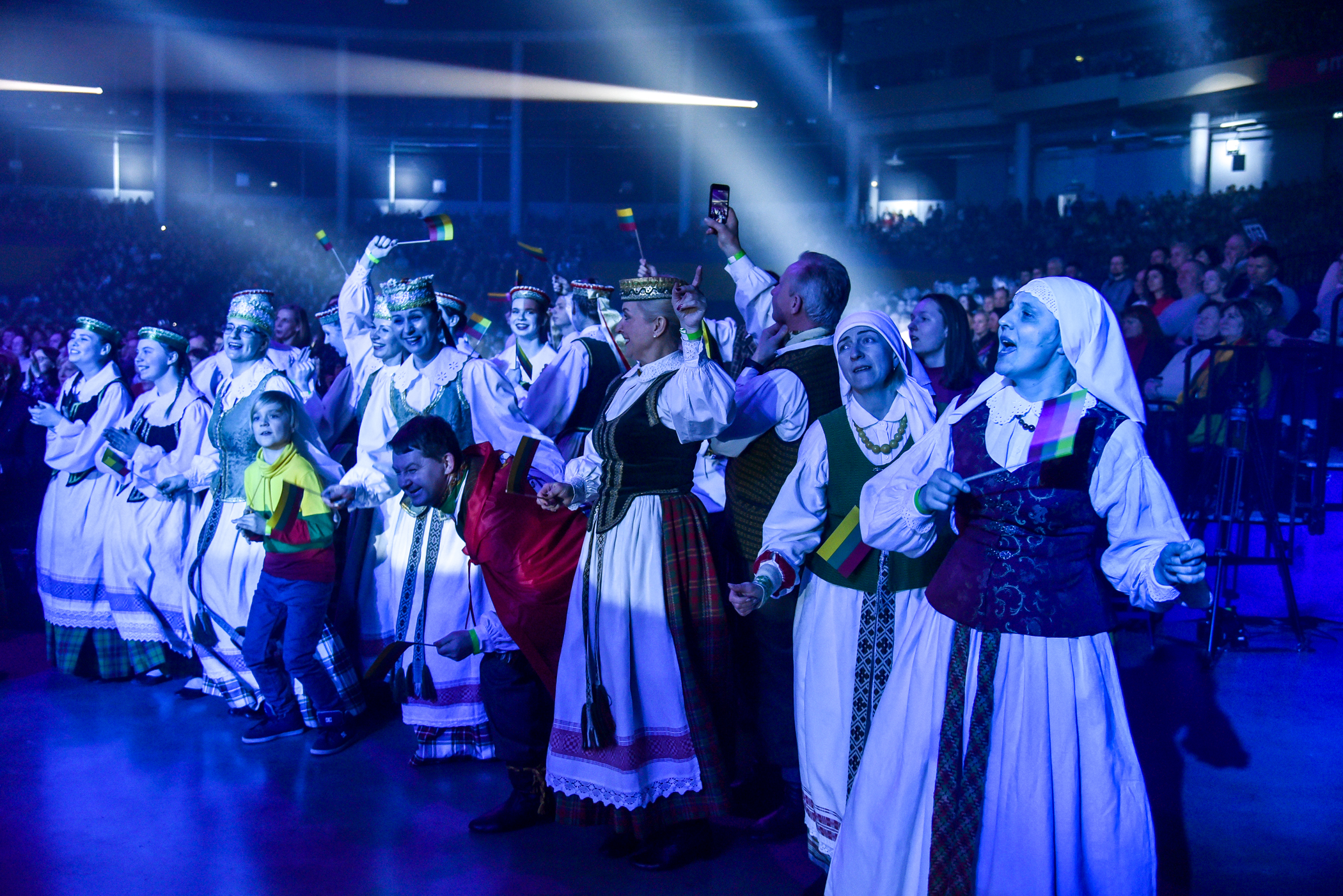 Po choreografinio etiudo pagal Gintarės Jautakaitės dainą “Viešpaties lelija”, kuriame dalyvavo tautiniais kostiumais pasipuošę apie du šimtai įvairių miesto meno mėgėjų kolektyvų narių – nuo jaunimo iki pačių vyriausiųjų ir renginio vedėjo aktoriaus Albino Kėlerio meninių etiudų visa salė iškilmingai sugiedojo Lietuvos himną.