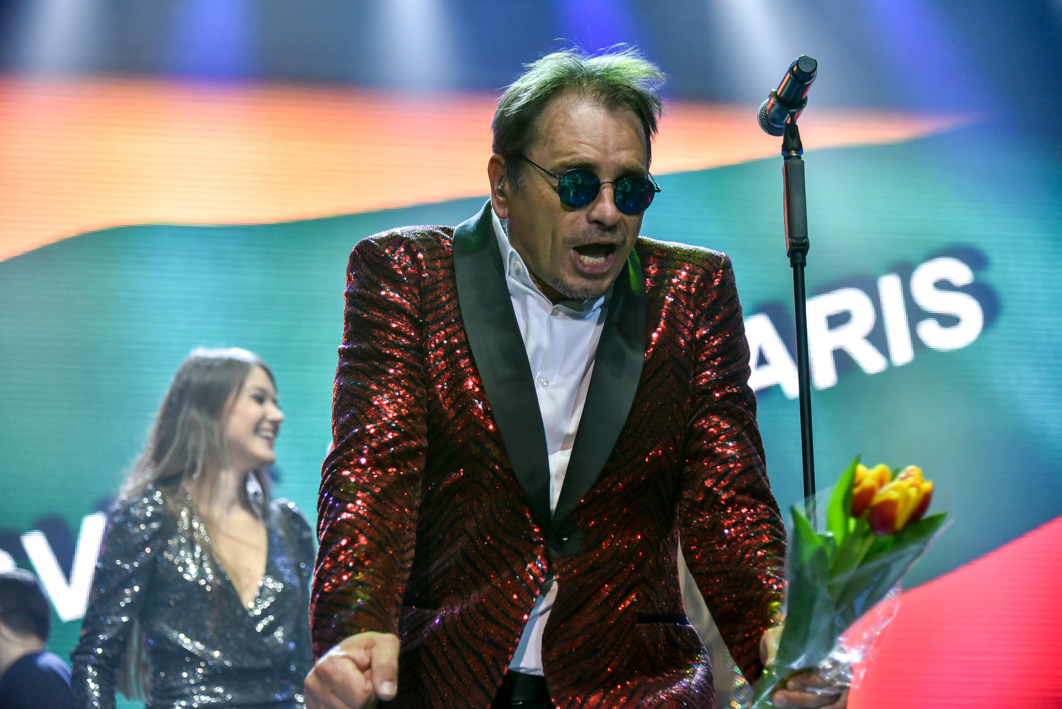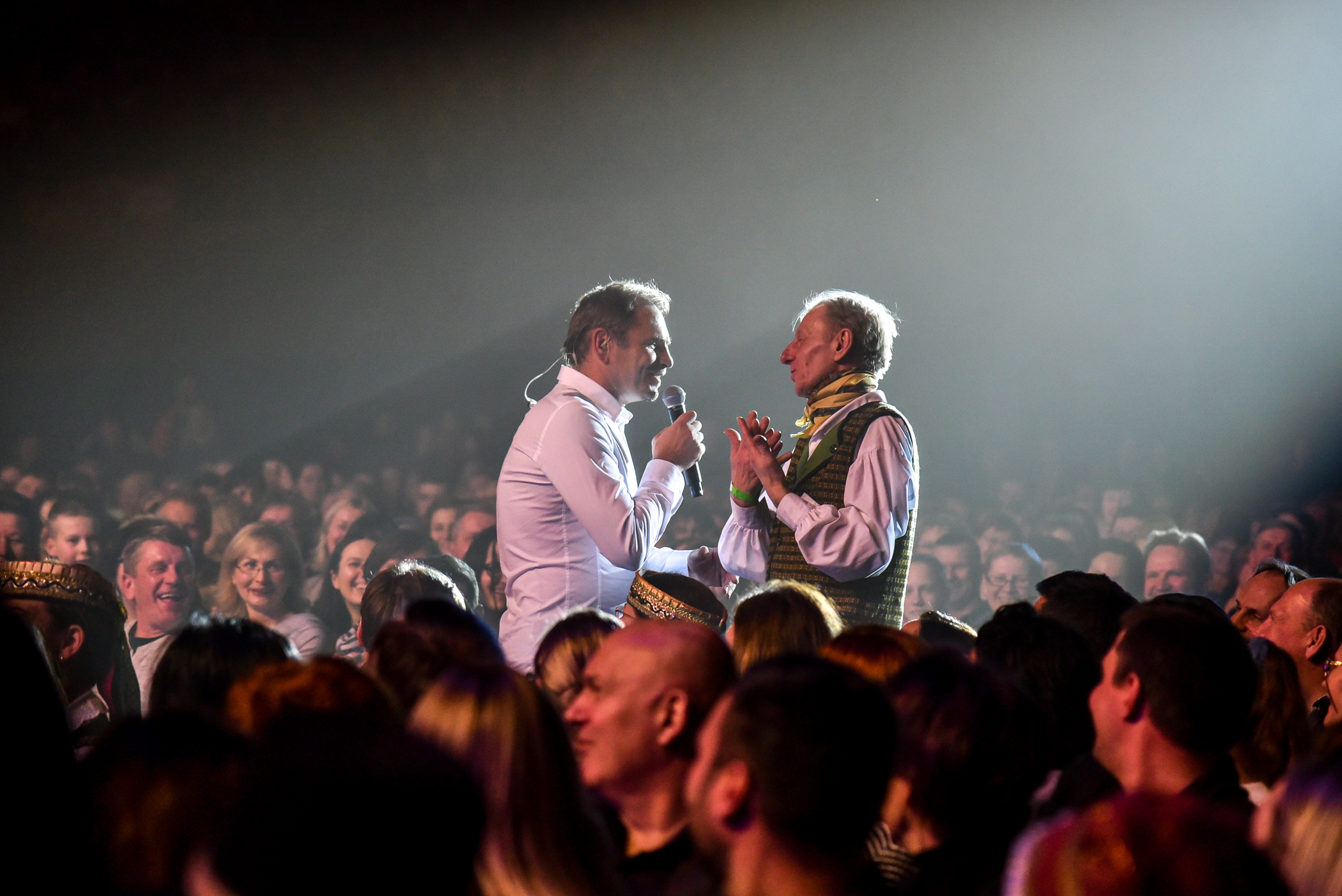 Simboliška, kad visiems puikiai pažįstamas M. Mikutavičius savo pasirodymą pradėjo daina “Pasveikinkime vieni kitus”. Jai skambant sėdintieji salėje sulaukė ypatingų sveikinimų.