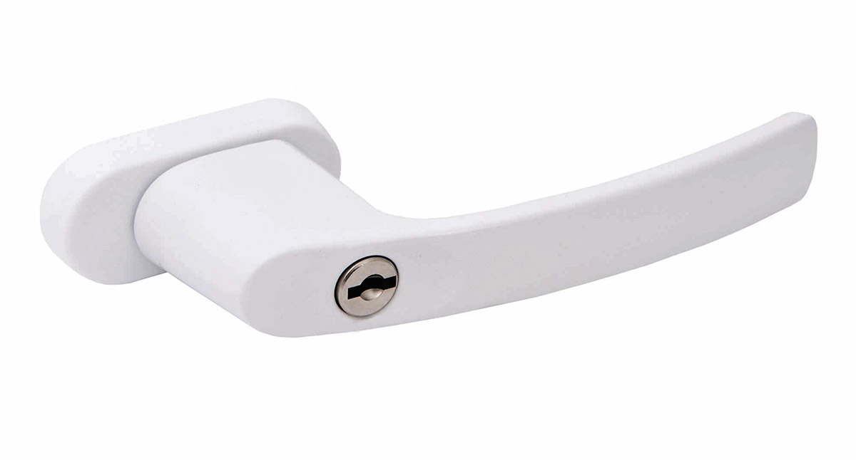 4. Lango rankena su užraktu – rankenoje įmontuotas užraktas, kurį atrakinus galima pasukti rankeną ir visiškai atidaryti varčią arba ją atlenkti į patalpos vėdinimo padėtį.