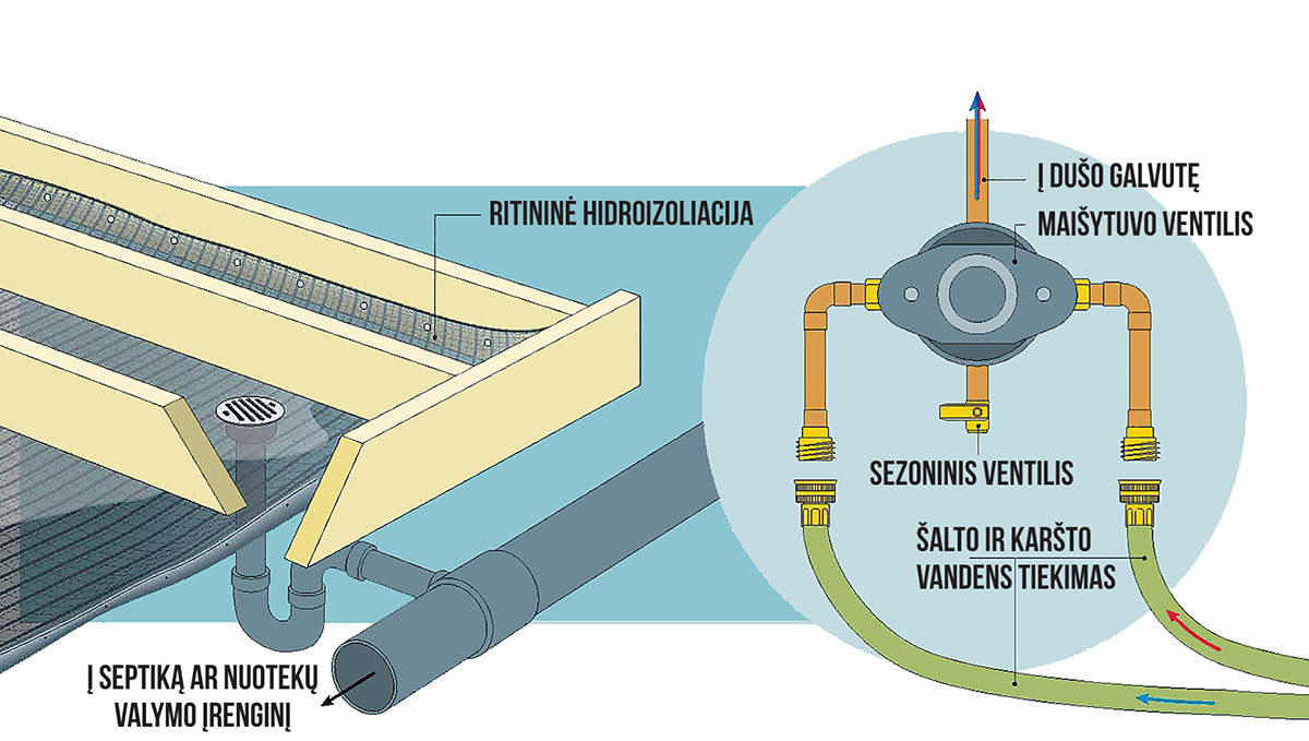 Dažnas sodybos savininkas nori, kad netoliese būtų ežeras ar upelė, kurioje sukaitus būtų galima pasipliuškenti. Bet niekas nepaneigs, jog patogu turėti galimybę, kad vanduo tekėtų tiesiai ant įkaitusios galvos.