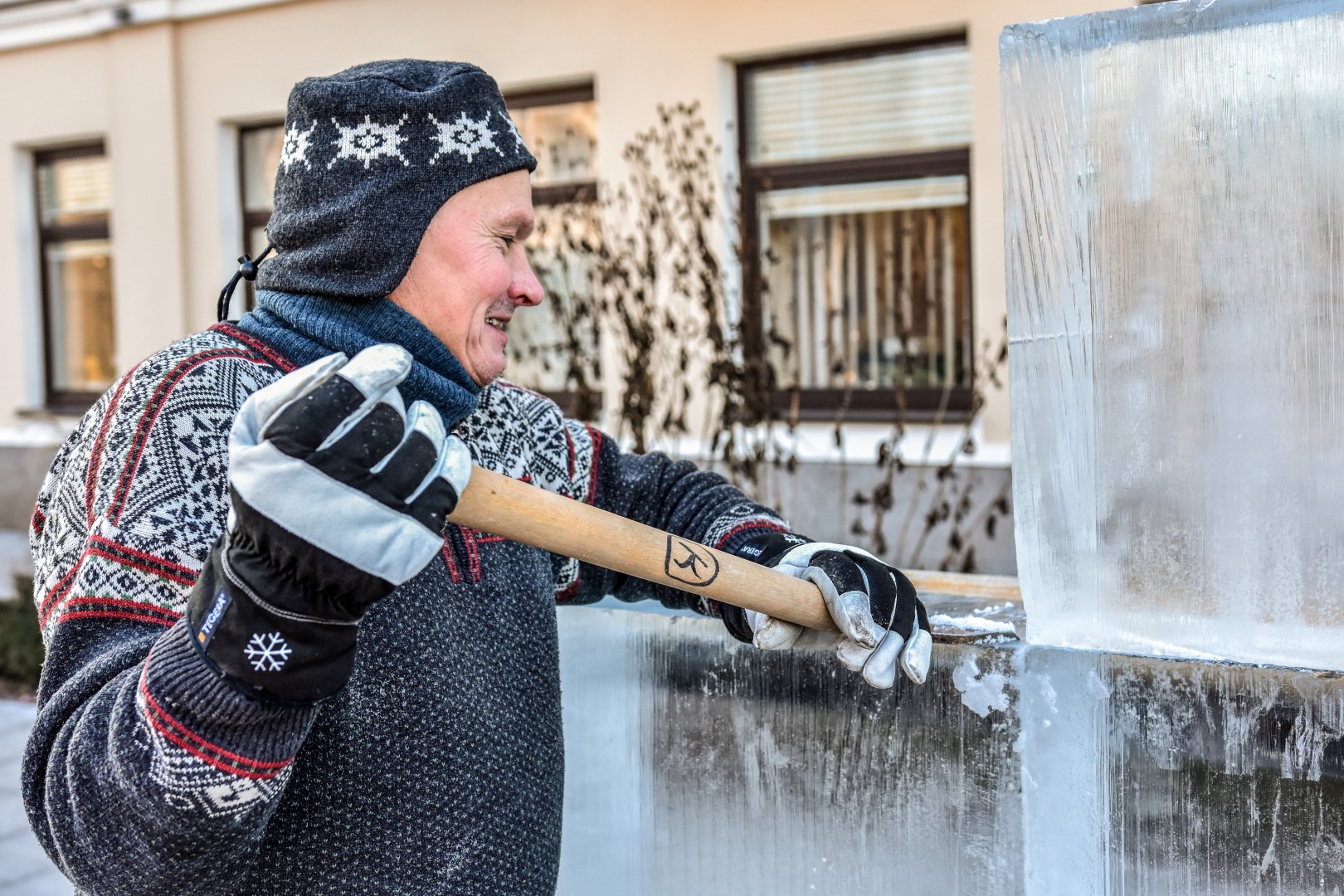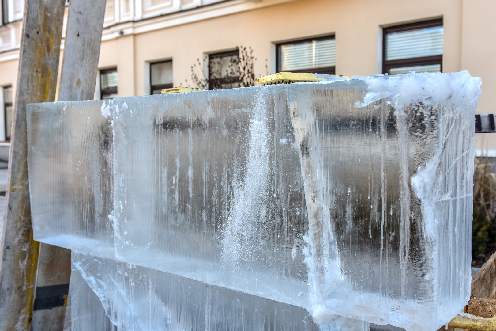 Daugiau kaip po šimtą kilogramų sveriantys luitai į Panevėžio Laisvės aikštę atvežti iš Latvijos, kuri turi specialius šaldytuvus šiems laikyti. Tačiau kaip padaryti, kad ledas taptų meno kūriniu, kviečiančiu ne tik juo grožėtis, bet ir susimąstyti, diskutuoti, kelti probleminius klausimus – jau iššūkis skulptoriams.