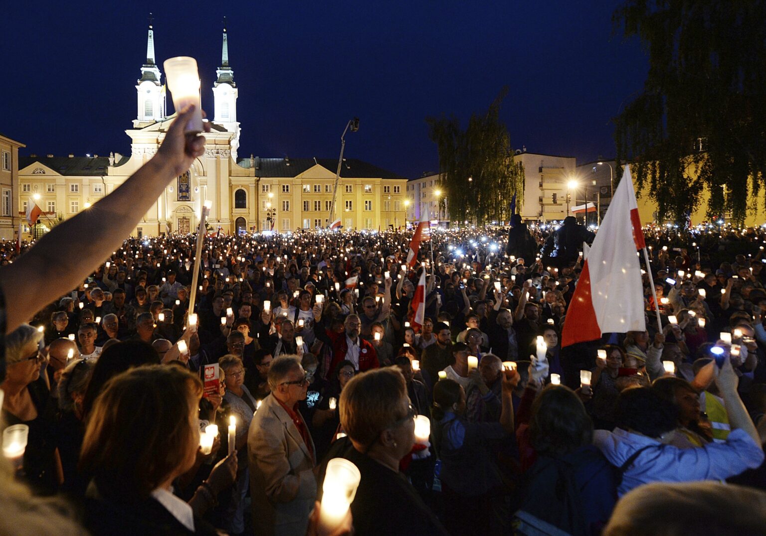 Vėliau sekmadienį Lenkijos teisėjų asociacija „Iustitia“ surengė savo protestą priešais Aukščiausiąjį Teismą, kur, miesto valdžios duomenimis, 17 tūkst. žmonių laikė žvakes ir ragino išsaugoti laisvus teismus.