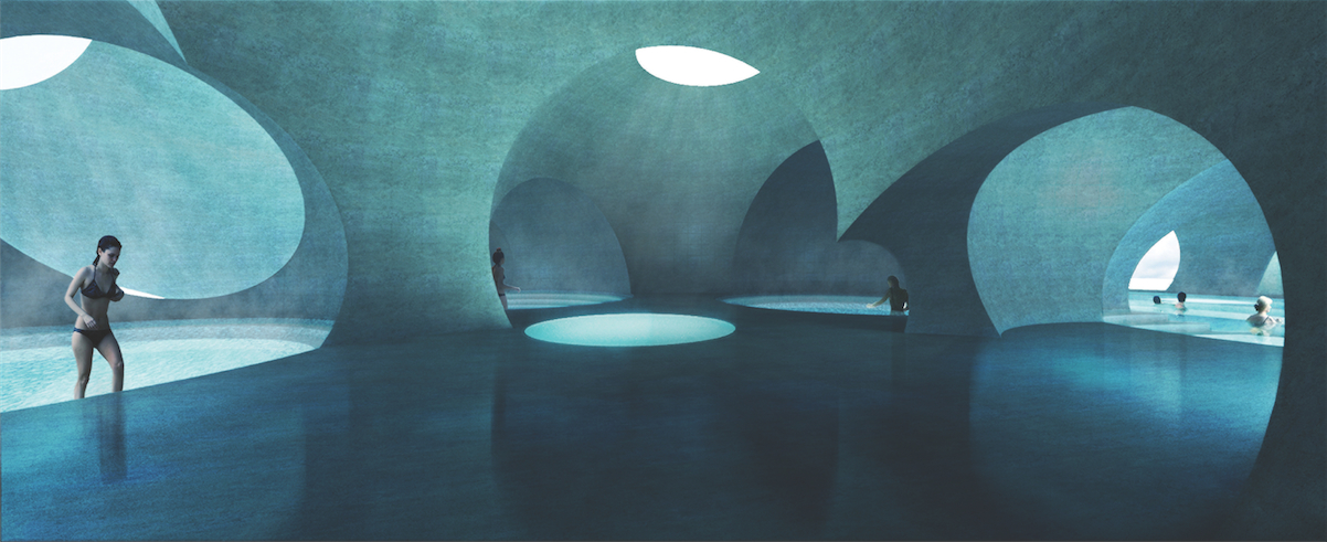Amerikiečių kolektyvo „Steven Christensen Architecture“ pasiūlymas Liepojos vandens maudyklų projekto konkursui remiasi kupolo kaip vieno ryškiausių architektūros elementų nuo Romos termų, rytietiškų hamamų iki renesanso ir baroko šedevrų, dažnai – hierarchijos, galios ir didybės simbolio, interpretacija. Kupolas – visada centre, visada simetriškas ir visada aukščiausias pastato taškas.