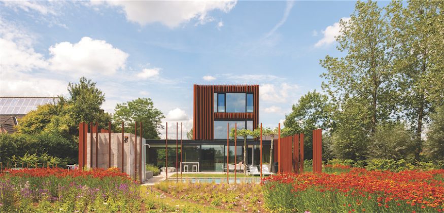 Prieš keletą metų nedideliame Konticho mieste iškilęs pastatas gavo pavadinimą „Corten House“, nes visas jo perimetras nužymėtas metalo plokštėmis, dengtomis „Cor-ten“ plieno danga. Jį kūrė nemažas studijos „DMOA architecten“ autorių kolektyvas. „Norėjome tokios apdailos medžiagos, kuri suvienytų namo vidaus ir išorės erdves“, – tvirtina projekto autoriai.