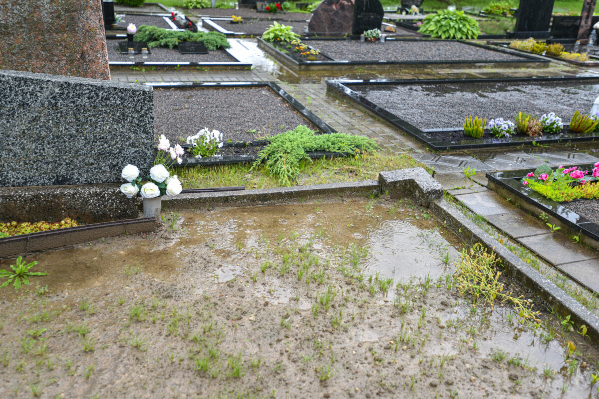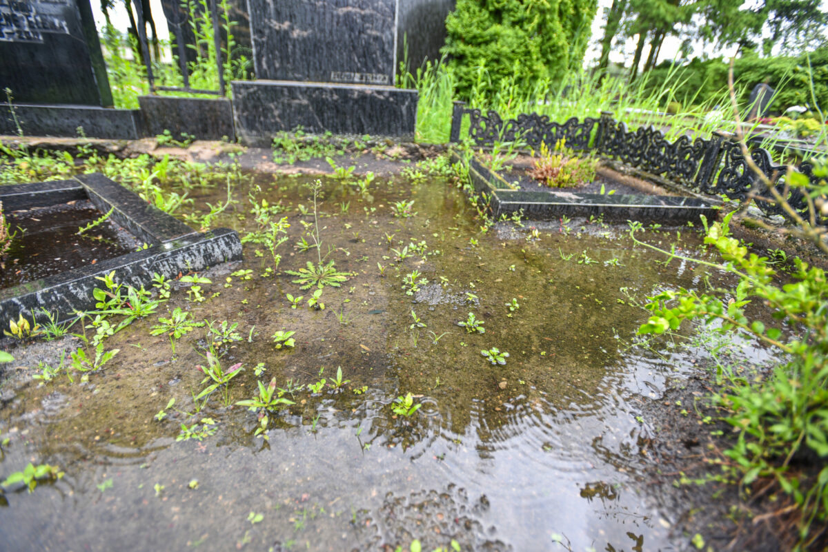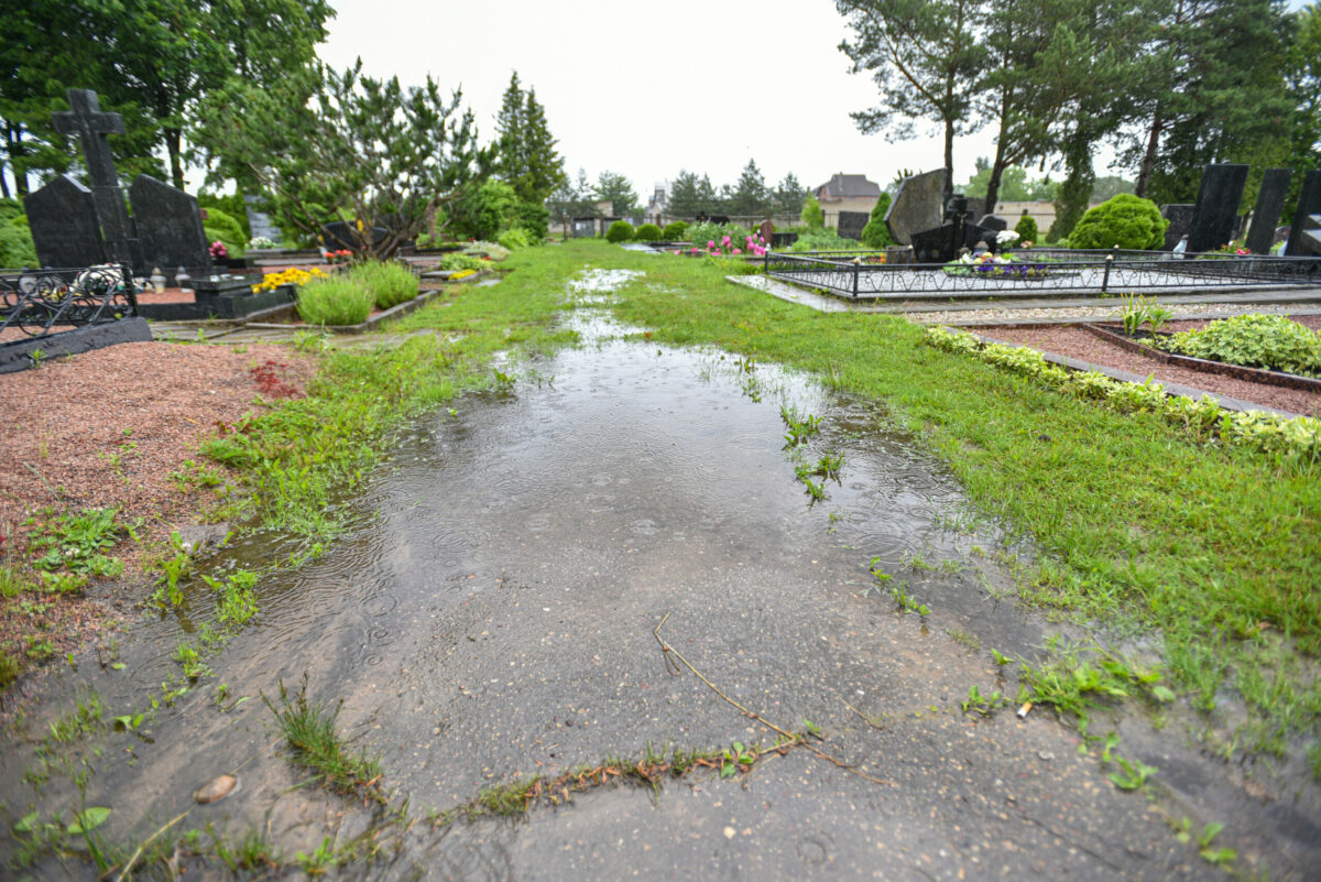 Jo teigimu, ypač sudėtinga situacija devynioliktame kapinių kvartale. Užtenka kiek didesnio lietaus, ir kapavietės atsiduria po vandeniu.
