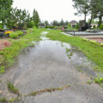 Visa rytinė kapinių dalis virtusi pelkėjančiu ežeru.