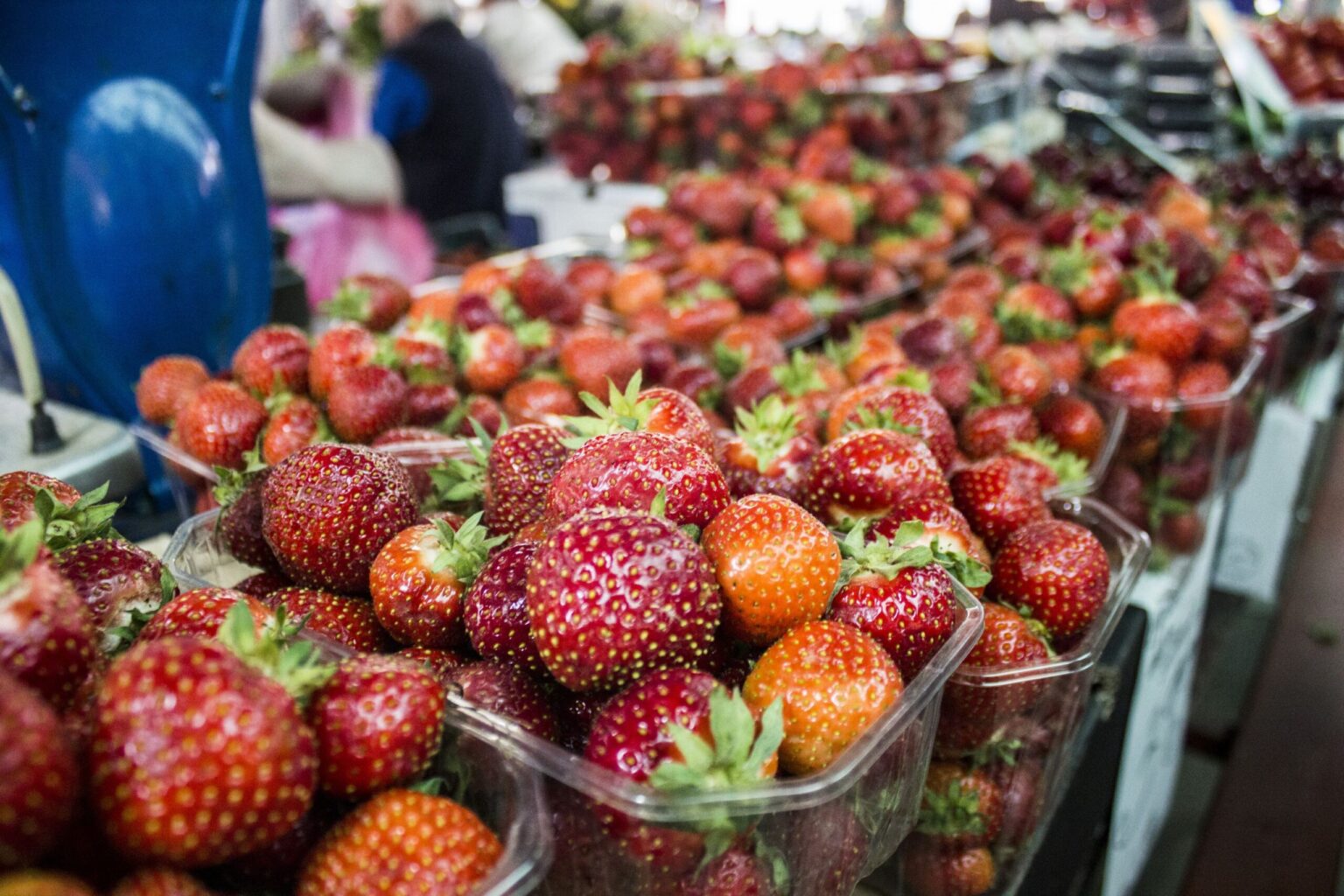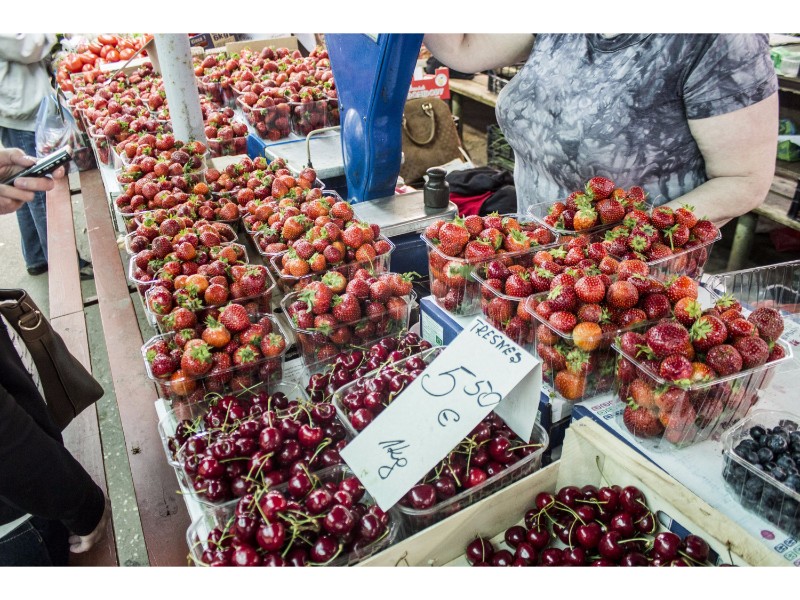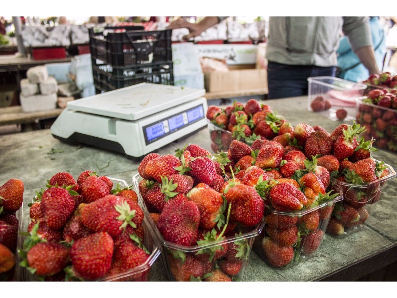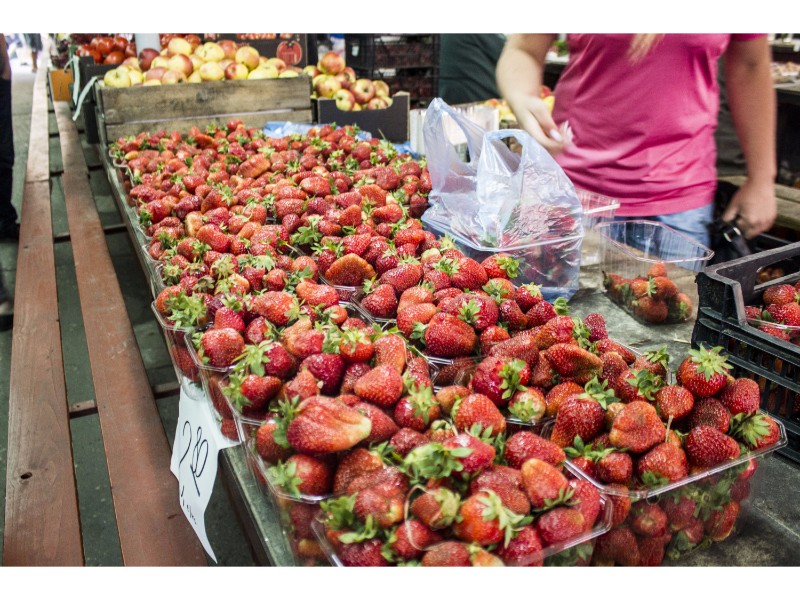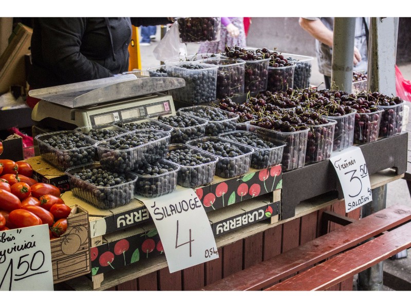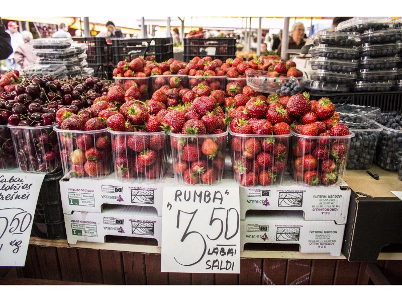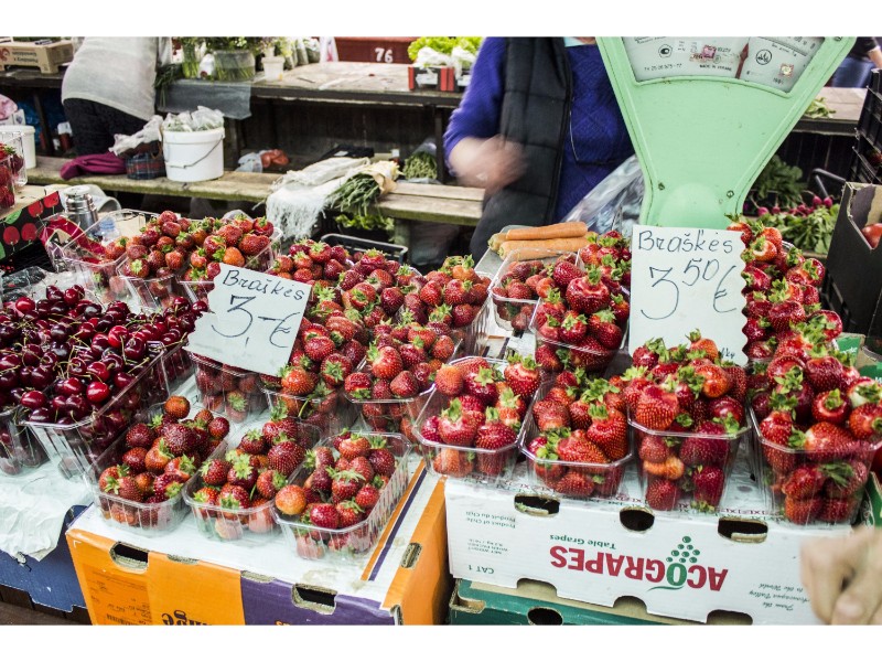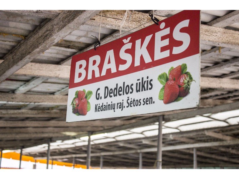 Turguje nuo spalvų net raibsta akys, bet akivaizdu, kad kol kas karaliauja braškės. Prekystaliai lūžta nuo uogų gausos. Galima rasti ir ką tik skintų lietuviškų, ir atvežtinių lenkiškų braškių. Tiesa, jų kaina skiriasi per pusę. Lenkiškų braškių kainos svyruoja nuo dviejų iki trijų su puse euro už kilogramą, o lietuviškų kai kur siekia ir septynis eurus.