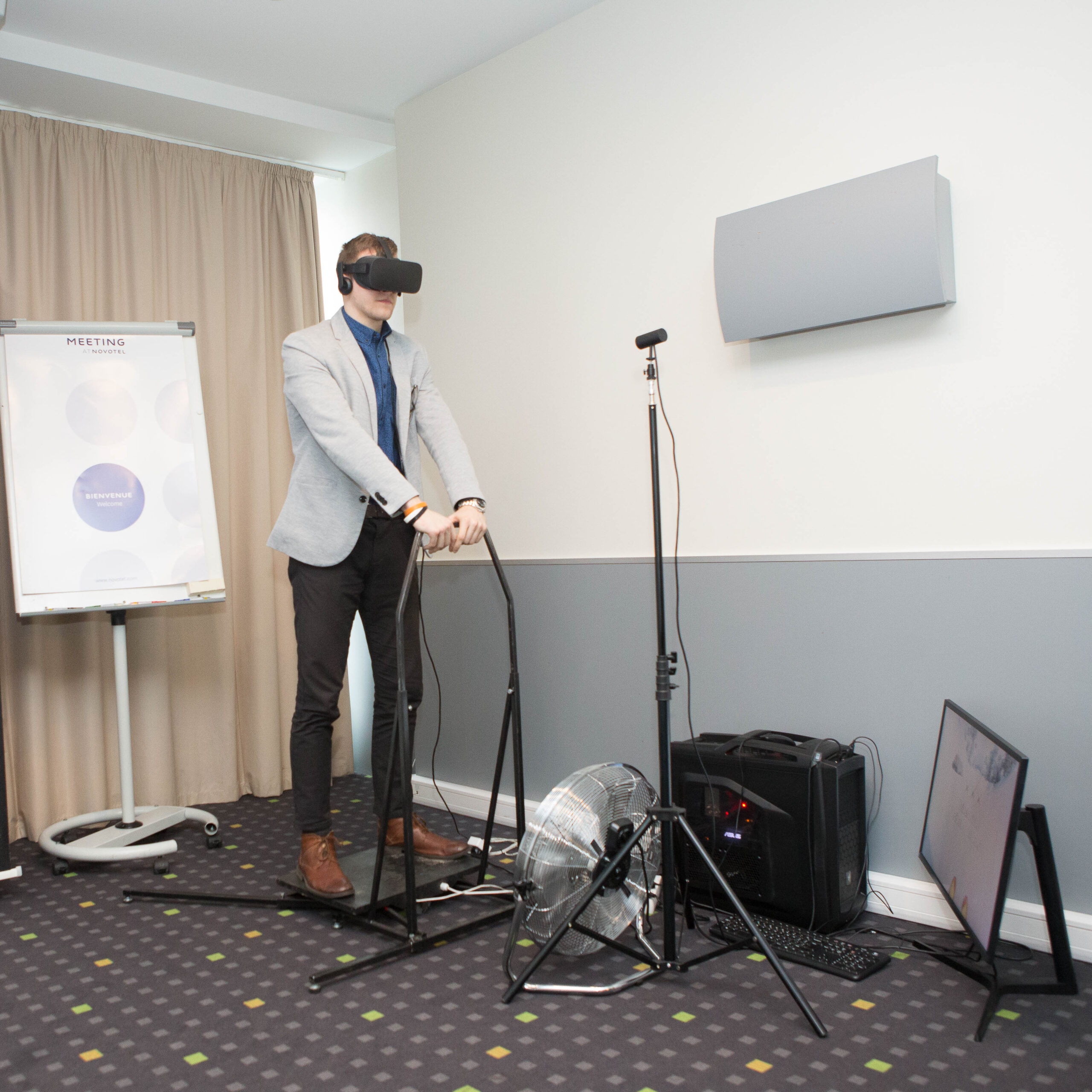 Pristatyti skaitmeniniai sprendimai, skirti ir žmonių laisvalaikiui paįvairinti. Tokį projektą pademonstravo Andrius Paulauskas, atstovaujantis KTU Informatikos fakultetą. Tai virtualaus slidinėjimo stimuliatorius – sistema sukurta balansavimo platformai. Šis sprendimas gali būti pritaikytas sveikatos reabilitacijai.