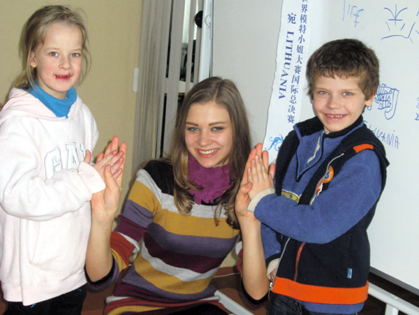 Ji davė mokiniams patarimų, kaip gražiai vaikščioti, stovėti scenoje. Pamokė vaikus kinų kalbos žodžių, parodė, kaip kinų hieroglifais rašoma Lietuva ir Kinija. Didžiulį norą išmokti rašyti hieroglifais parodė pradinių klasių mokinukas Karolis Janikūnas.