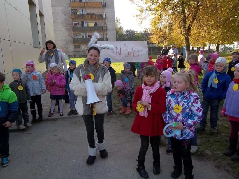 Apsilankė du kiškučiai, šoklūs ir linksmi, kaip ir vaikai. Jie ir pakvietė praleisti rudenėjančią dieną judant, bėgant, greitai ir vikriai. Įsikūnijusi į kiškučio personažą nedaug didesnė už vaikučius Auklėtoja Rimvydė užkrėtė visus jaunyste trykštančiu entuziazmu. Vyresnioji Irena – neatsiliko. Dalyvavo visi: vaikučiai nuo 2 iki 7 metų, ikimokyklinio ugdymo mokyklos darbuotojai, tėveliai. Visi bėgo 250 metrų, o mažyliams sąlygos buvo palengvintos. Pralaimėjusiųjų nebuvo. Visi gavo medalius, saldumynų, o svarbiausia – geros nuotaikos užtaisą.