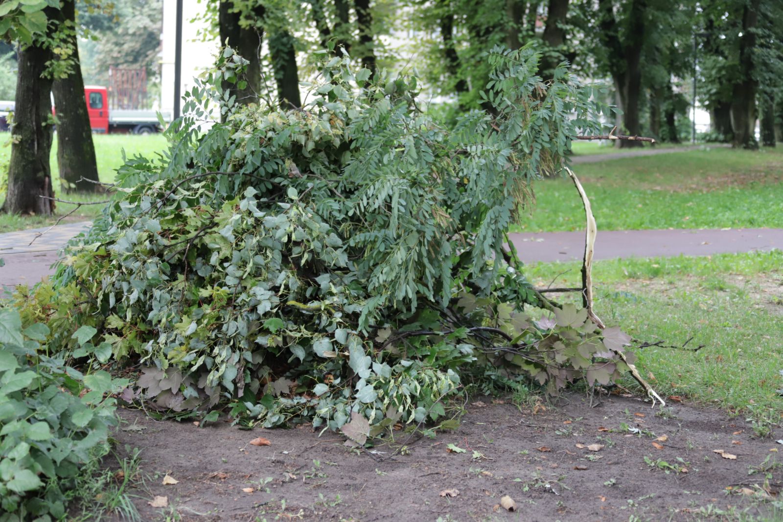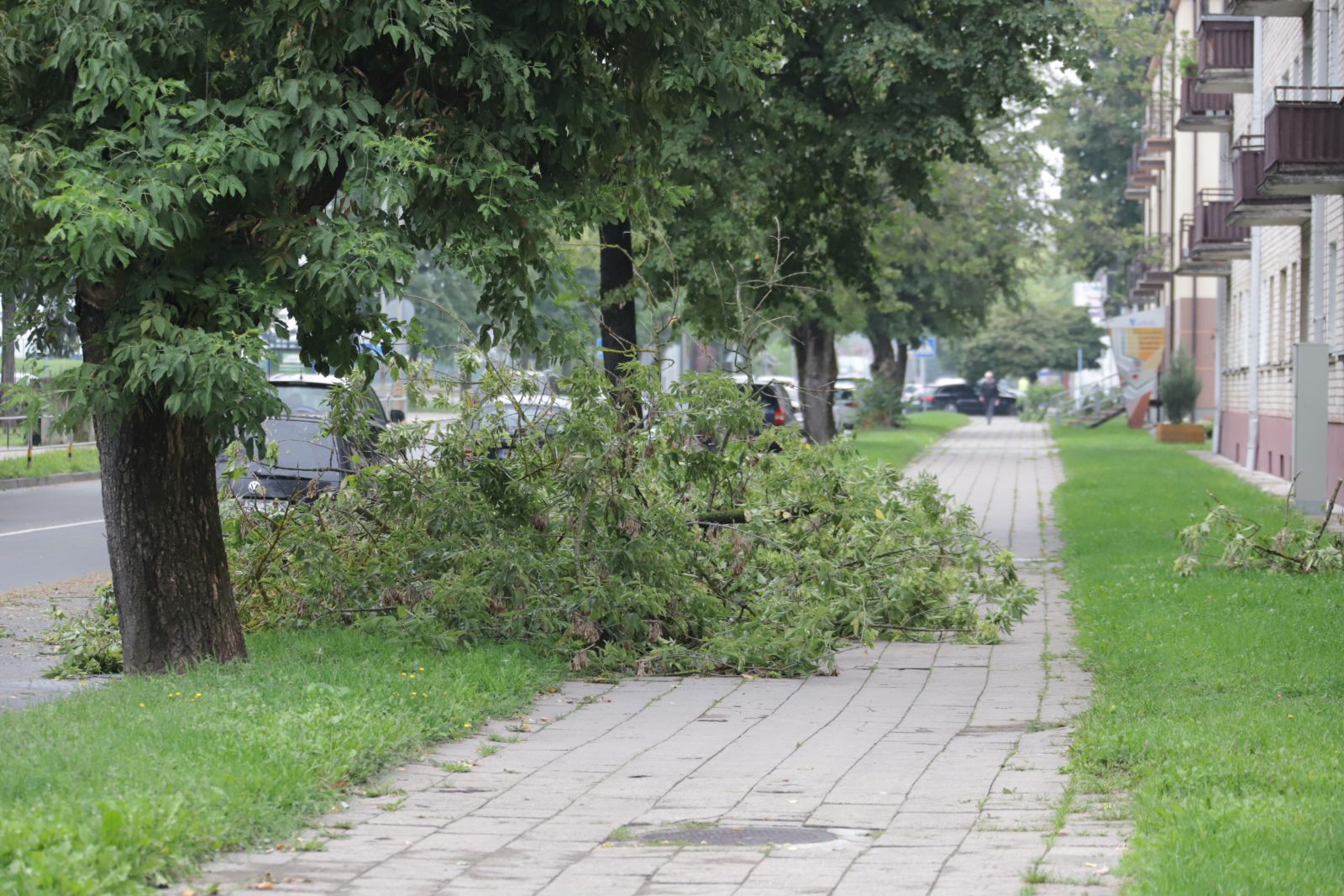 Panevėžio centre daugiabutyje gyvenanti Kristina taip pat pasakoja mačiusi neįtikėtiną vaizdą. Pirmiausia pasigirdo vėjo kauksmas ir smarkūs lietaus šuorai trenkė tiesiai į langus. Nuskubėjusi uždaryti įstiklinto balkono durų, išvydo kaip priešais langus penktą aukštą siekiančios liepos sulinko kone iki trečio aukšto.
