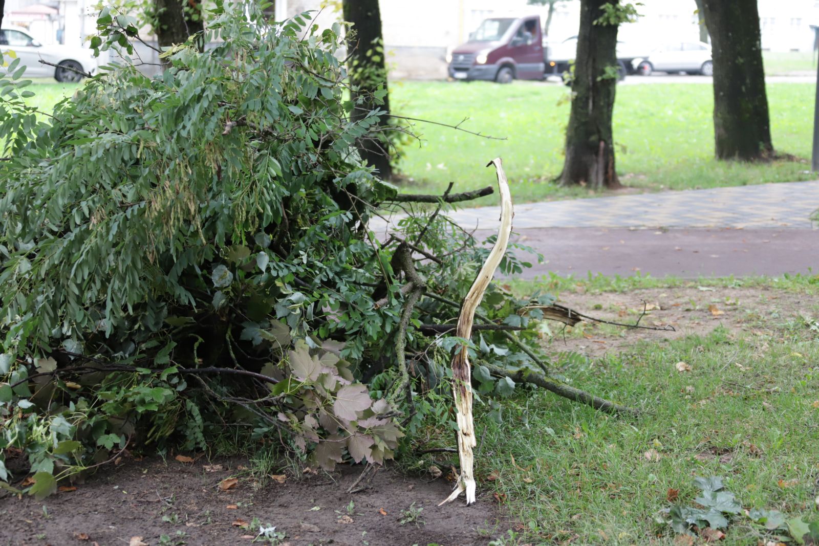 Pasak L. Jankevičienės, pranešimų, kad medžiai ar šakos krito ir apgadino pastatus, automobilius, nesulaukta.