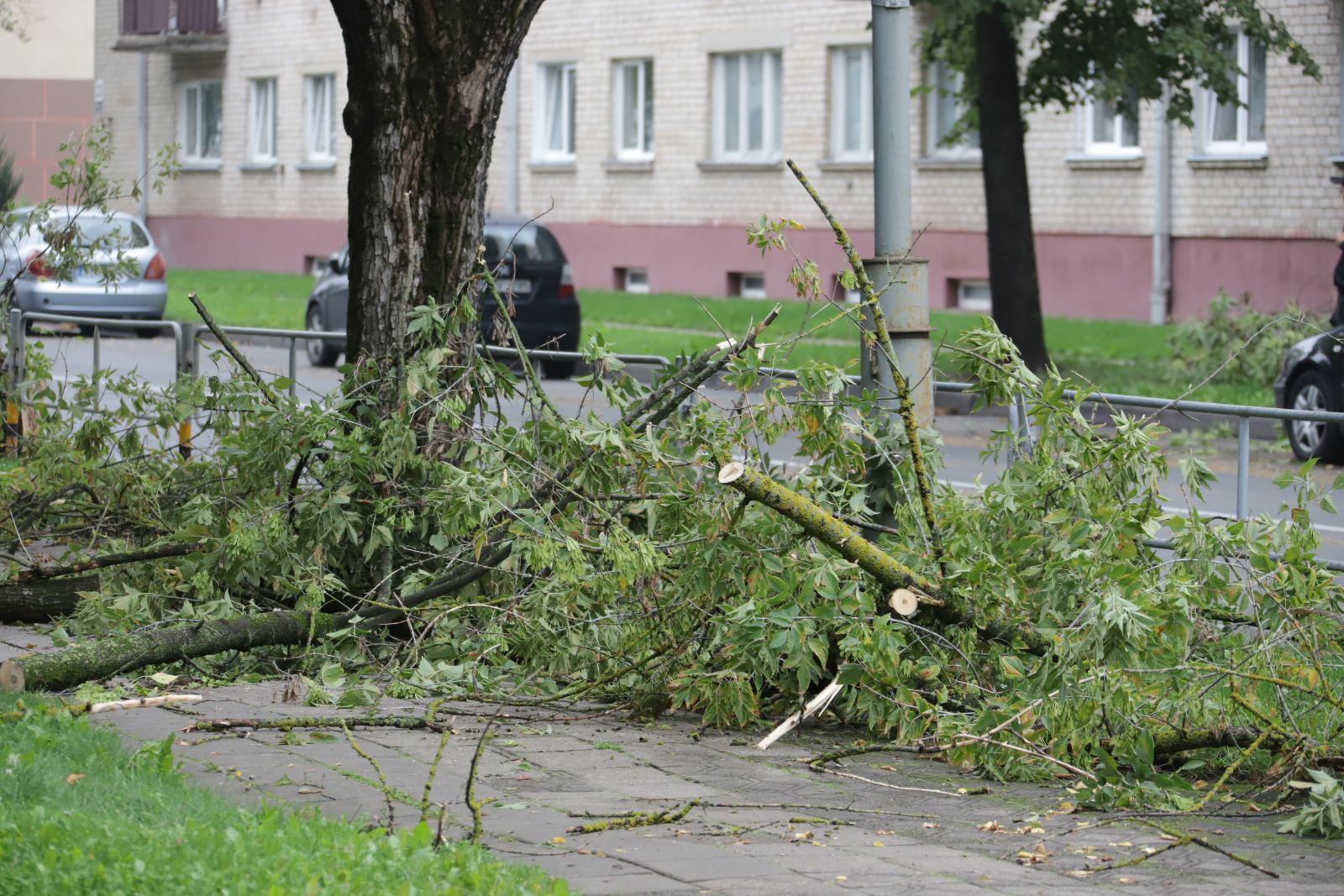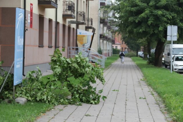 Audringą naktį Panevėžyje lūžo medžiai, rūsius ir sandėlius sėmė vanduo, kai kuriuose mikrorajonuose užgeso elektra. I. Stulgaitės-Kriukienės nuotr.